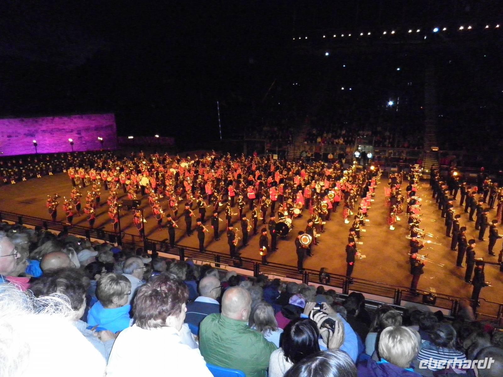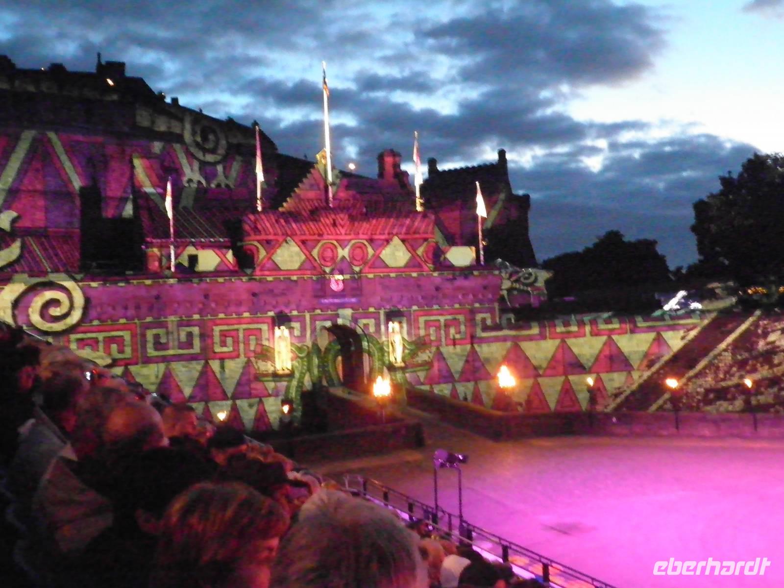 Der Tag begann mit einer Stadtrundfahrt durch Edinburgh. Ein einheimischer Stadtführer stieg in unseren Bus und erklärte uns die Sehenswürdigkeiten der Stadt. Wir sahen den königlichen Palast Holyrood Palace mit dem kleinen Badehaus von Queen Mary Stuart, fuhren hinauf zum Arthur's Seat, einem ehemaligen Vulkan. Von dort oben hatten wir einen grandiosen Blick über die ganze Stadt, trotz etwas Dunst konnten wir viel sehen. Die Stadtrundfahrt endete auf dem Gelände des Edinburgh Castle. Dort hatte unsere Gruppe Gelegenheit, die einzelnen Gebäude mit schottischer Krone usw. selbst zu besichtigen. Der Nachmittag war zur freien Verfügung. So konnte man einkaufen, bummeln und die Stadt selbst erkunden. Am Abend trafen wir uns wieder in unserem Hotel, um gemeinsam das Abendessen nach einem erlebnisreichen Tag zu genießen. Tattoo