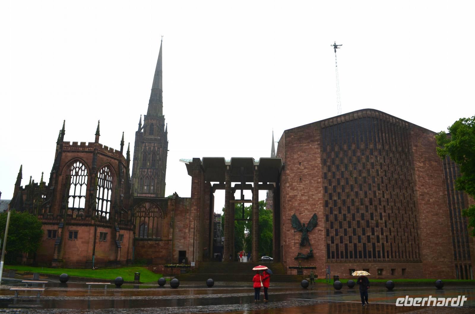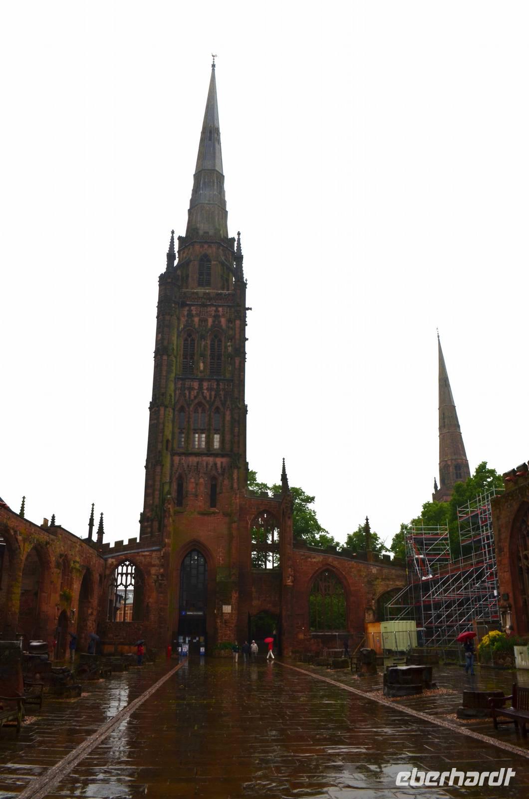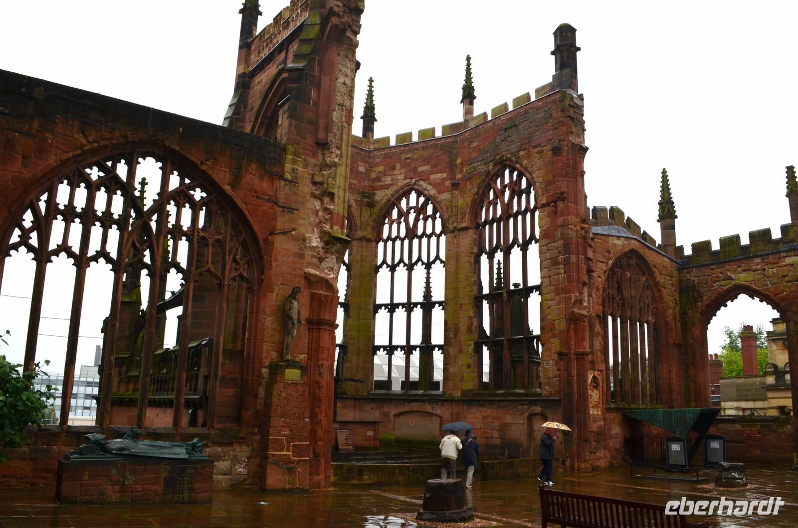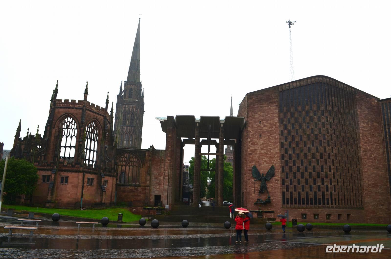Leichter Sprühregen und wieder sehr kühl Wetter eröffnete den Tag. Aber auch heute gab es die Tendenz zur Wetterbesserung. 9:00 Uhr starteten wir zuerst zu einem Abstecher in die City der Dresdner Partnerstadt Coventry, wo wir die Ruinen der Cathedral und die daneben stehende neue Kathedrale besuchten. Von hier ging es weiter wir nach Stratford-upon-Avon, der Shakespeare-Stadt. Vom Parkplatz am Besucher- und Freizeitzentrum spazierten wir gemeinsam zum Glowell Memorial. Hier erhielten alle einen Stadtplan. Weiter ging es in die Fußgängerzone und hier zum Geburtshaus, dann weiter durch die Gassen zum Royal Shakespeare Theatre und zum Swan Theatre, danach am Avon-Ufer entlang zur Trinity Church mit dem Grab Shakespeares. Wir besichtigten die Kirche und die Gräber von Shakespeares Familie. Anschließend führte uns der Weg noch zum New Place, zu Nash's House und zur Guild Hall. Dann hatten alle individuelle Freizeit und Mittag, bevor wir 13:30 Uhr zum Warwick Castle aufbrachen. Endlich hatte der Regen aufgehört und wir spazierten zuerst gemeinsam in das Schlossgelände, informierten uns zu den Shows und begannen dann den individuellen Schlossbesuch. 14:30 Uhr erlebten wir die Kampf-Show im Schlosshof, 15:00 Uhr die Raubvogel-Show und 16:30 Uhr dann das Abfeuern des Trebuchet.