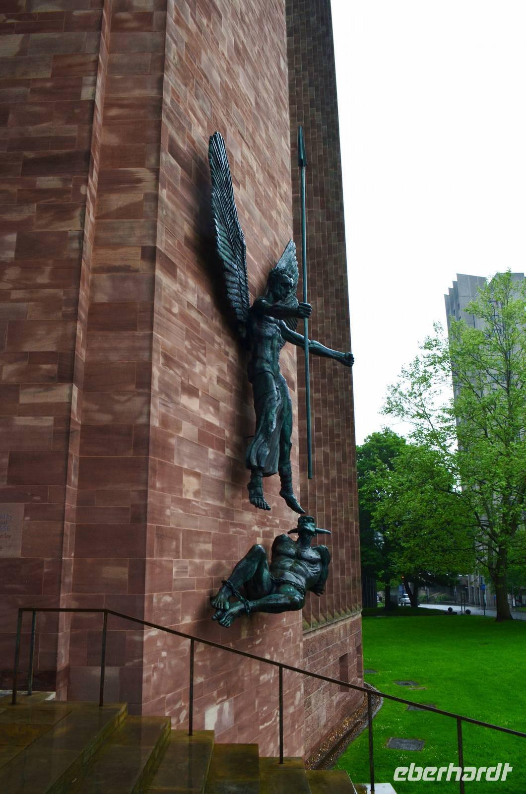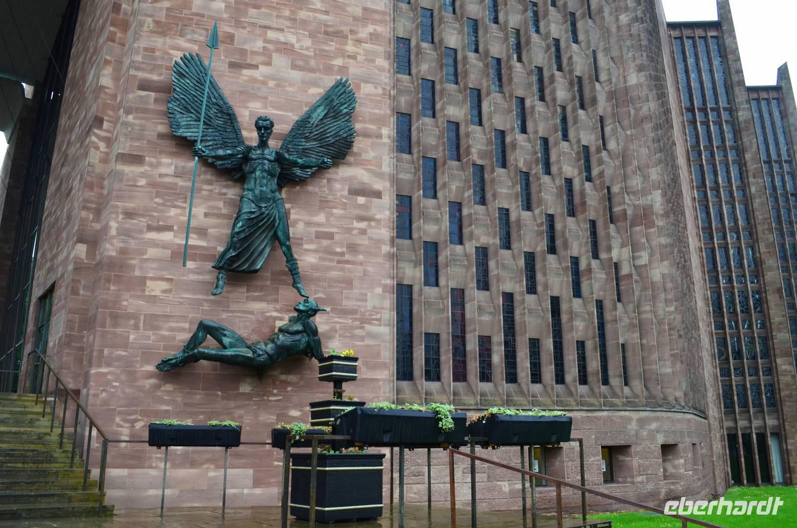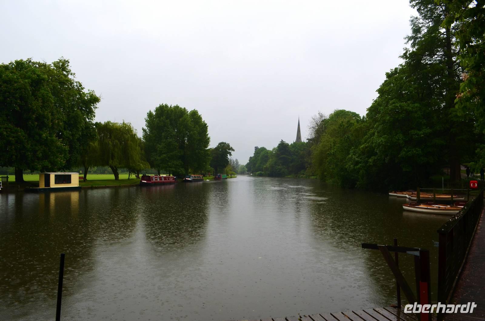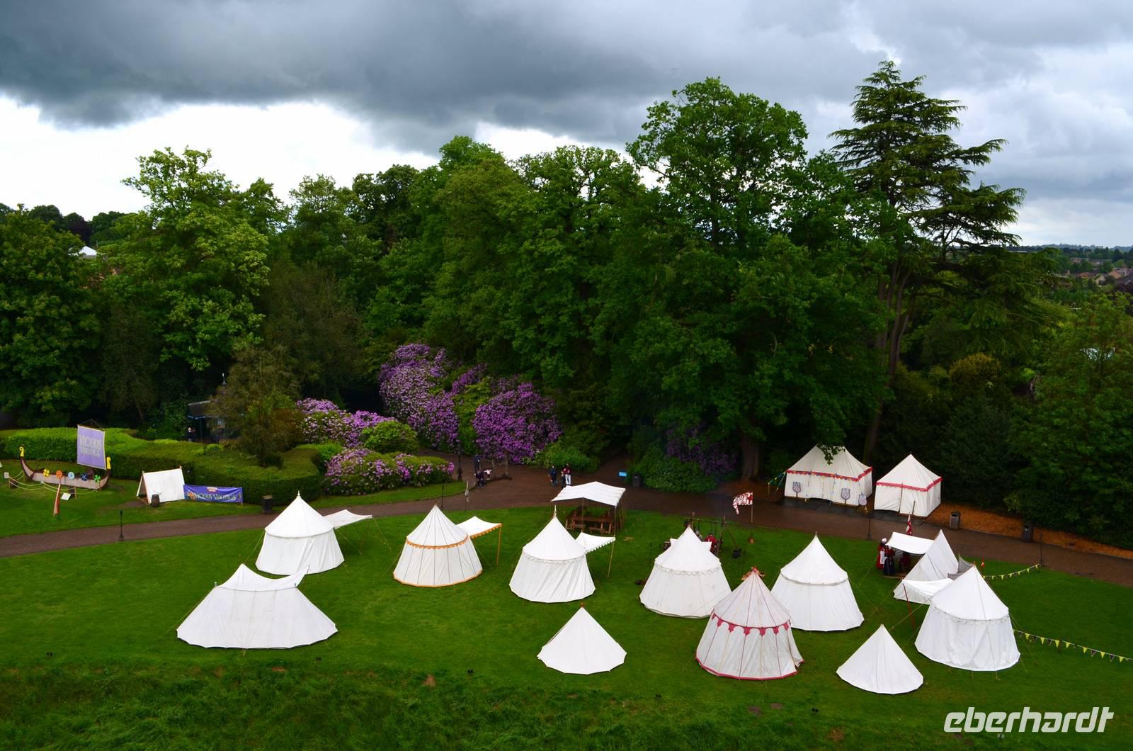 Leichter Sprühregen und wieder sehr kühl Wetter eröffnete den Tag. Aber auch heute gab es die Tendenz zur Wetterbesserung. 9:00 Uhr starteten wir zuerst zu einem Abstecher in die City der Dresdner Partnerstadt Coventry, wo wir die Ruinen der Cathedral und die daneben stehende neue Kathedrale besuchten. Von hier ging es weiter wir nach Stratford-upon-Avon, der Shakespeare-Stadt. Vom Parkplatz am Besucher- und Freizeitzentrum spazierten wir gemeinsam zum Glowell Memorial. Hier erhielten alle einen Stadtplan. Weiter ging es in die Fußgängerzone und hier zum Geburtshaus, dann weiter durch die Gassen zum Royal Shakespeare Theatre und zum Swan Theatre, danach am Avon-Ufer entlang zur Trinity Church mit dem Grab Shakespeares. Wir besichtigten die Kirche und die Gräber von Shakespeares Familie. Anschließend führte uns der Weg noch zum New Place, zu Nash's House und zur Guild Hall. Dann hatten alle individuelle Freizeit und Mittag, bevor wir 13:30 Uhr zum Warwick Castle aufbrachen. Endlich hatte der Regen aufgehört und wir spazierten zuerst gemeinsam in das Schlossgelände, informierten uns zu den Shows und begannen dann den individuellen Schlossbesuch. 14:30 Uhr erlebten wir die Kampf-Show im Schlosshof, 15:00 Uhr die Raubvogel-Show und 16:30 Uhr dann das Abfeuern des Trebuchet.