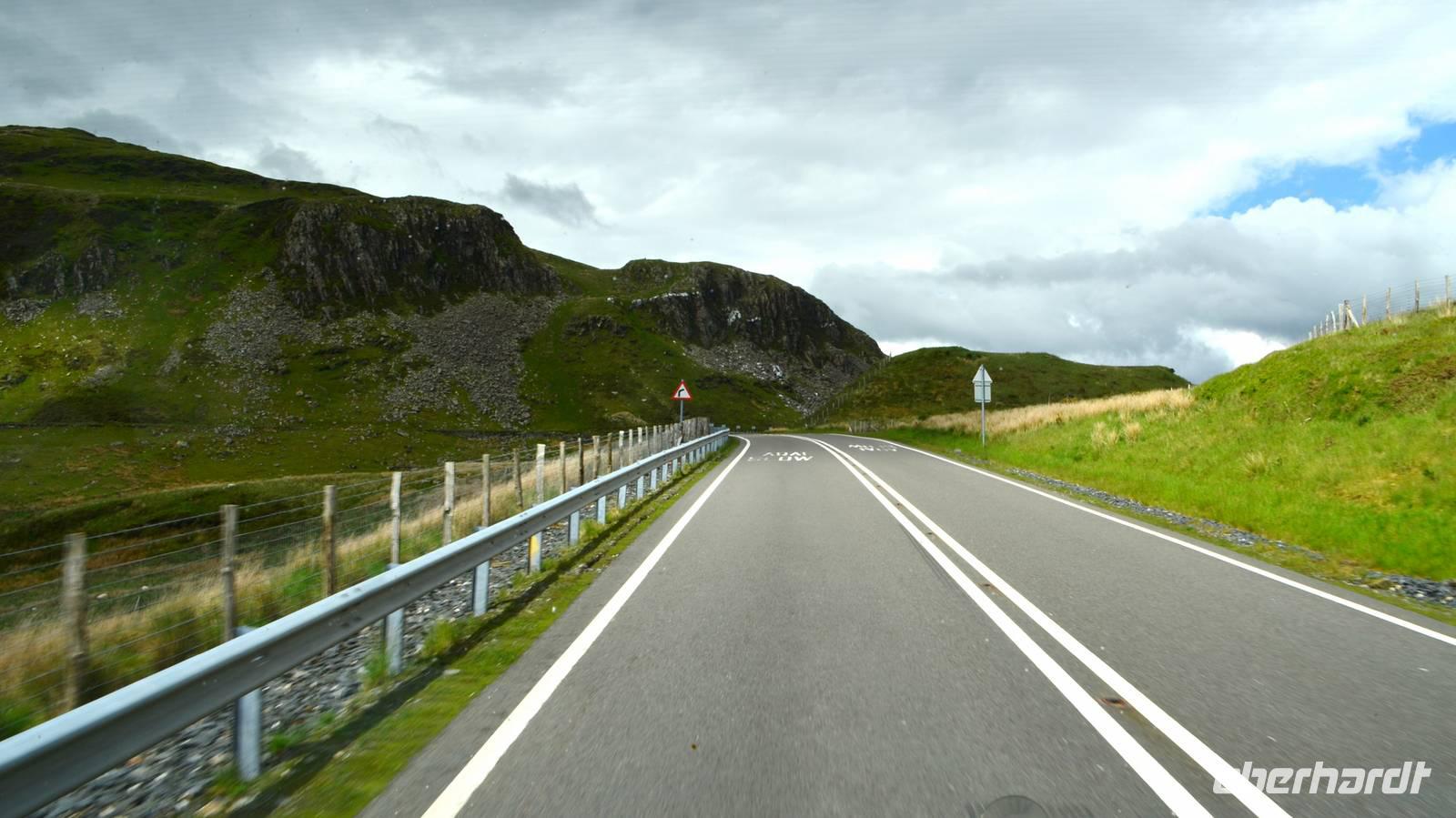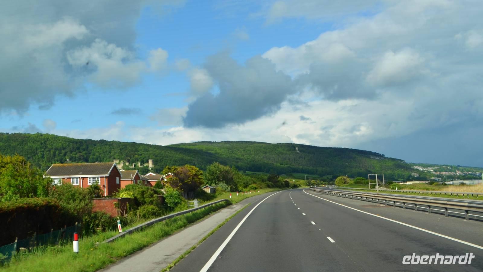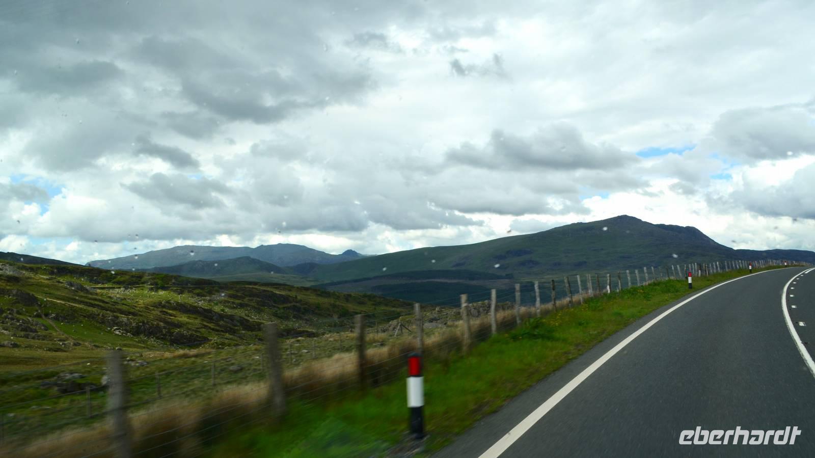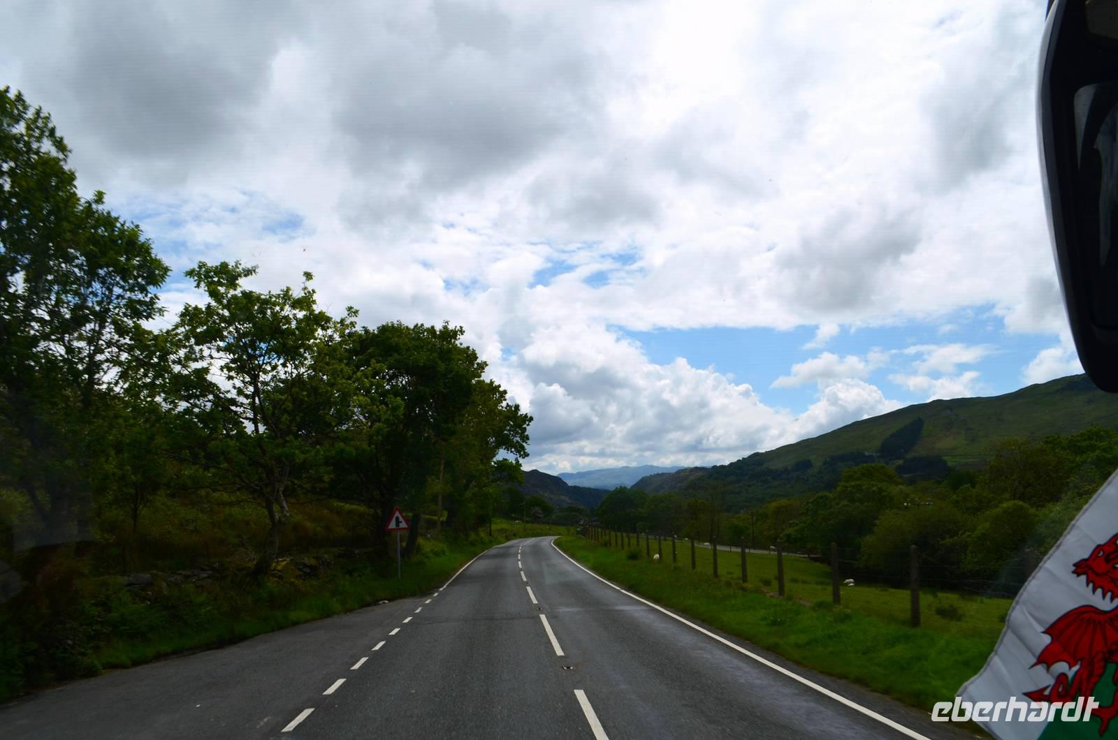 Heute etwas bedecktes Wetter und aber schön, wir fahren durch Nord-Wales - die Küstenstraße mit Blicken auf die irische See, die Berge und die Burgen des eisernen Ringes geht es entlang, vorbei an Conwy, kommen wir schließlich zur