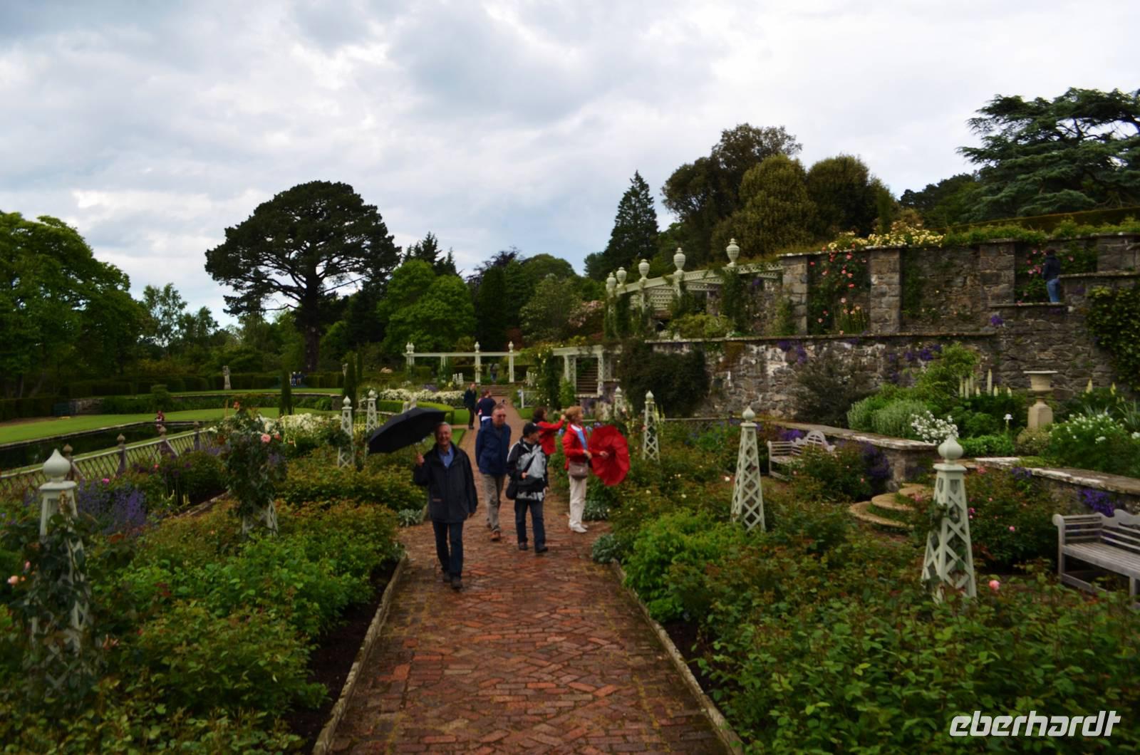 Nun fahren wir über den Pass in das schöne Conwy-Tal und von hier weiter durch die Waliser Berge zum Bodnant Garden, einem sehr sehenswerten Garten und Landschaftspark um einen schön gelegenen Herrensitz. Bei schönen Wetter ist es ein Erlebnis durch die Anlage zu spazieren, mit tollen Ausblicken in die Landschaft und das Gebirge.