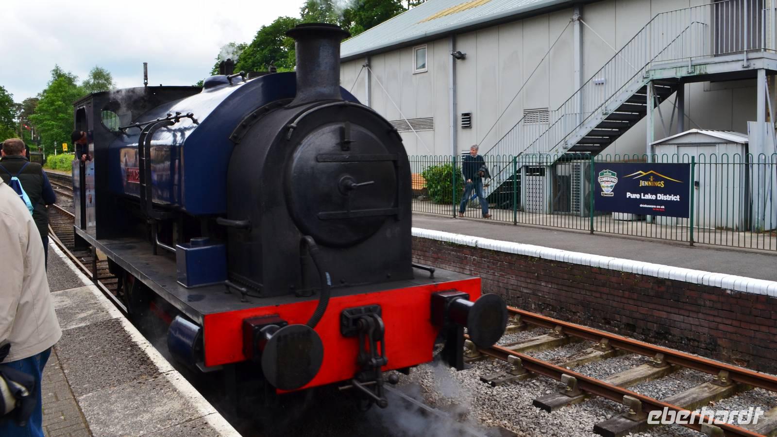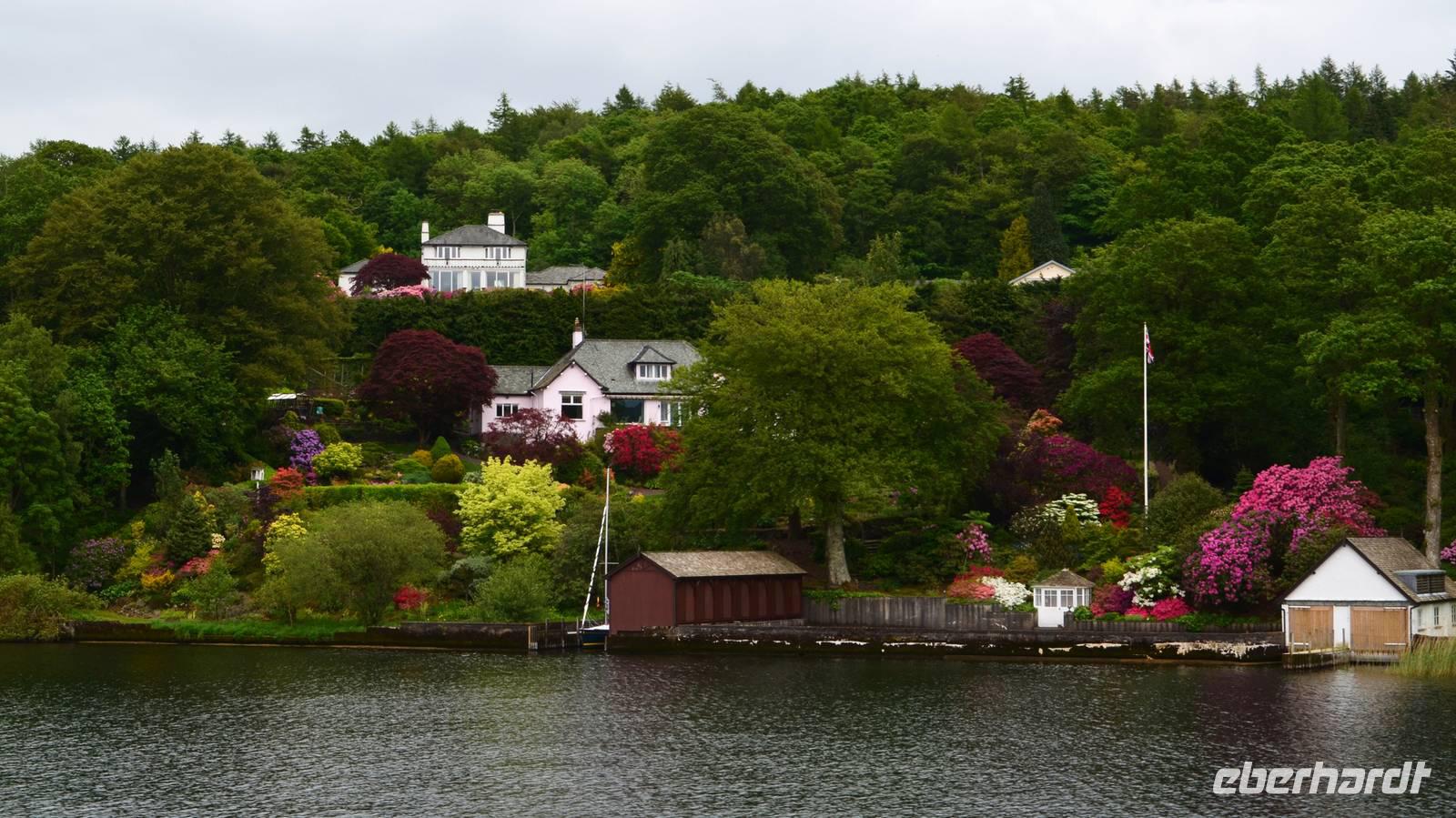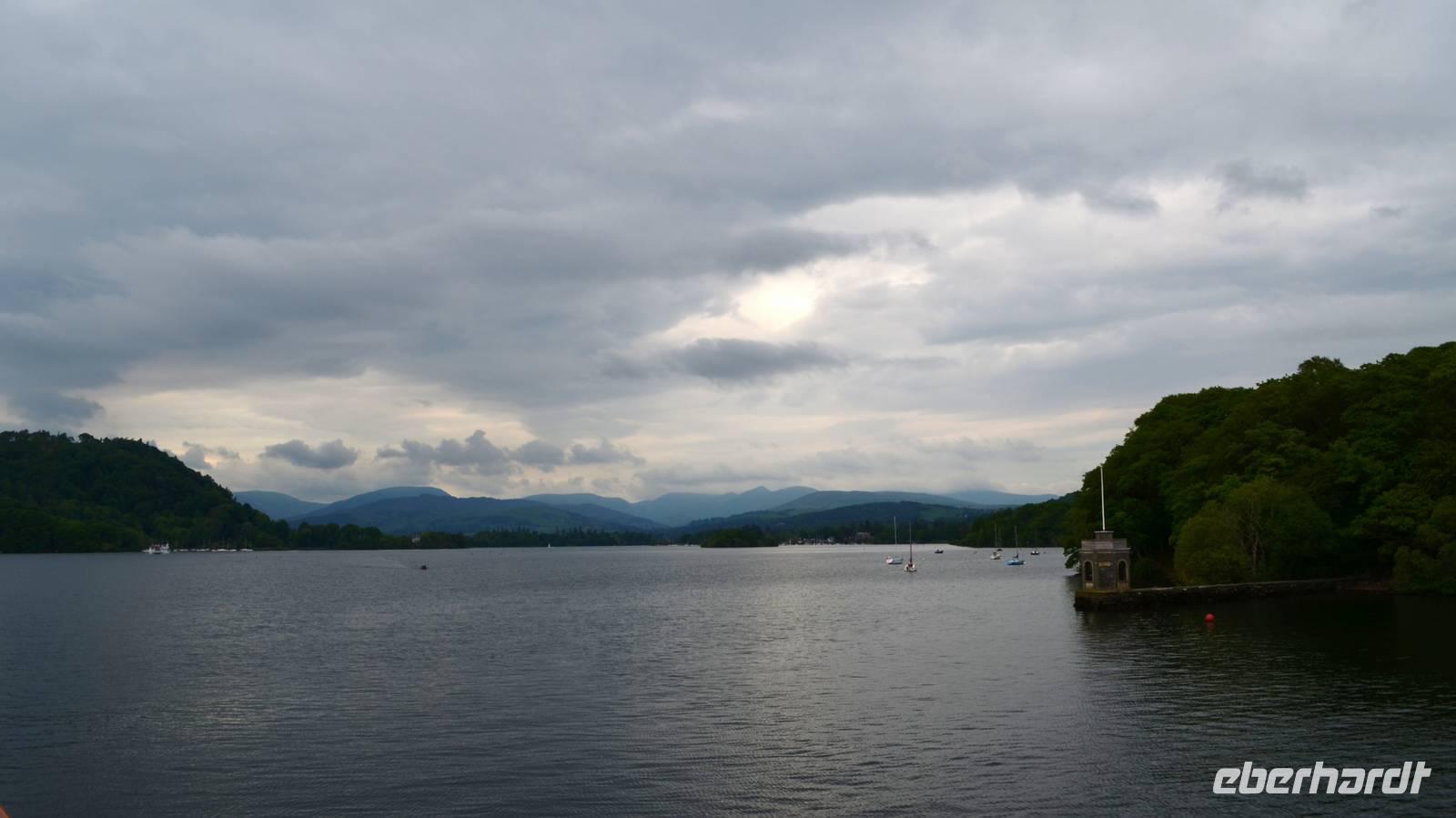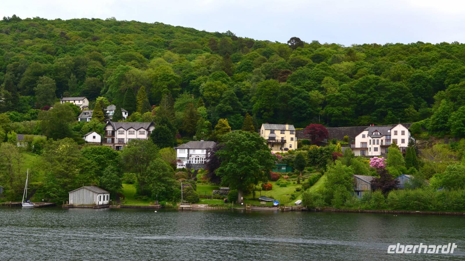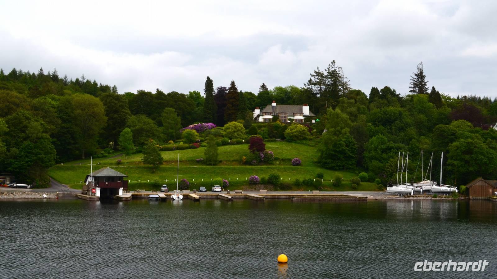 Lancaster machen wir eine kleine Kaffeepause und um 10:45 Uhr erreichen wir Lakeside und damit den Lake Windermere, Englands größten Binnensee. Hier bestehen Fotogelegenheiten für alle Gäste: Motive sind der wunderschöne See mit seiner Natur und Landschaft, der Nostalgie-Dampflokzuges im Bahnhof neben der Schiffsanlegestelle und natürlich unser Ausflugsschiff, der Schwan. Wir steigen ein, haben gute Plätze und schippern hinüber nach Bowness, den kleinen Hafen von Windermere. Nach einer kleinen Besichtigungspause fahren