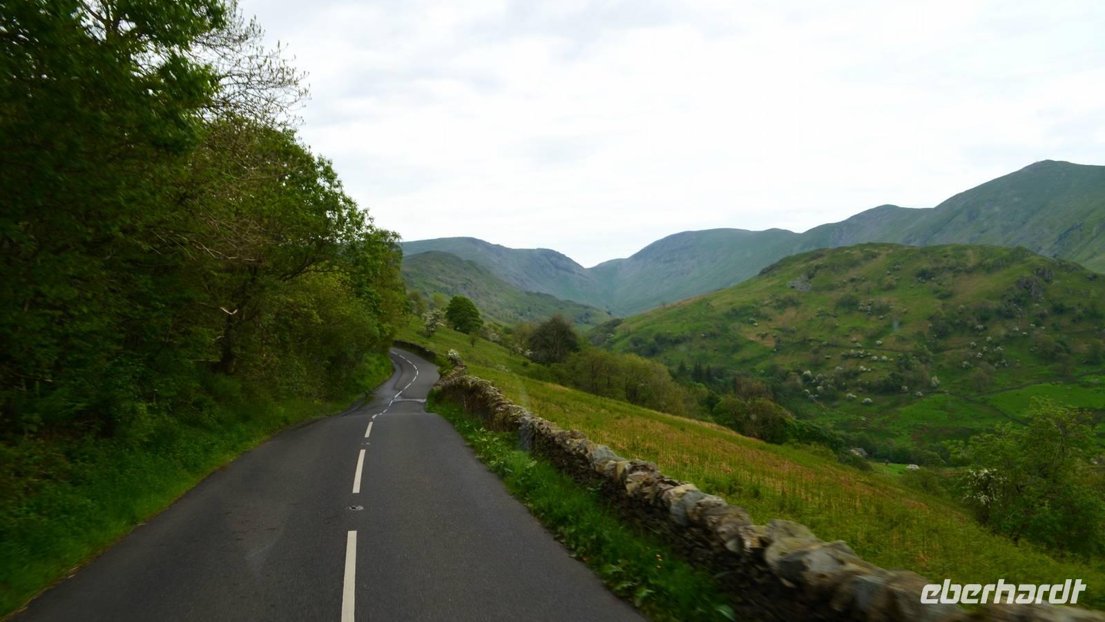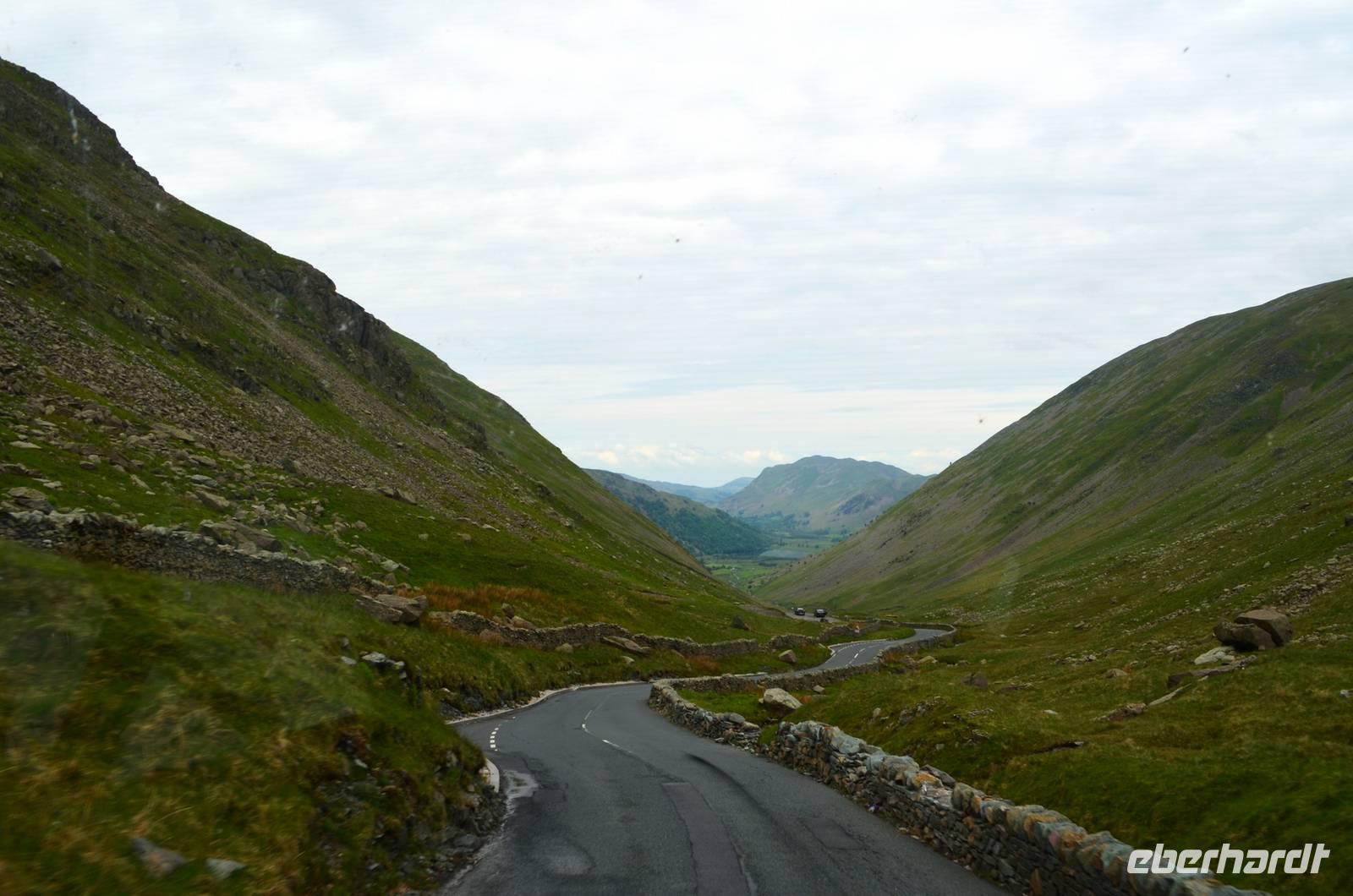 wir hinauf ins Gebirge zum Kirkstone Pass, wo wir bei einem Fotostopp die schöne Aussicht genießen und uns unser Mittag schmecken lassen. Dann gehts hinunter ins Gebiet der nördlichen Seen und am Lake Ullswater entlang