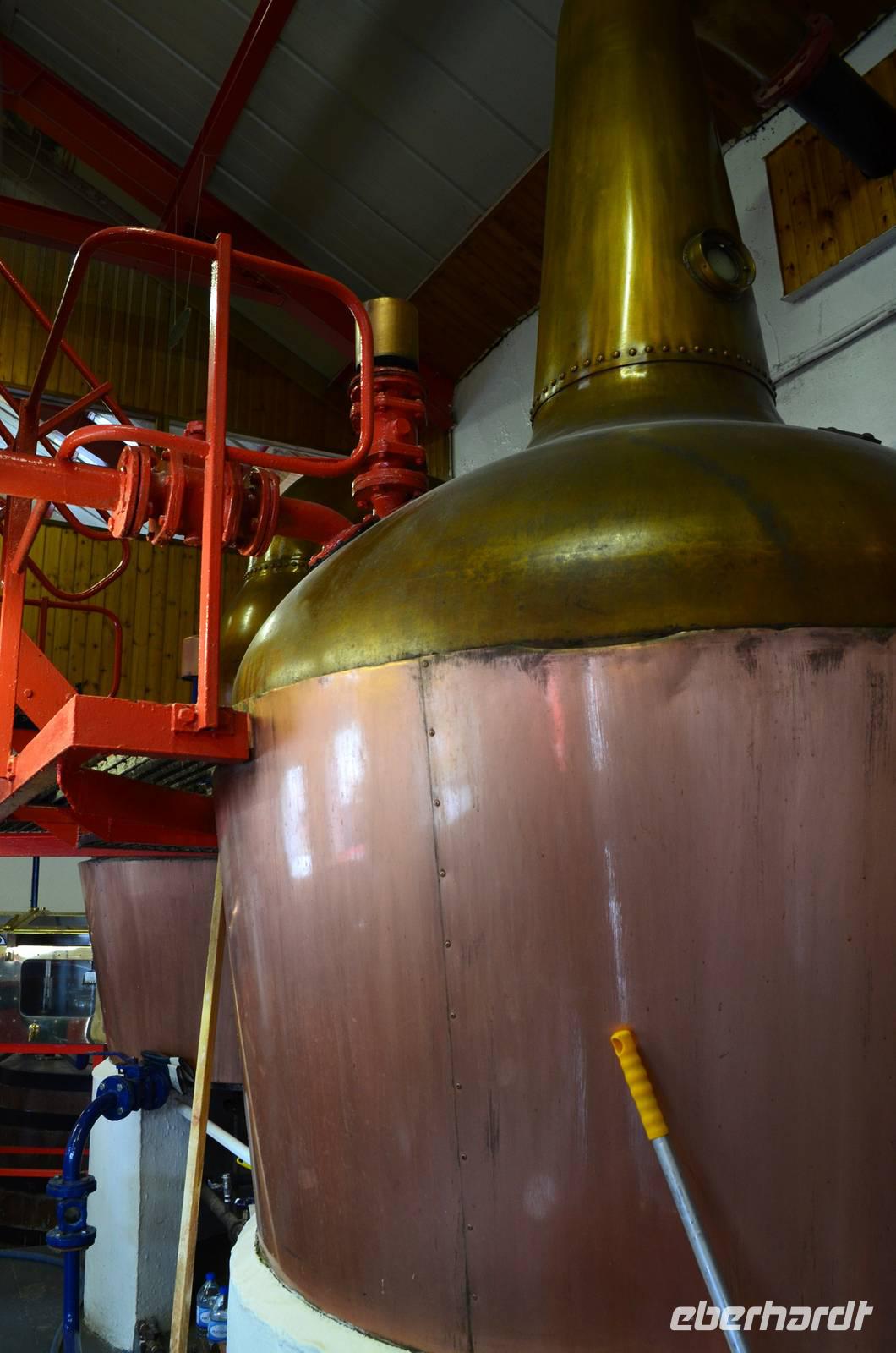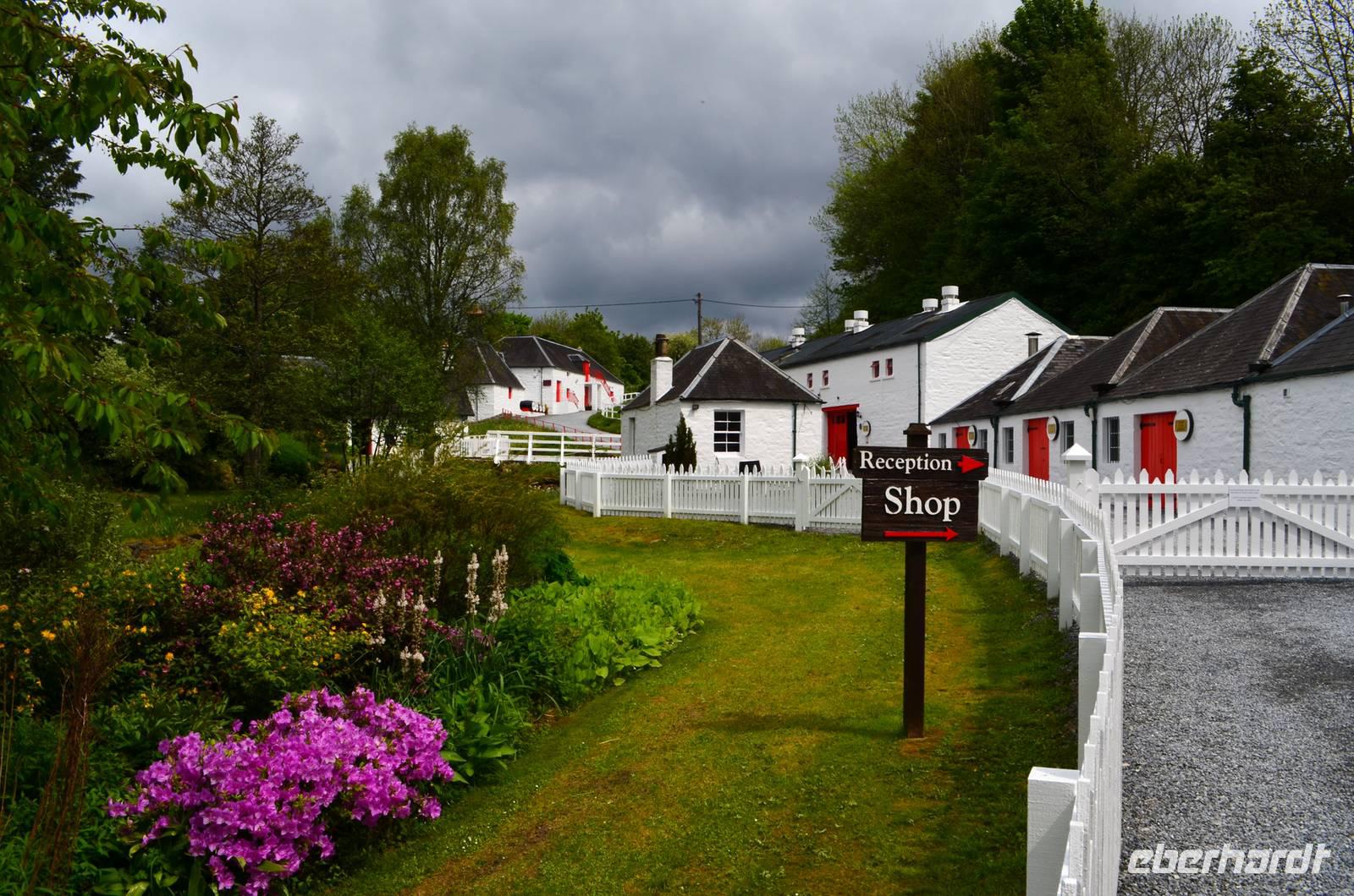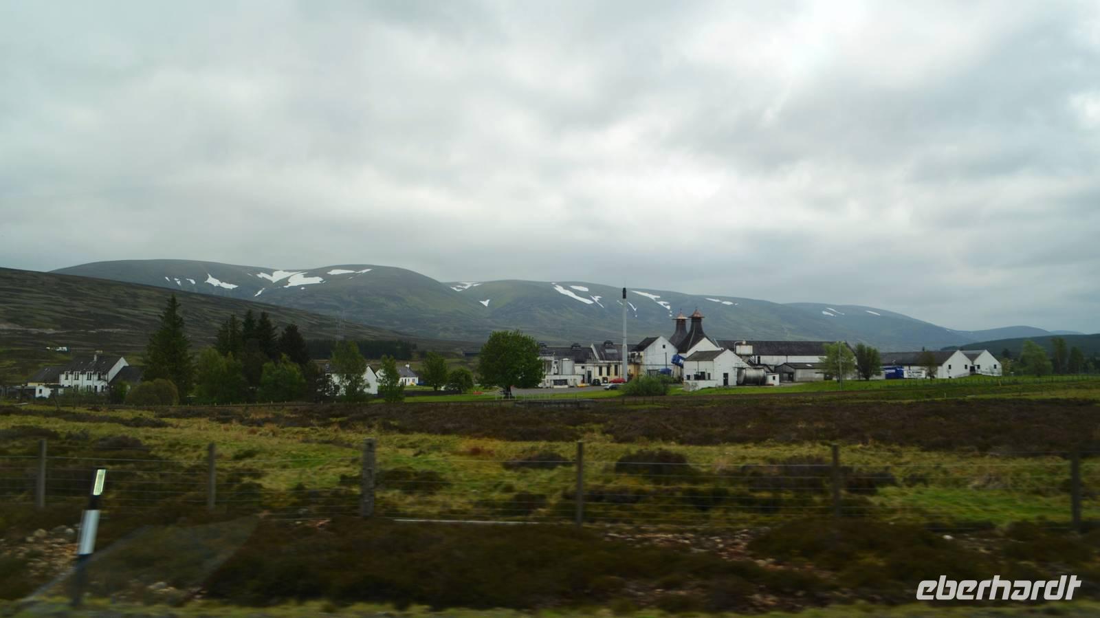 Nach gemütlichem Frühstück laden wir die Koffer und fahren wieder in die Highlands. Es liegt noch Schnee auf den Bergen und wir fahren durch die schöne Landschaft, vorbei an der Dalwhinnie-Destillery und Blair Castle Richtung Pitlochry. Bevor wir zur Whisky-Verkostung zur Edradour Destillery fahren, machen wir noch einem Abstecher zum Loch Tummel und dem schönen Queens View darüber. Mit dem Fraser als Führer besichtigen wir anschließend die Destillery. Im neuen Emfangsgebäude beginnt die Verkostung mit der Filmvorführung (deutsche Untertitel) und einem 10 Jahre alten Single Malt Scotch Whisky und einem Chremelikör pro Person. Von hier geht es dann durch die Lagerhallen und Produktionsräume der Destillery. Im Shop kann schließlich kaum einer dem Kauf wiederstehen.
