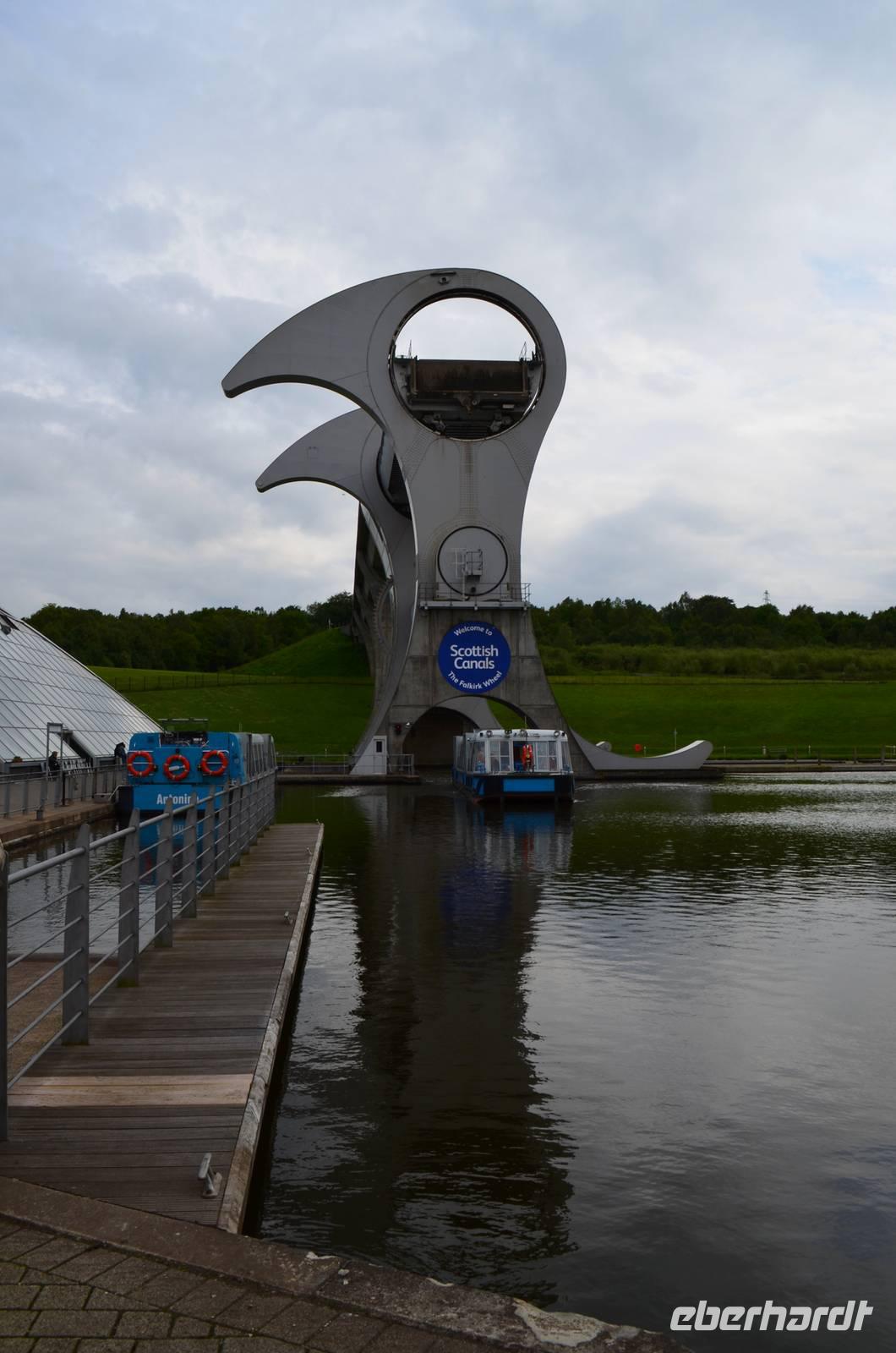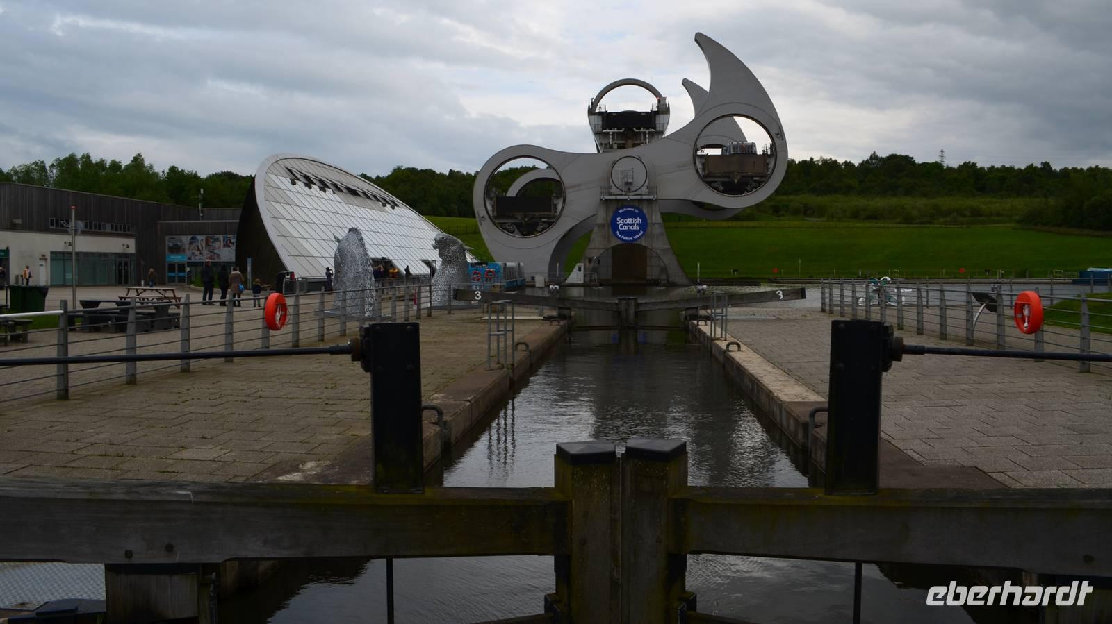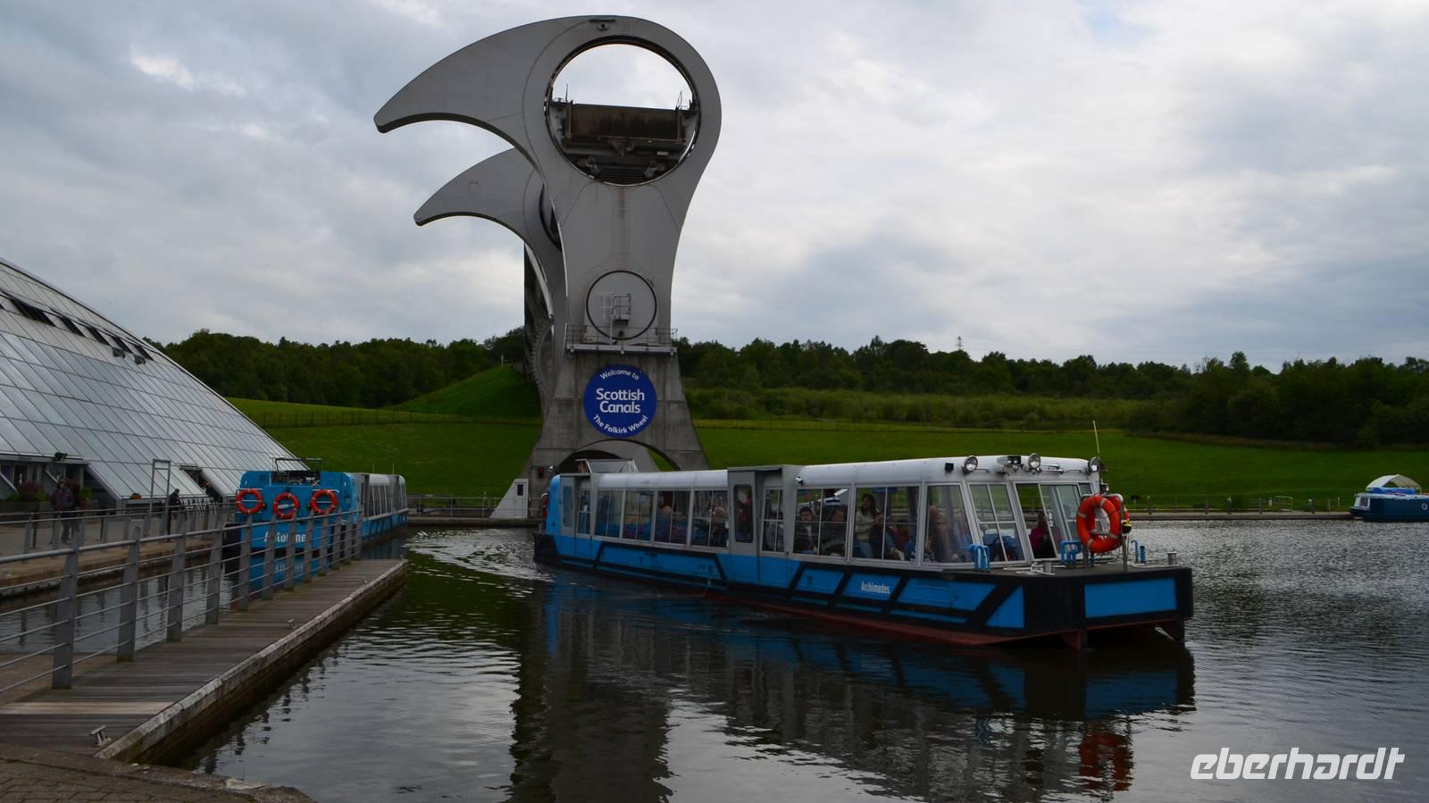 Wir fahren weiter - durch die Highlands zurück in die die Trossachs - am Loch Tay vorbei nach Killin, hier im Ort parken wir, machen Mittag und besichtigen die Falls of Dochart. Die Weiterfahrt geht über Callander und Stirling Richtung Edinburgh, mit Abstecher zum Falkirk Wheel, dem sehr sehenswerten Schiffshebewerk. Ein Schiff wird während unseres Aufenthaltes abgesenkt und so können wir uns auch von der Funktion der tollen Technik überzeugen.