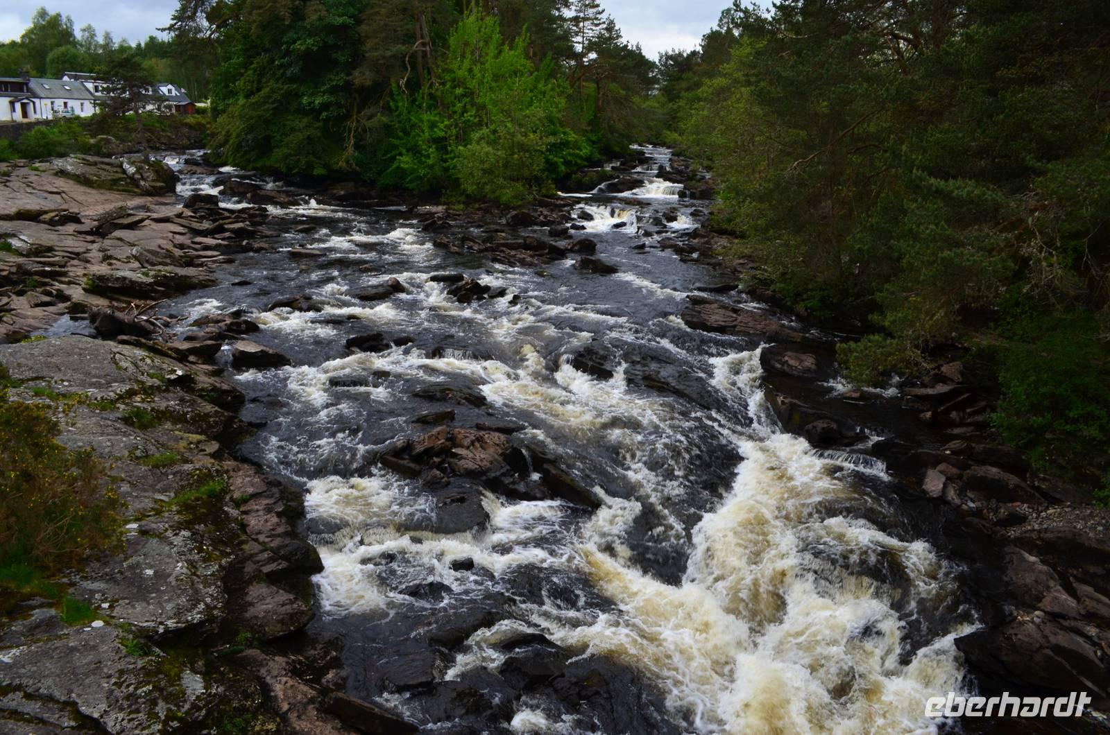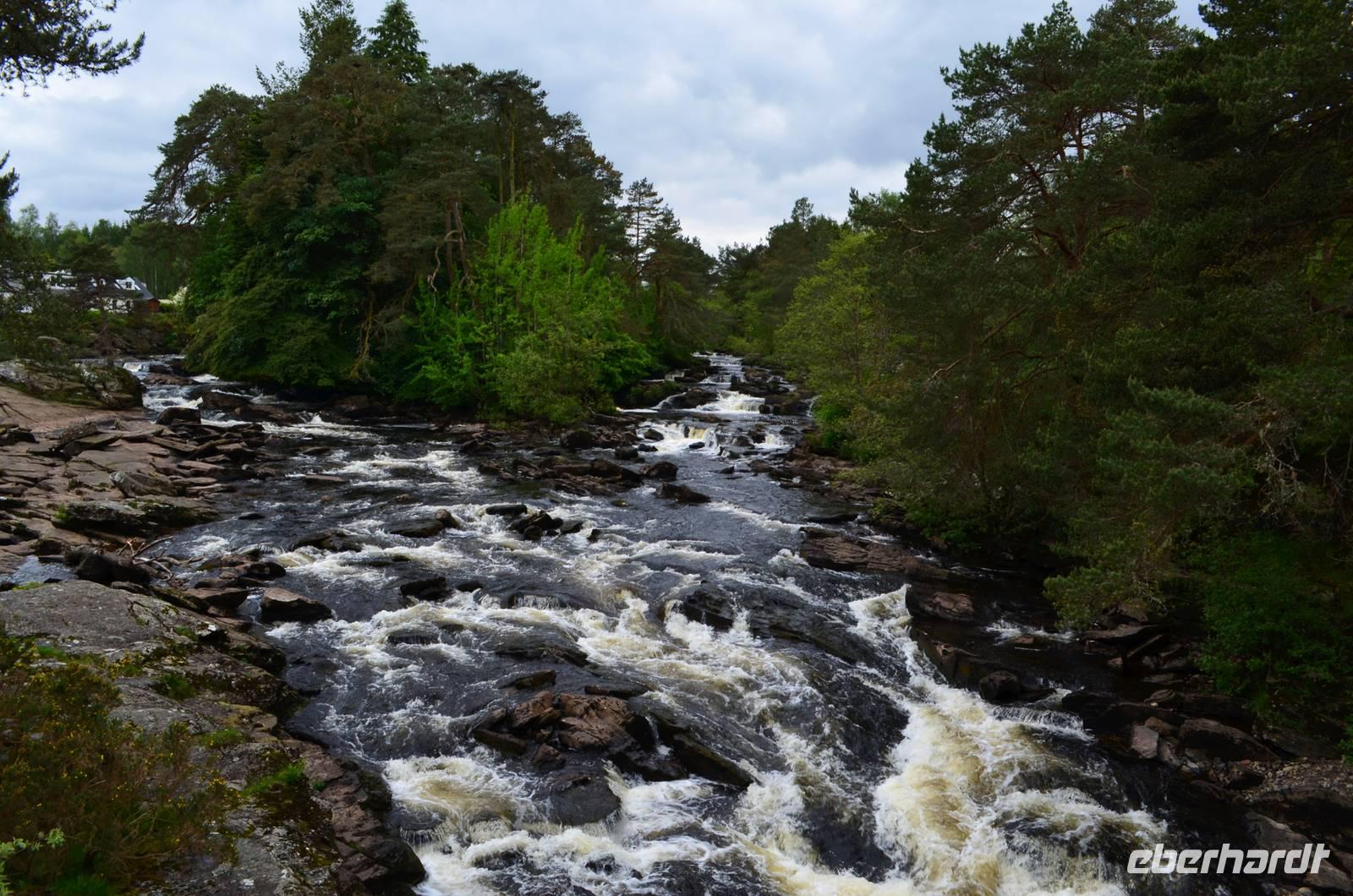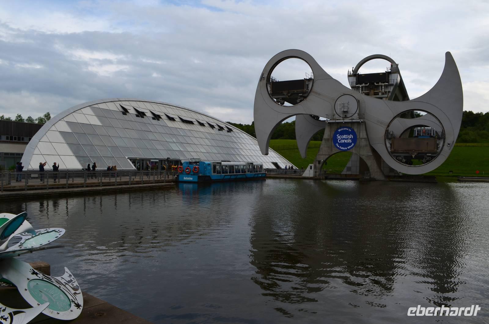 Wir fahren weiter - durch die Highlands zurück in die die Trossachs - am Loch Tay vorbei nach Killin, hier im Ort parken wir, machen Mittag und besichtigen die Falls of Dochart. Die Weiterfahrt geht über Callander und Stirling Richtung Edinburgh, mit Abstecher zum Falkirk Wheel, dem sehr sehenswerten Schiffshebewerk. Ein Schiff wird während unseres Aufenthaltes abgesenkt und so können wir uns auch von der Funktion der tollen Technik überzeugen.
