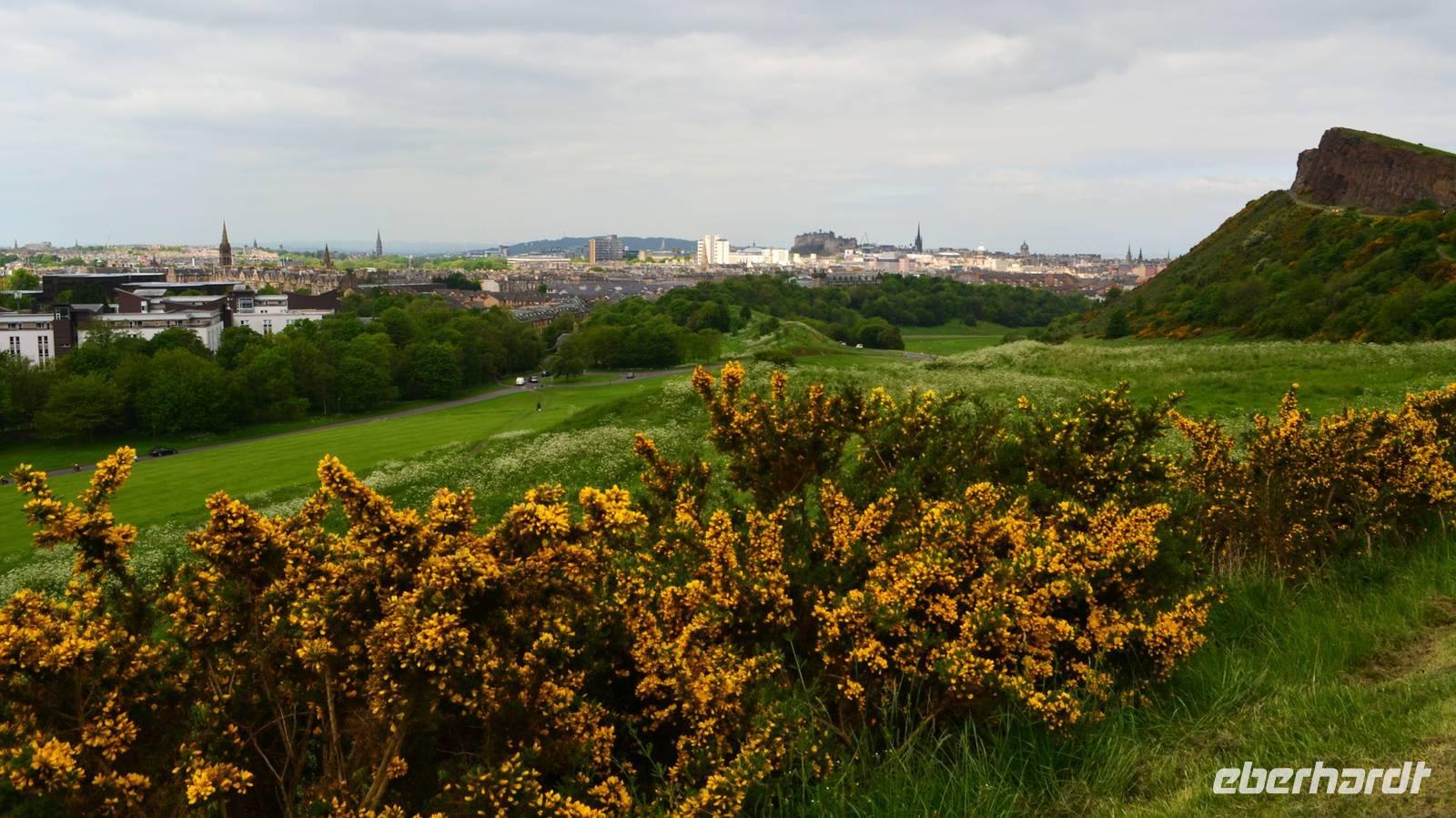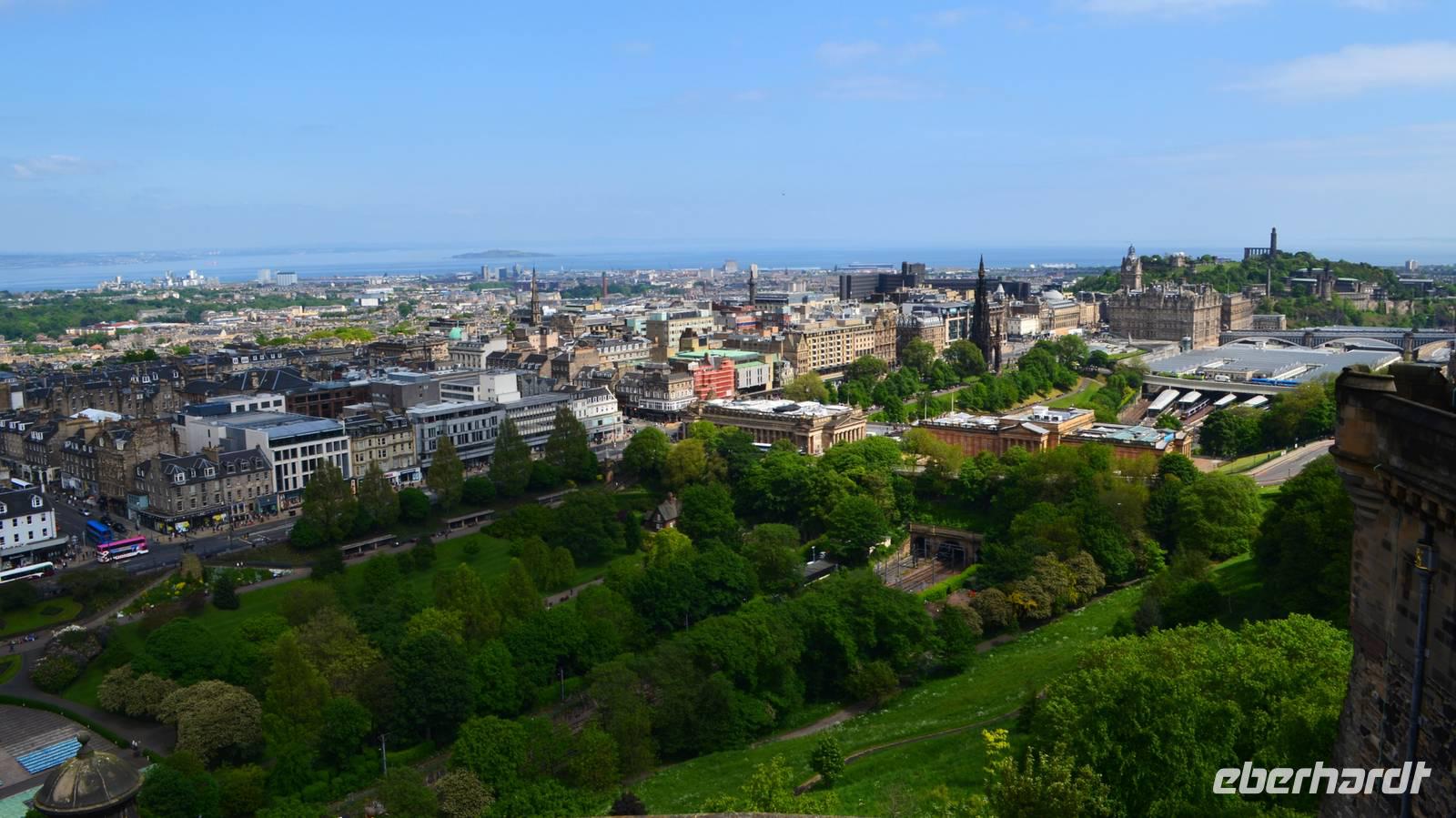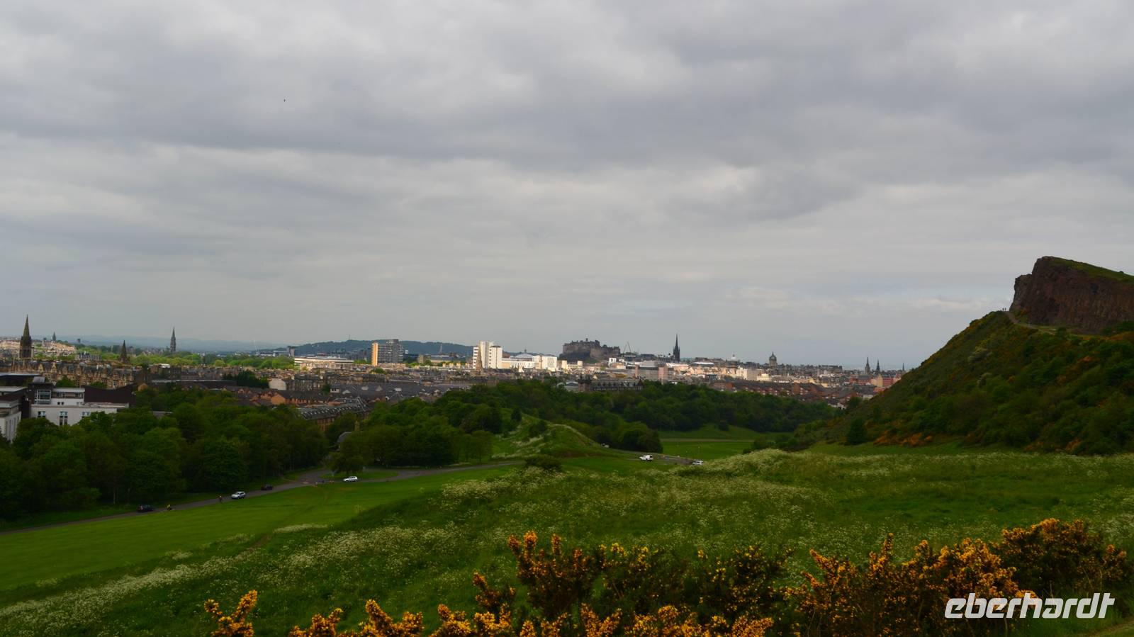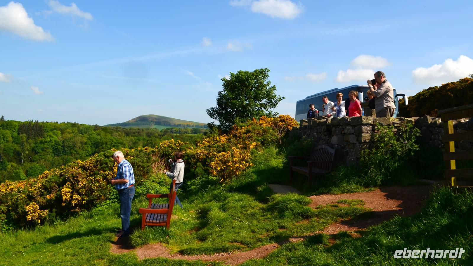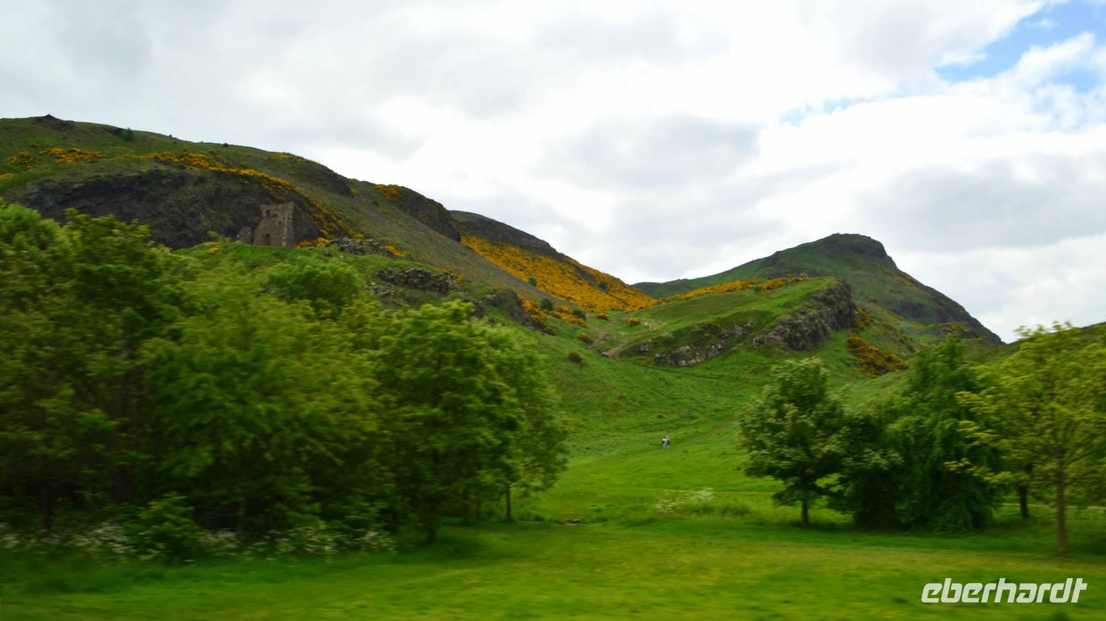 Heute ist es schön. Nach dem Frühstück treffen wir unsere Stadtführerin Doreen Boyle, mit der wir die Stadtrundfahrt durch Edinburgh unternehmen. Wir stoppen an den verschiedenen Sehenswürdigkeiten, fahren zum Vulkanberg Arthurs Seat, mit schöner Aussicht auf die Stadt. Die Sonne scheint und wärmt uns.