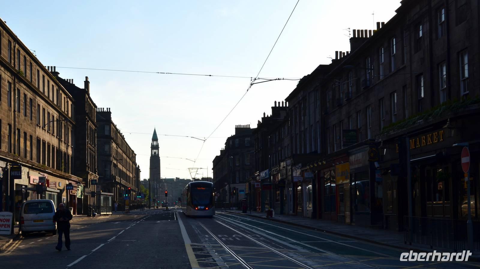 Wir frühstücken und nehmen Abschied von Edinburgh. Der Tag ist auch von einem besonderen Ereignis geprägt: Der Linienverkehr der neuen Straßenbahn von Edinburgh hat begonnen.