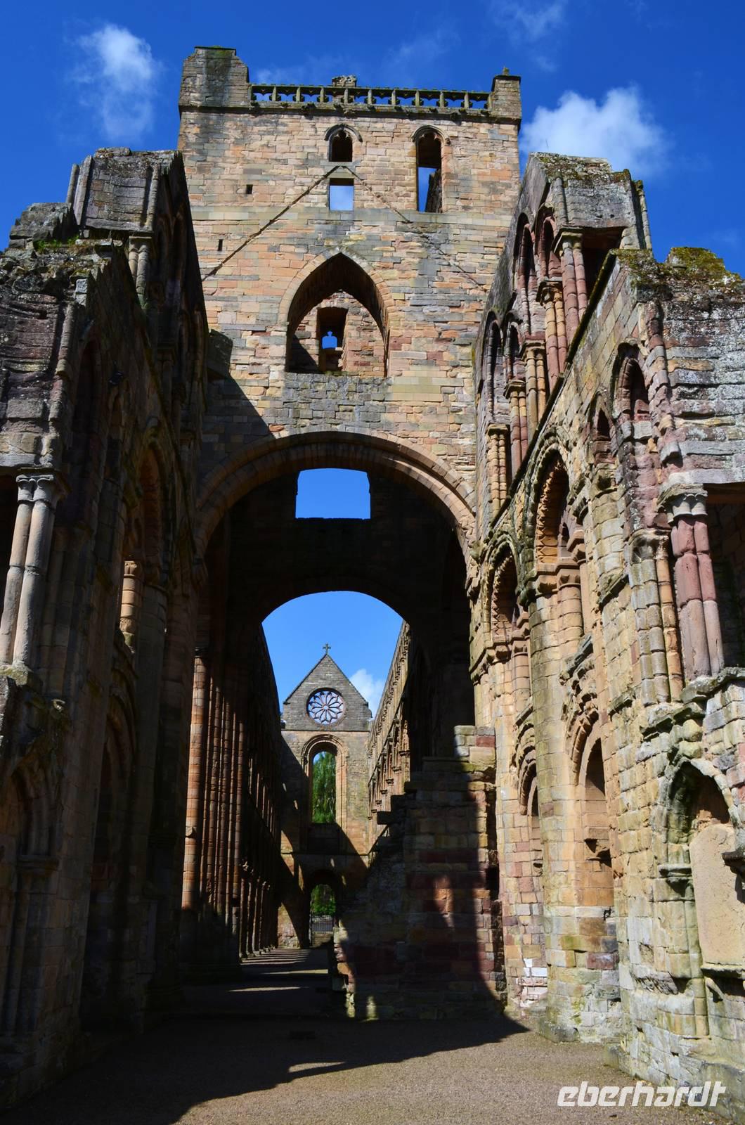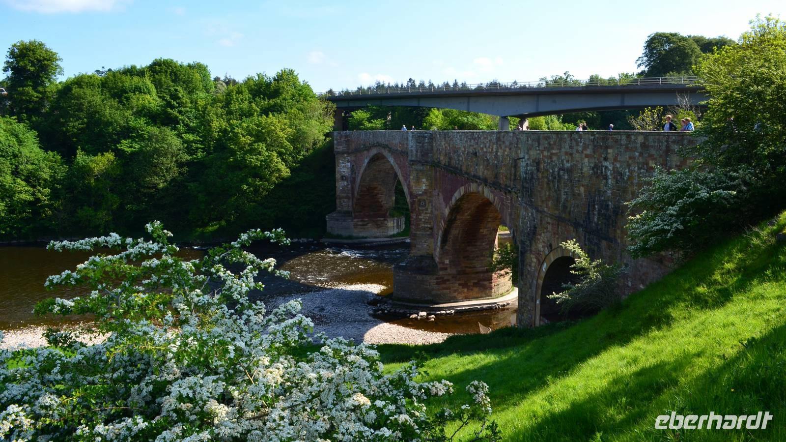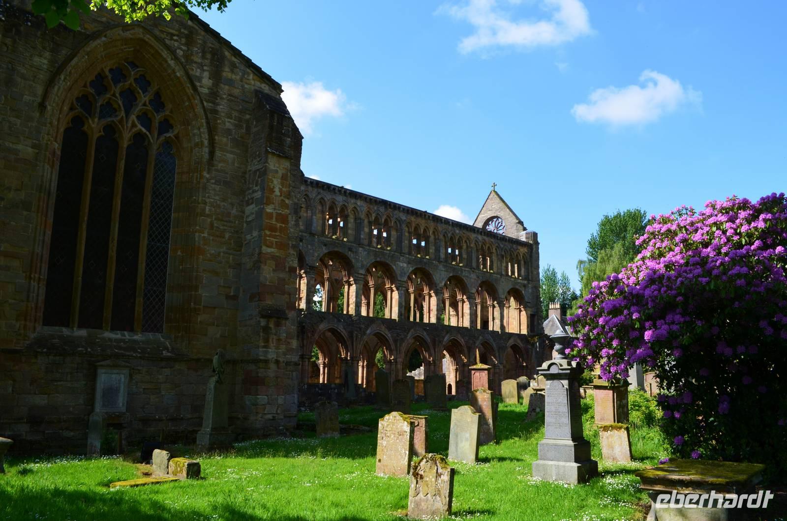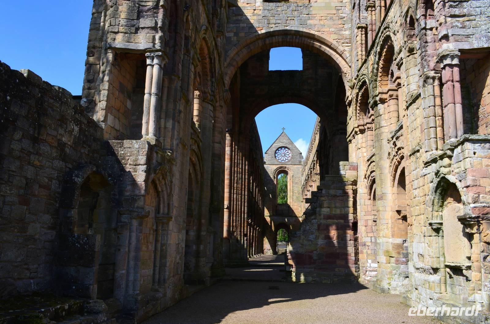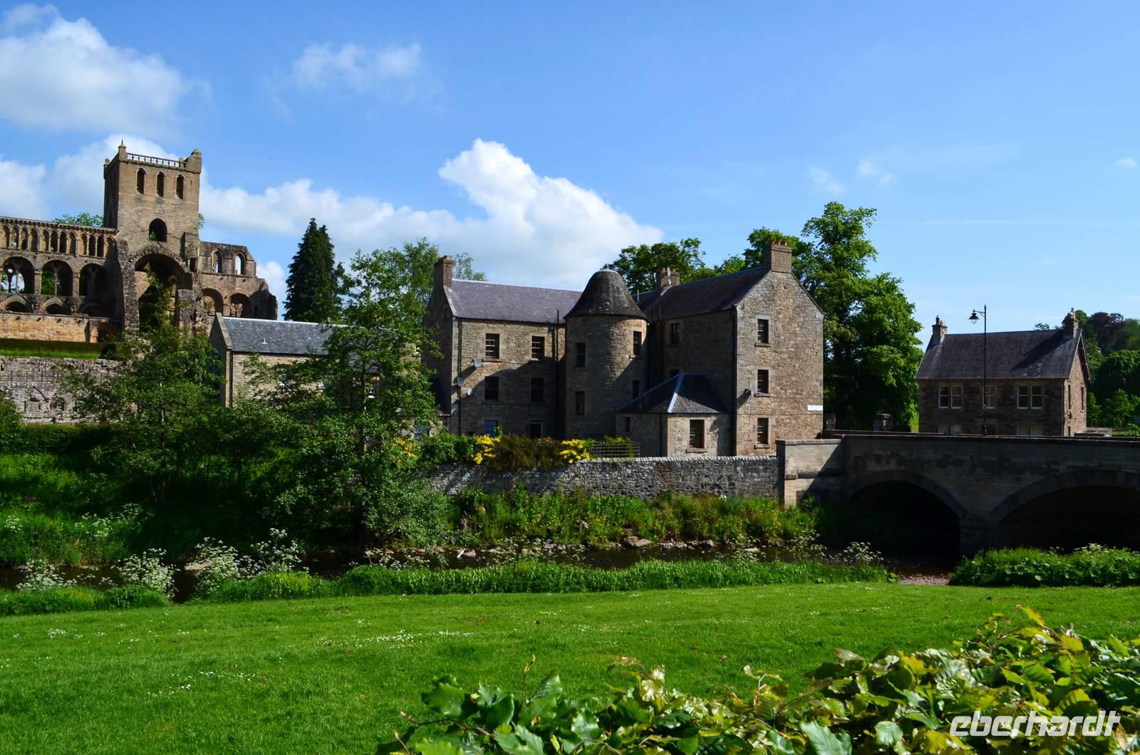 Unsere Fahrt geht Richtung Jedburgh. Durch die Täler der Flüsse Leader und Tweed fahren wir zuerst zu zwei Sehenswürdigkeiten: dem Leaderfood Viadukt und Scott´s View, dem Lieblingsplatz Sir Walter Scott´s. Danach erreichen wir die alte Klosterstadt Jedburgh. Ein Fotostopp an der Abbey ist selbstverständlich. Ein kleines Stück weiter erreichen wir mit Borders Bar die Grenze zwischen Schottland und England. Dann geht's hinein in die Natur von Northcumbria, vorbei an Newcastle. Die weitere Fahrt geht über die Autobahn M1 in die alte englische Hauptstadt York.