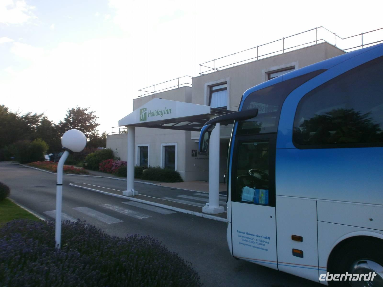 Die ersten Gäste besteigen den Bus des Pirnaer Reiseservice, welcher im Auftrag von Eberhardt Travel unterwegs ist, am Dresdner Flughafen. Nach dem Fahrerwechsel in der Nähe von Bad Hersfeld, Jörg Hoffmann übernimmt hier das Steuer ist dann die Reisegruppe komplett. 22 Gäste wollen die verschiedenen Regionen Großbritanniens erleben. Dafür heißt es heute erst einmal immer Richtung Westen. Vorbei an Köln und Aachen erreichen wir Belgien, wo wir bei der Umfahrung Brüssels sogar den Blick auf das weltberühmte Atomium genießen können. Von der belgisch-französischen Grenze aus ist es dann nicht mehr weit bis Calais. Das dortige Holiday Inn ist eine gute Basis um morgen die Kanalüberquerung zu starten.