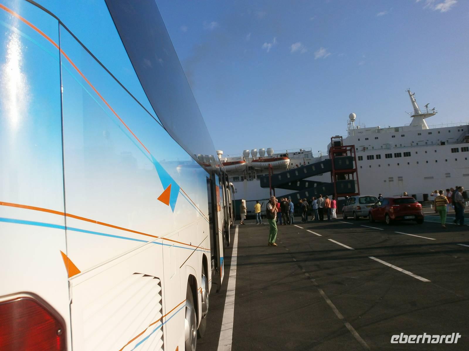 Wir verlassen die Fähre im Hafen von Rotterdam. Auf der Rückfahrt begleiten uns viele schöne Reiseerinnerungen.