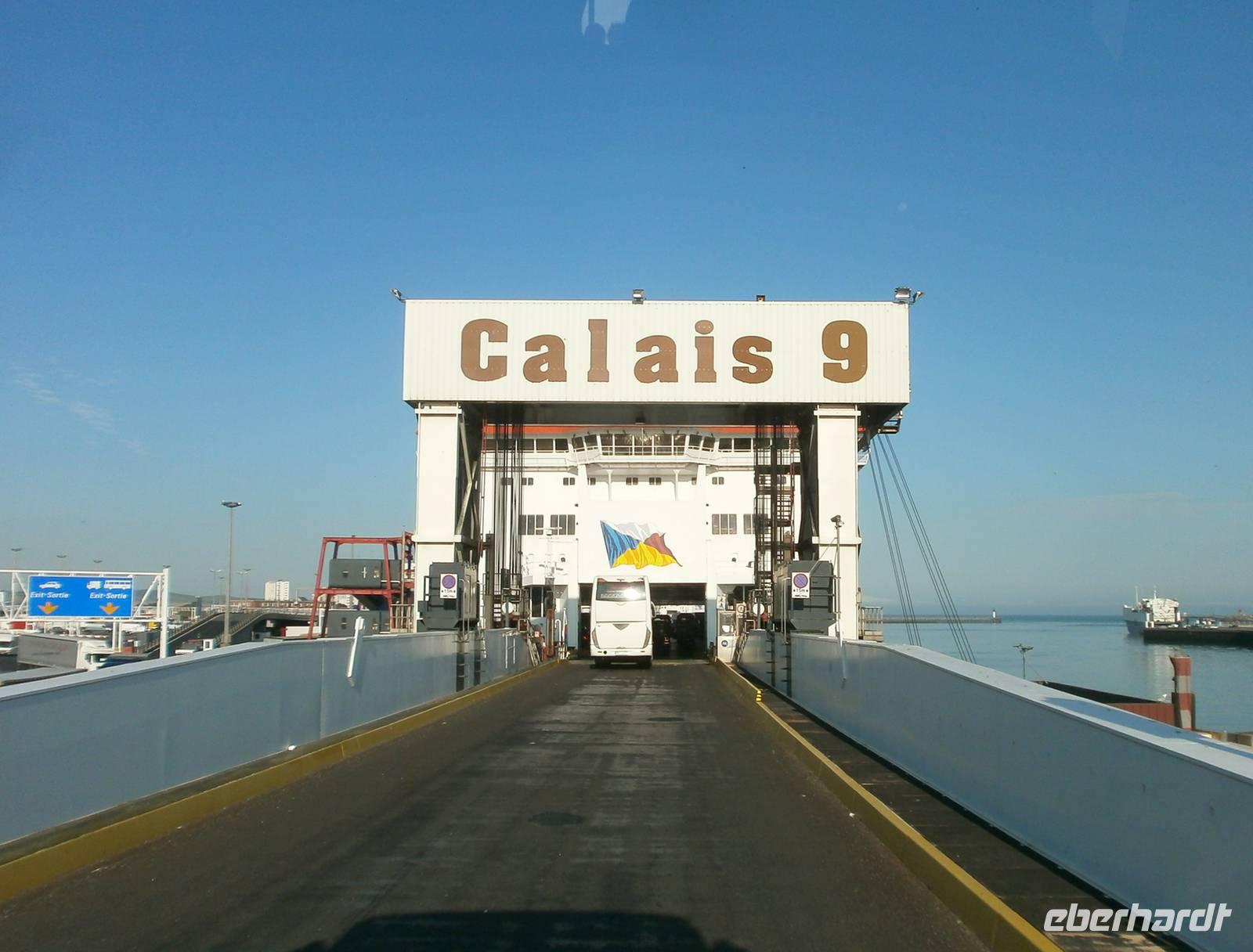 Nach dem Frühstück und wenigen Minuten Fahrzeit sind wir dann am Hafen von Calais. Schon vor dem Ablegen der „Pride of Burgundy" ist Dank des herrlichen Wetters die englische Küste mit ihren berühmten Kreidefelsen auszumachen.