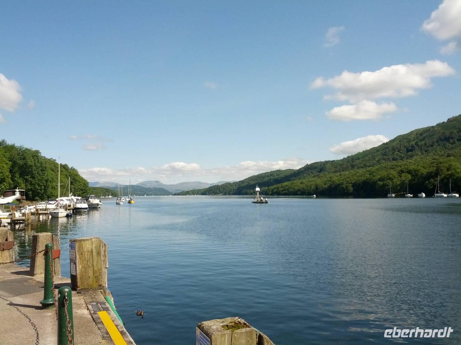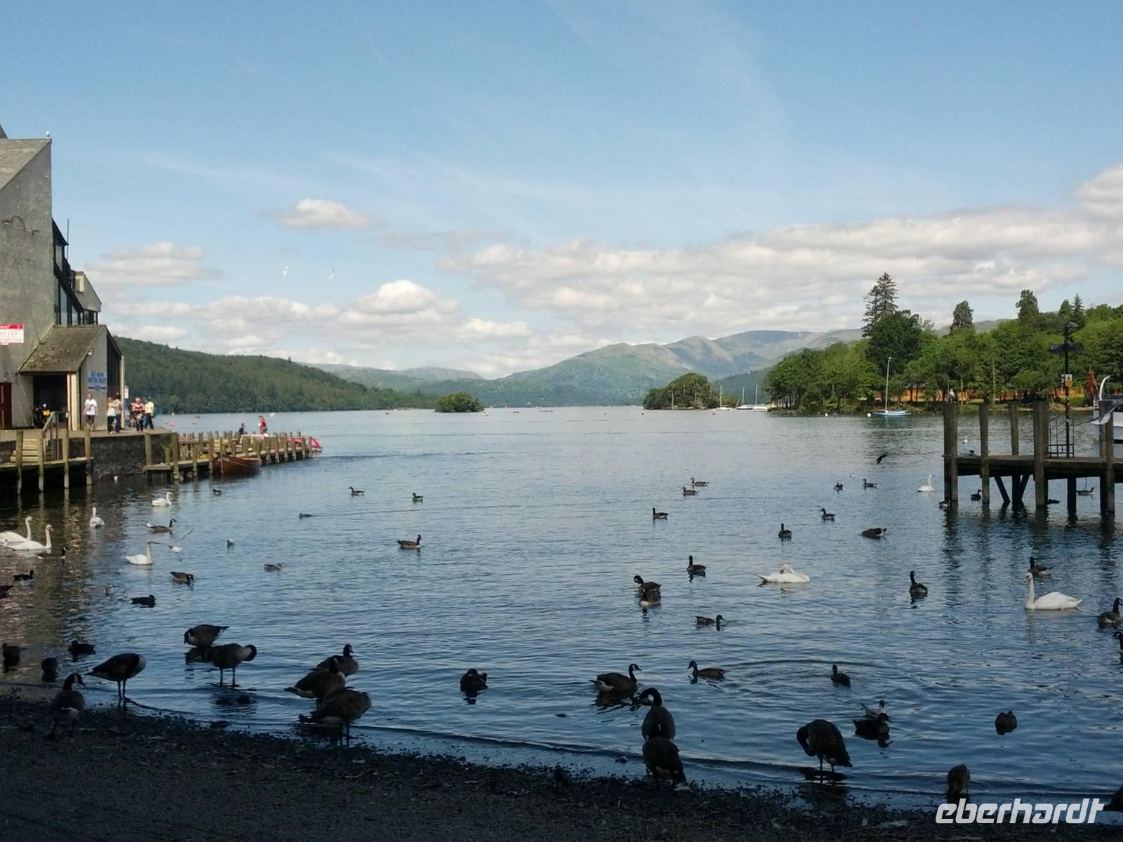 Mit Erreichen des Lake Districts haben wir Wales schon längst wieder verlassen. Das englische Seengebiet erleben wir bei einer Schifffahrt auf dem Lake Windermere. Schön ist es auch hier; in Bowness geht es dann auch entsprechend lebhaft zu. Mit Fish & Chips genießen viele von uns heute ein typisch englisches Mittagessen an einer der schön am Seeufer gelegenen Imbissbuden. Gestärkt geht es dann über den Kirkstone Pass am Ullswater entlang. Bei Penrith verlassen wir das Gebiet der Seen: Schottland erwartet uns!
