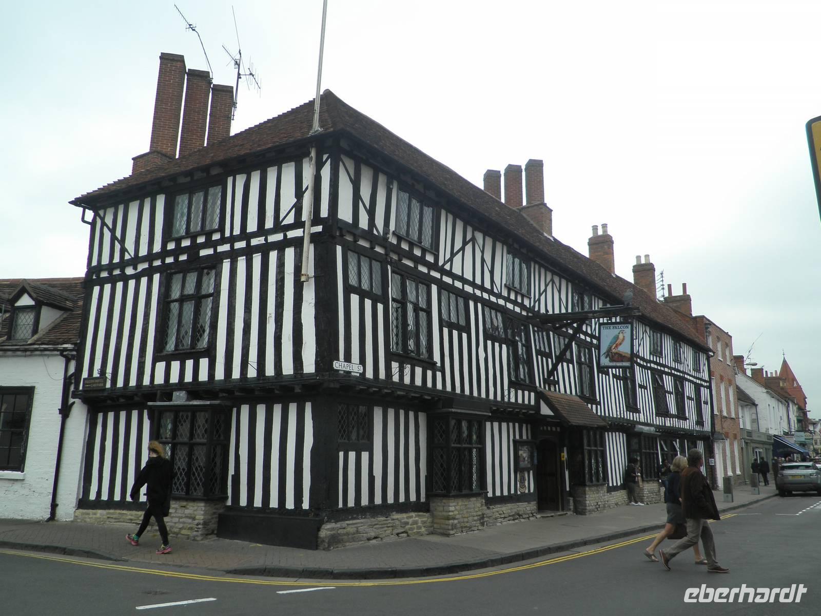 Nach einem guten englischen Frühstück spazierten wir zunächst ins Zentrum von Coventry, vorbei an der Statue der legendären Lady Godiva, und besichtigten die Ruine der Kathedrale, die im zweiten Weltkrieg durch deutsche Bomben zerstört worden ist. Sie blieb als Mahnmal stehen, daneben erhebt sich die neue Kathedrale von Coventry. Im Anschluss daran fuhren wir nach Stratford-upon-Avon, in die Geburtsstadt William Shakespeares. Wir unternahmen einen Spaziergang durch Stratford und entdeckten dabei einige der Stätten, die mit William Shakespeare in Verbindung stehen: New Place, Halls Croft, Holy Trinity Church. Wir sahen das berühmte Shakespeare-Denkmal (Gower-Denkmal), rustikale Fachwerkhäuser und enge Kanäle, auf denen noch heute schmale Boote unterwegs sind. Shakespeares Geburtshaus liegt in der belebten Fußgängerzone. Direkt daneben ein Informationszentrum mit Museum.