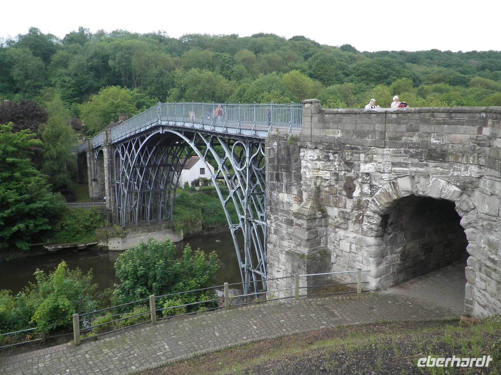 Die erste Sehenswürdigkeit des Tages führte uns nach Ironbridge, einem kleinen Ort, der nach seiner Hauptattraktion, einer eisernen Brücke, benannt worden ist. Die gleichnamige Brücke erinnert an die industrielle Revolution und die Anfänge der Architektur mit Eisen, denn sie ist die erste Eisenbrücke der Welt. Das Bauwerk wird ständig gewartet, um korrodierte Stellen zu pflegen. So macht die Brücke auch heute einen soliden Eindruck, so dass man gern darüber hinweg spaziert und den Fluss Severn unter sich dahinströmen sieht.