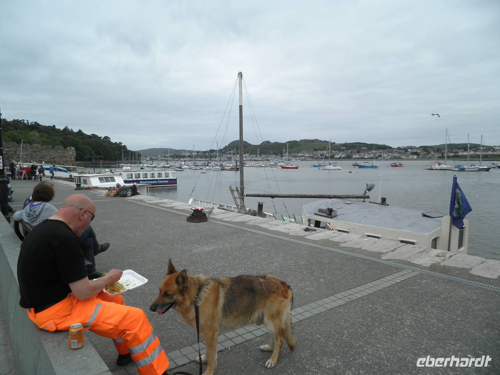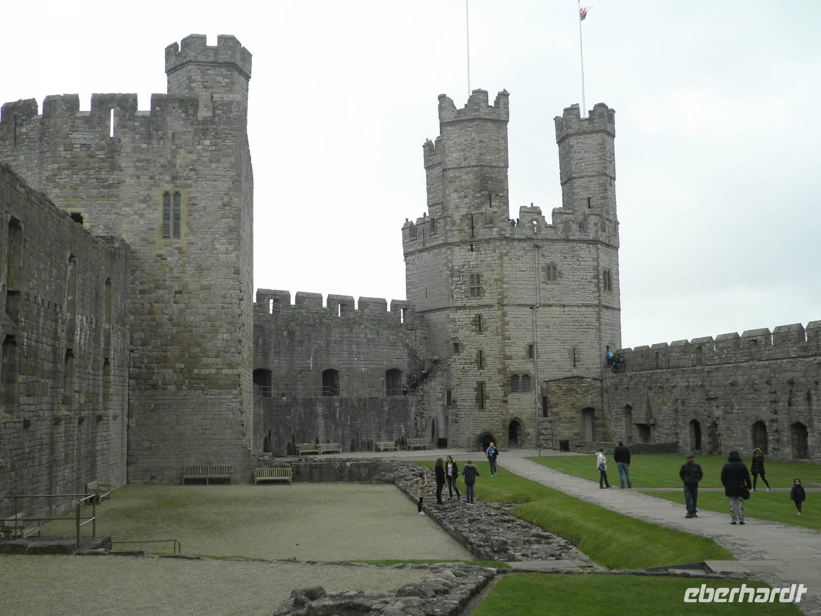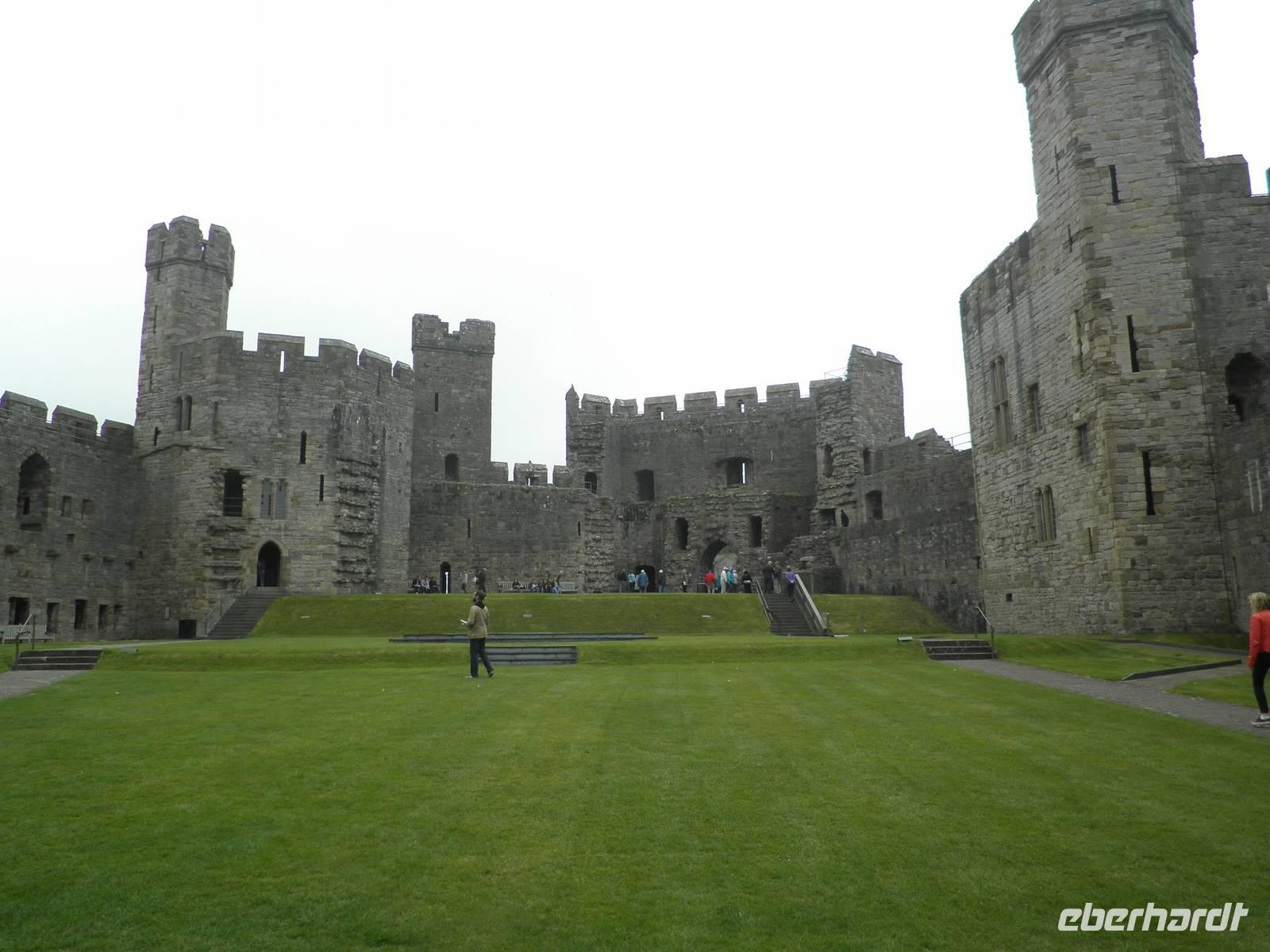 An diesem Tag erkundeten wir Wales, den kleinsten Landesteil der Britischen Insel. Zunächst überquerten wir die Menai Street, um auf die Insel Anglesey zu gelangen. Schon vom Bus aus erhaschten wir einen Blick auf die Berühmte „Suspension Bridge" von Thomas Telford aus dem Jahre 1826, die wir bei einem kurzen Stop auch fotografieren konnten. Gleich darauf besuchten wir ein kleines Dorf, das wohl den längsten Namen in Großbritannien trägt. Der Ortsname besteht aus 58 Zeichen und beginnt so: „Llanfairpwellgwyn..." Besuchermagnet ist der Bahnhof, an dem das Ortsschild in voller Länge prangt und einfach fotografiert werden muss. Danach erkundeten wir Caernarfon Castle, das einige Räume zu besichtigen hat, z.B. eine Ausstellung über Prince Charles, der hier im Jahre 1969 zum Prinzen von Wales gekrönt worden ist.