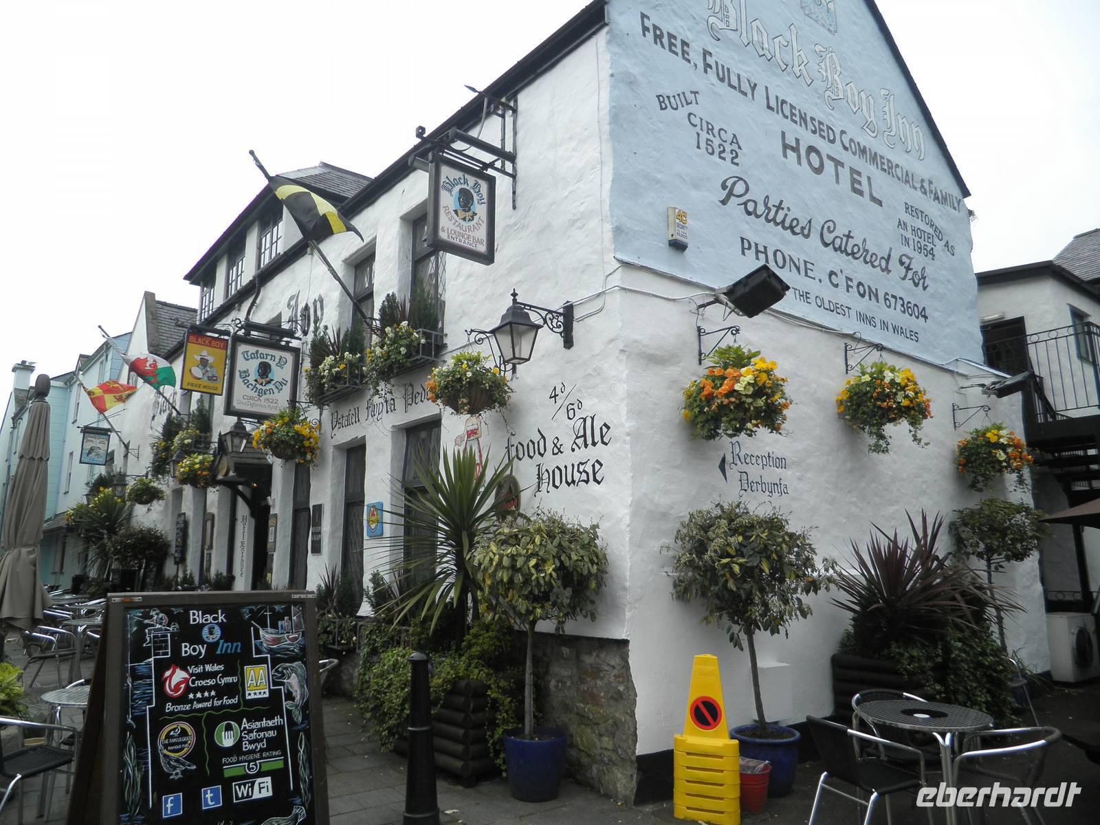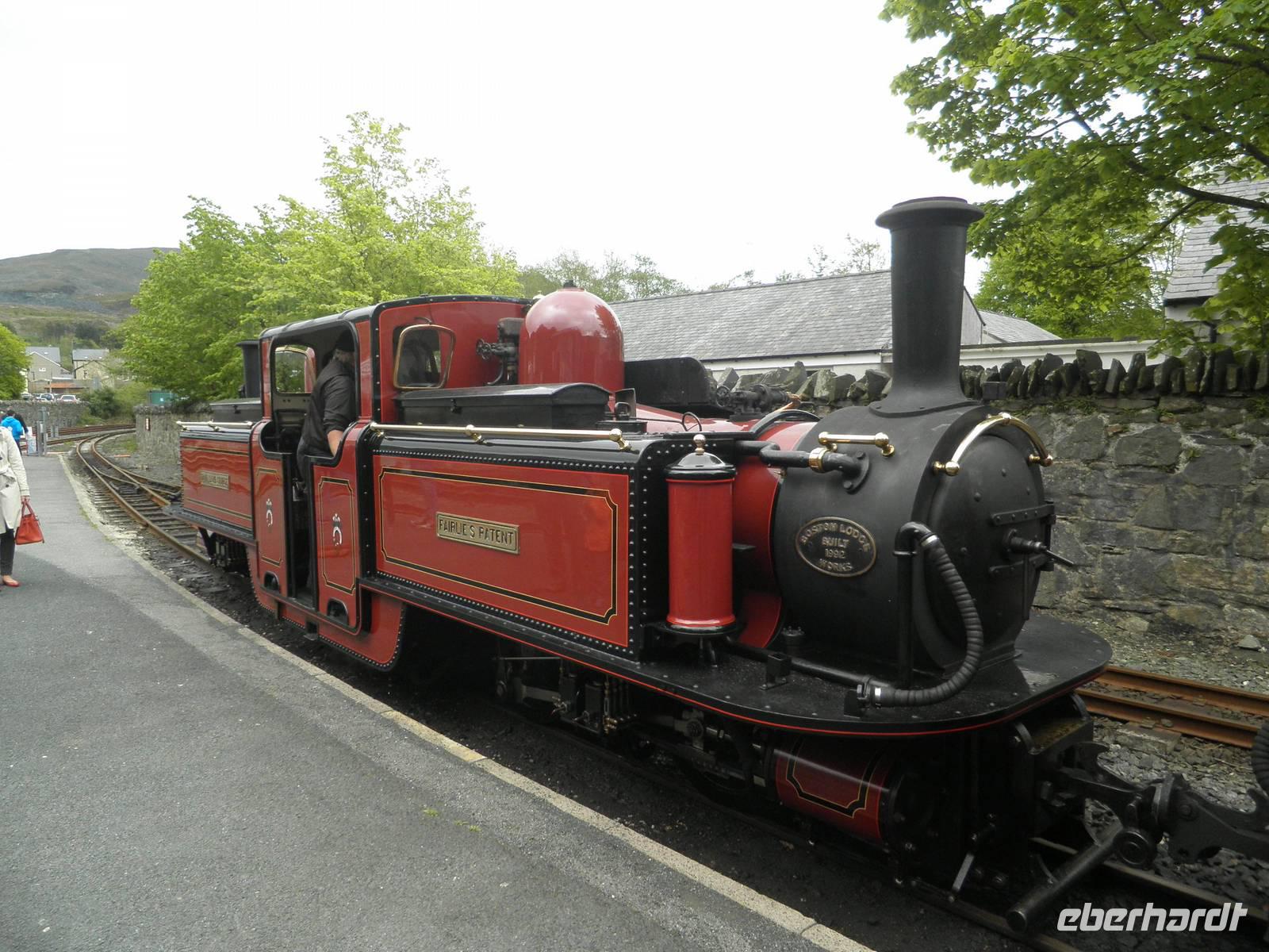 Wir verließen Caernarfon nach etwas Freizeit im Ort, fuhren in Richtung Süden, durch das Örtchen Beddgelert, in dem „der Hund begraben" ist und erreichten die Hafenstadt Porthmadog. Dort bestiegen wir einen historischen Zug, der von einer Dampflock gezogen wurde: Ffestiniog Railway. Unsere Gruppe saß in einem eigenen Wagen und so zuckelten wir gemütlich durch die walisische Landschaft, mit Bergen, Wasserfällen, Seen, viel Grün und noch mehr Schafen. Einige Gäste probierten das Bier, das hier Ale heißt. Der Zug entließ uns in Blaenau Ffestiniog, früher ein Zentrum des Schieferabbaus. Unser Bus erwartete uns am Bahnhof. Weiter ging es nach Conwy, einem herrlichen Städtchen mit allem, was sich der Tourist so wünscht: ein altes Castle, das Meer, Fischerboote, gemütliche Cafés und als Besonderheit, das kleinste Haus in Großbritannien, das direkt am Kai auf Besucher wartet. Am Abend ließen wir uns wieder ein leckeres englisches Abendessen schmecken.