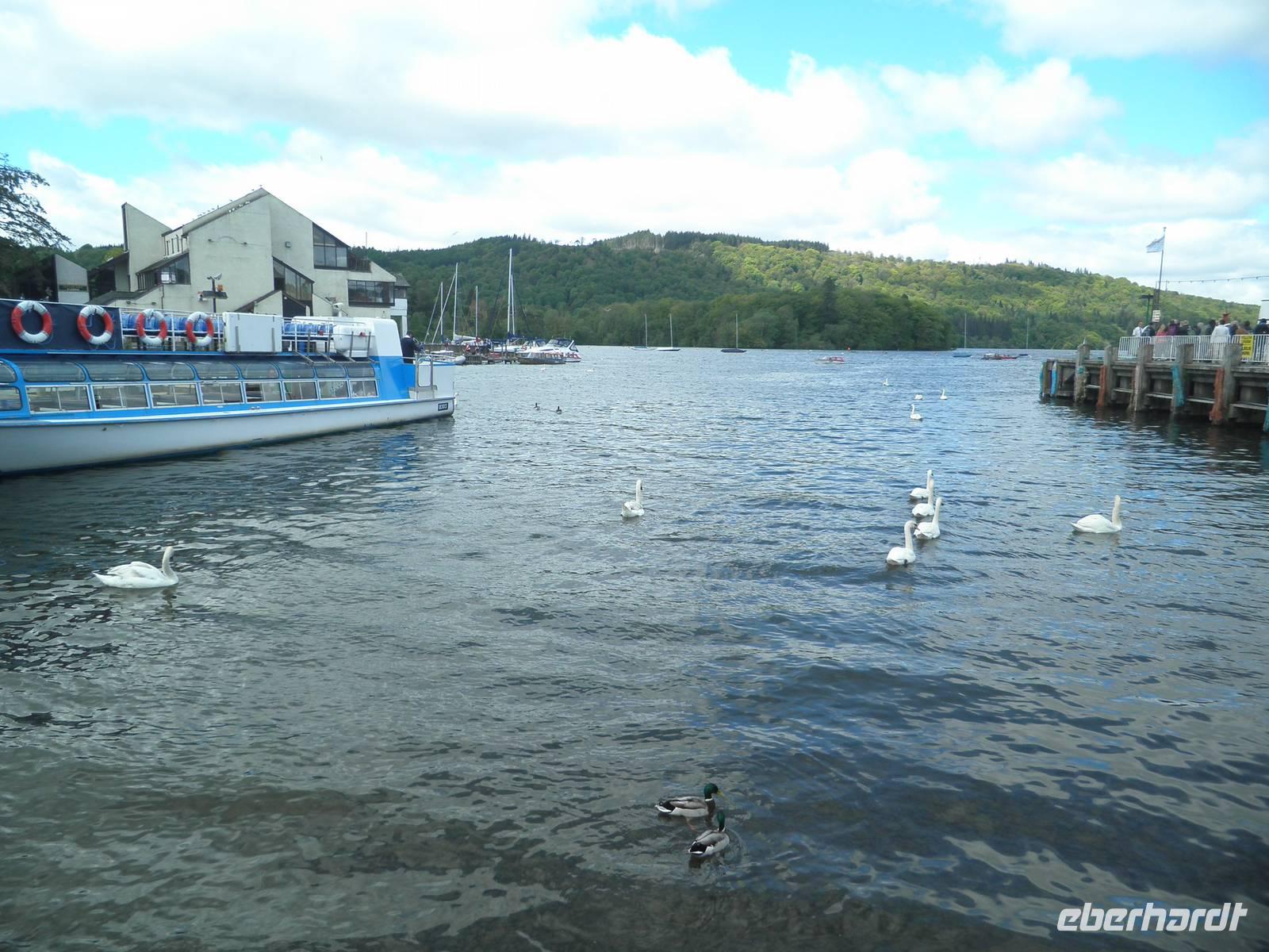 An diesem Morgen fuhren wir in Richtung Lake Distrikt. Am Lake Windermere bestiegen wir ein Ausflugsschiff und schipperten gemütlich über den See bis Bowness. Das Wetter ließ es zu, dass wir auch auf Deck sitzen und die herrlichen grünen Hügel um den See bewundern konnten.