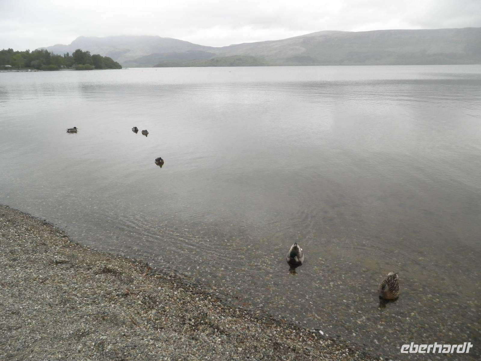 Nachdem wir Glasgow am Morgen verlassen hatten, tauchten wir ein in die Seenlandschaft der Lochs in Schottland. Loch Lomond war der erste der großen Seen, an dem wir entlang fuhren. Wir spazierten in Luss zum Ufer des Sees und genossen die morgendliche Atmosphäre, genau so wie einige Wildenten. Auf unserem weiteren Weg begegneten uns nicht nur unzählige Schafe, auch herrliche Berge und grüne Täler. Durch das Tal des Coe - Glen Coe, das durch ein Massaker am McDonald-Clan zu trauriger Berühmtheit gelangt ist - erreichten wir Fort Williams und später Fort Augustus, wo beeindruckende Schleusen des Caledionan Canals zu sehen sind.
