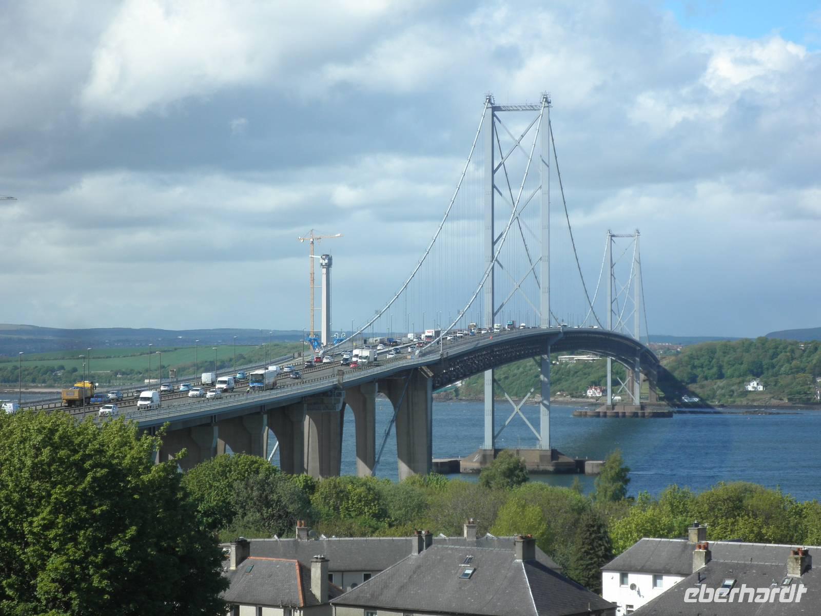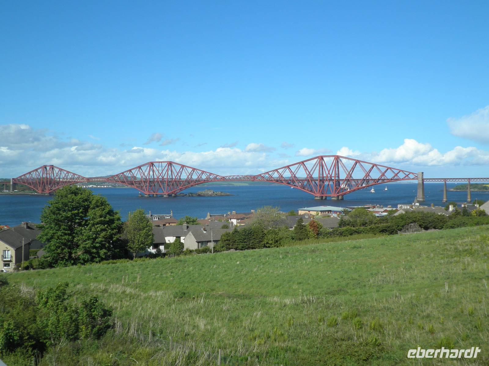 Am Morgen besuchten wir die Schaffarm von Neil Ross in Kincraig und beobachteten seine Hütehunde bei der Arbeit mit den Schafen. Wir durften Lämmer füttern und junge Hunde gab es auch. Danach fuhren wir zur Whisky-Brennerei Blair Athol in Pitlochry. Ein deutsch sprechender Mitarbeiter führte uns durch den Betrieb und erklärte uns die Herstellung des typischen hochprozentigen Getränks. 12 Jahre alter Whisky aus dem Sherry-Fass konnte verkostet werden. Am Ende des Rundgangs gab es Gelegenheit, verschiedene Whiskysorten im Shop der Brennerei zu erstehen. Danach fuhren wir ins schöne Städtchen Pitlochry, wo neben schottischen Geschäften auch eine Lachstreppe und eine Staumauer zu entdecken sind. Bevor wir schließlich nach Edinburgh zu unserem Hotel in der Stadt fuhren, überquerten wir zur Freude aller Gäste noch die Straßenbrücke, eine Hängebrücke, über den Firth of Forth, um die rot angestrichene Eisenbahnbrücke gleich daneben zu bewundern. Ein kurzer Fotostopp in Sichtweite beider Brücken über den Firth ermöglichte uns herrliche Fotos beider Bauwerke.