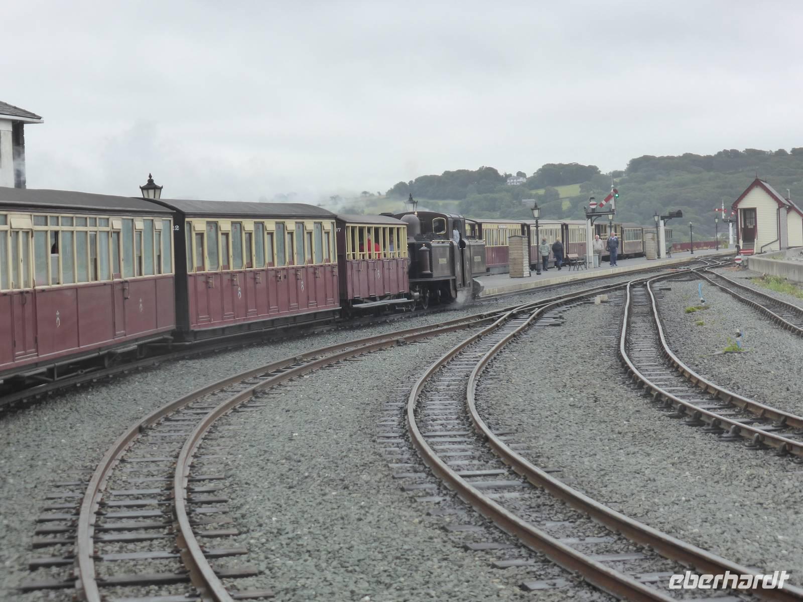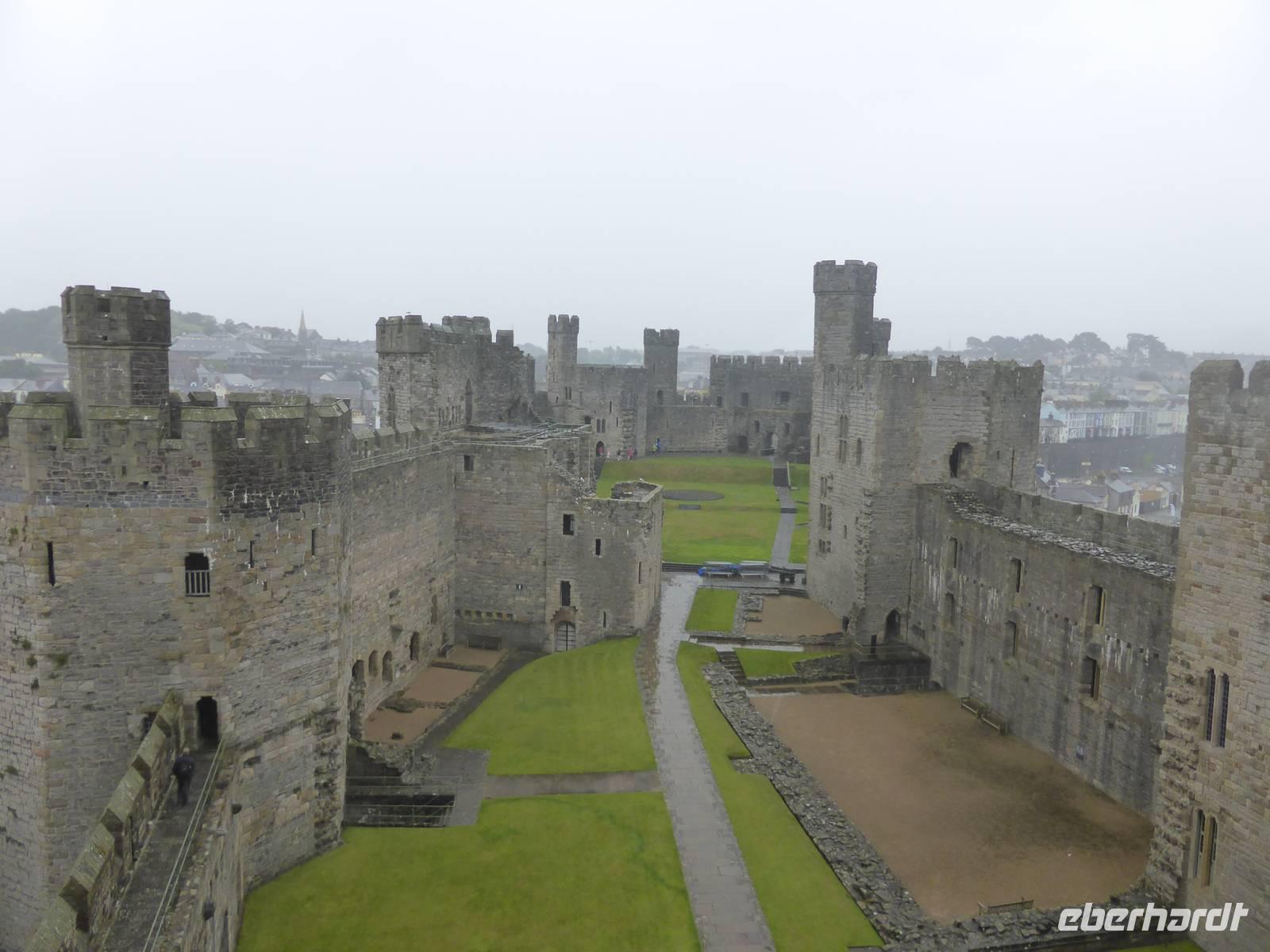 Unser nächstes Ziel war Caernarfon. Die von Türmen bekrönte Burg liegt strategisch günstig an der Menai Strait, der Meerenge zur Insel Anglesey. Bereits die Römer errichteten hier ein Lager, die Normannen erbauen ein hölzernes Fort und unter Eduard I. entstand der heute noch bestehende Bau. Hier wurde 1284 der erste Prinz von Wales, Edward of Caernarfon, der spätere Eduard II. geboren. Seit 1301 wird dem ältesten Sohn des britischen Monarchen der Titel Prinz of Wales verliehen. Über die Investitur von Prinz Charles zum Prince of Wales 1969 informierte uns eine Ausstellung im Adlerturm. Von diesem genossen wir auch eine phantastische Aussicht auf die gesamte Burganlage, Stadtmauer sowie die Küste. Im Anschluss fuhren wir nach Porthmadog. Mit der Ffestiniog Railway, einer 1836 in Betrieb genommenen Eisenbahn, mit der einst der Schiefer vom Steinbruch zur Küste transportiert wurde, fuhren wir nach Blaenau Ffestiniog. Wir genossen einen schönen Blick auf den Mount Snowdon, zahlreiche Seen und herrliche Wälder. Unseren letzten Stopp legten wir im Conwy ein. Wir bummelten zum schmalsten Haus Großbritanniens und bewunderten das Meisterwerk mittelalterlicher Festungsarchitektur von Conwy Castle. Mit diesen zahlreichen Eindrücken von den landschaftlichen Schönheiten des Snowdonia Nationalparkes kehrten wir nach England zurück.