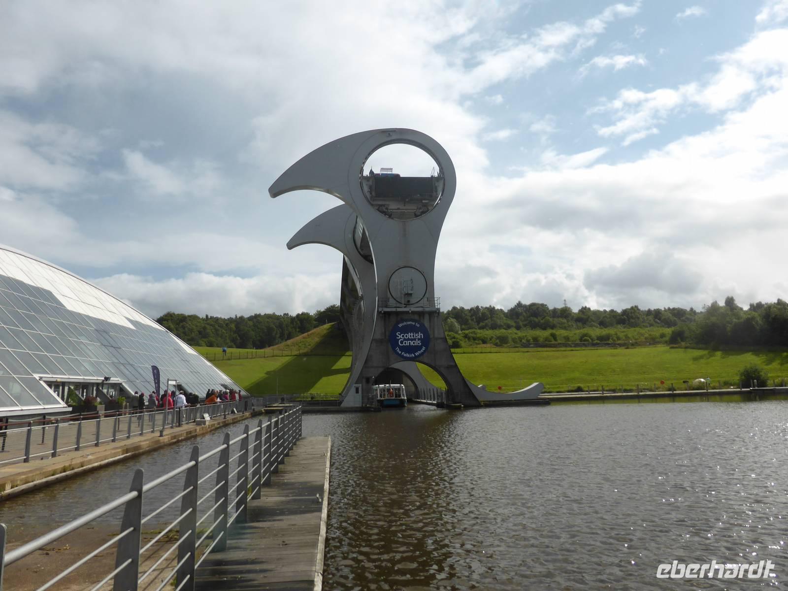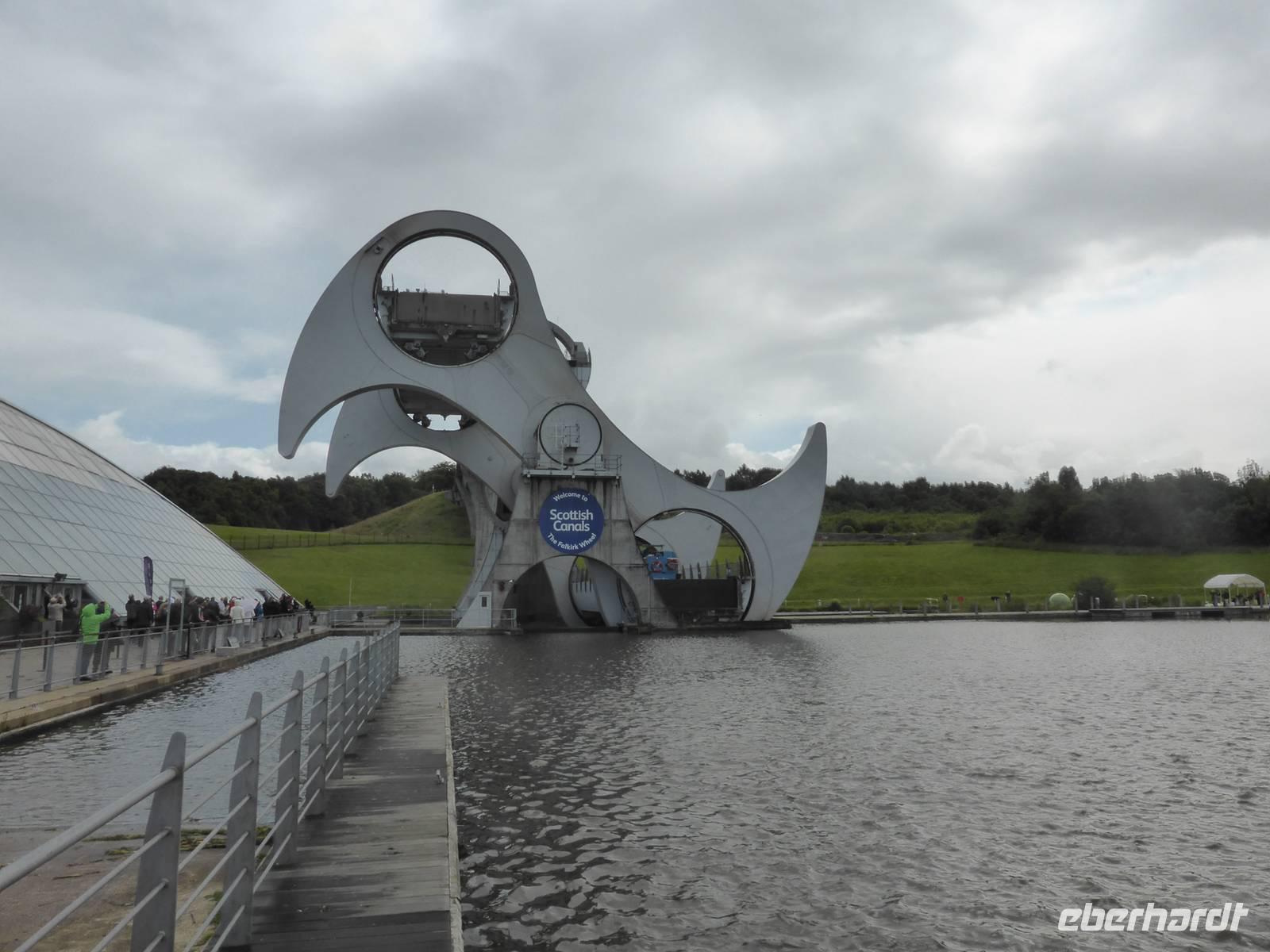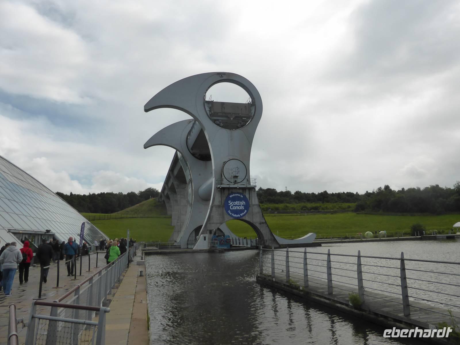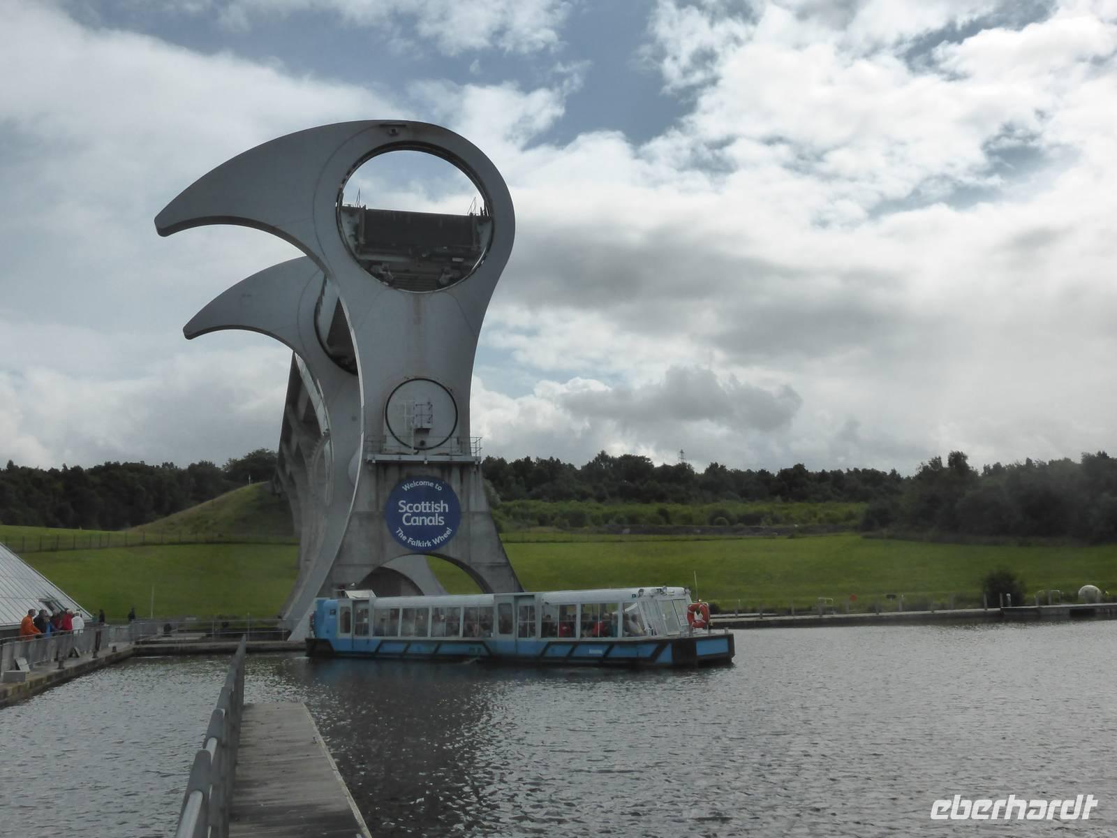 An Perth vorbei erreichten wir die Region um Stirling. Auf einem Vulkanfelsen hoch über der Stadt thront die mächtige und heftig umkämpfte Burg von Stirling. Auch das weithin sichtbare Nationaldenkmal von William Wallace errinert an den schottischen Kampf gegen die englische Vorherrschaft. Unser Ziel war allerdings das einzig rotierende Schiffshebewerk in Falkirk. Und wir hatten Glück und konnten es sogar zweimal in Aktion erleben. Von diesem kleinen „technischen" Abstecher waren alle begeistert.