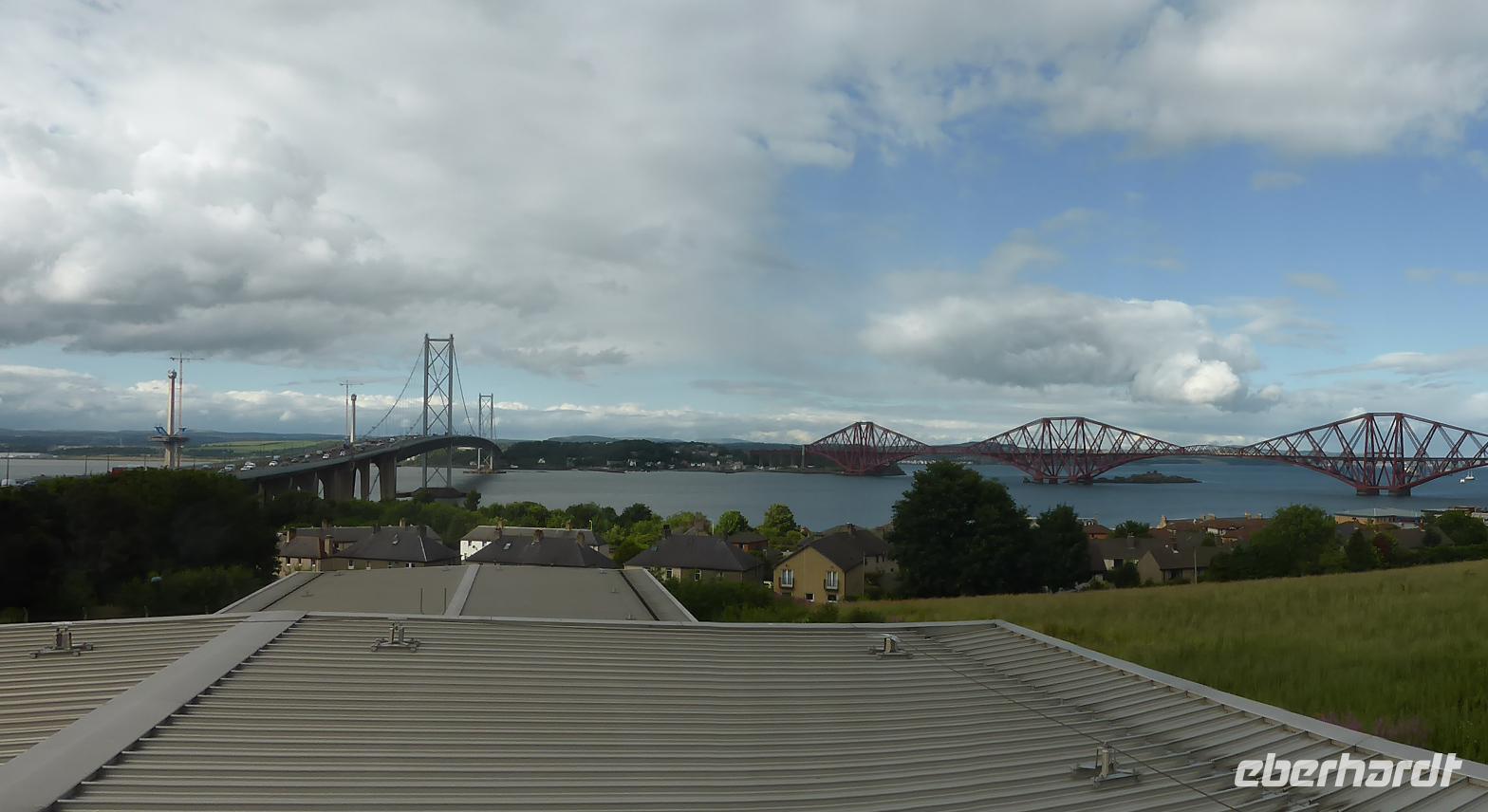 Im Anschluss führen wir über die Firth of Forth Bridges. Von einem Aussichtspunkt konnten wir die alte Eisenbahnbrücke von 1890, die elegante Straßenbrücke von 1964 sowie die Bauarbeiten für die neue Straßenbrücke bewundern. Im Anschluss erreichten wir unser Domizil im Zentrum von Edinburgh, das Ten Hill Place Hotel.