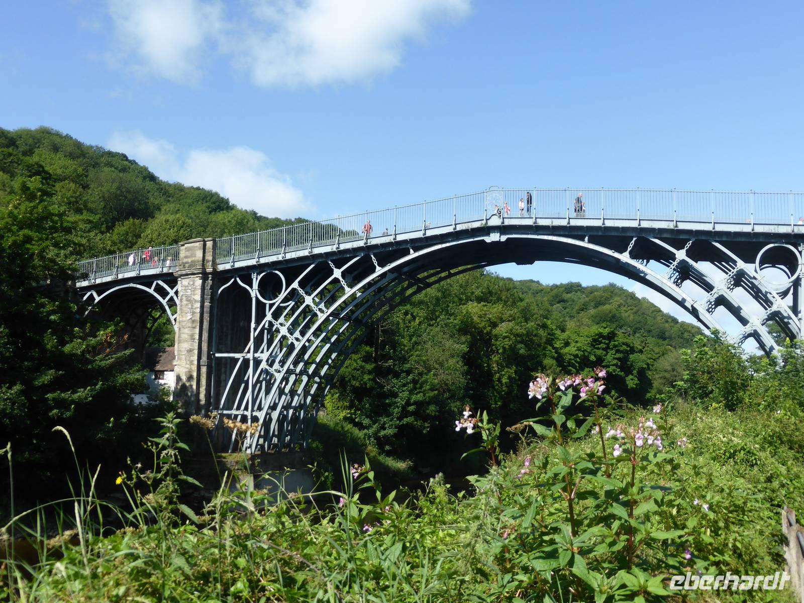 Wir bummelten über die erste Eisenbrücke der Welt. Dank der fünf Rundbögen ist sie ein sehr elegantes, leicht wirkendes Bauwerk, das den Severn in 30.60 m Spannweite überspannt.