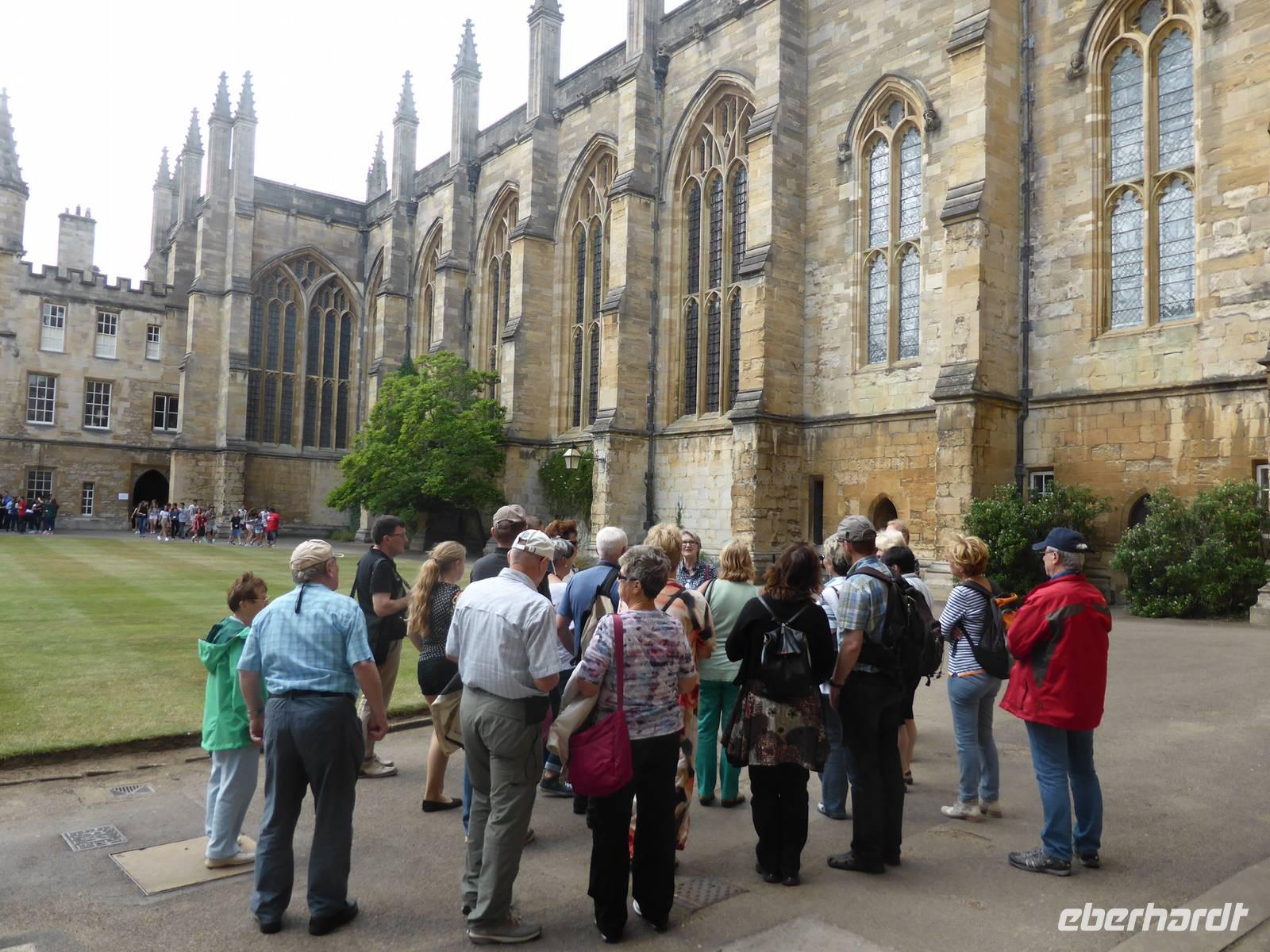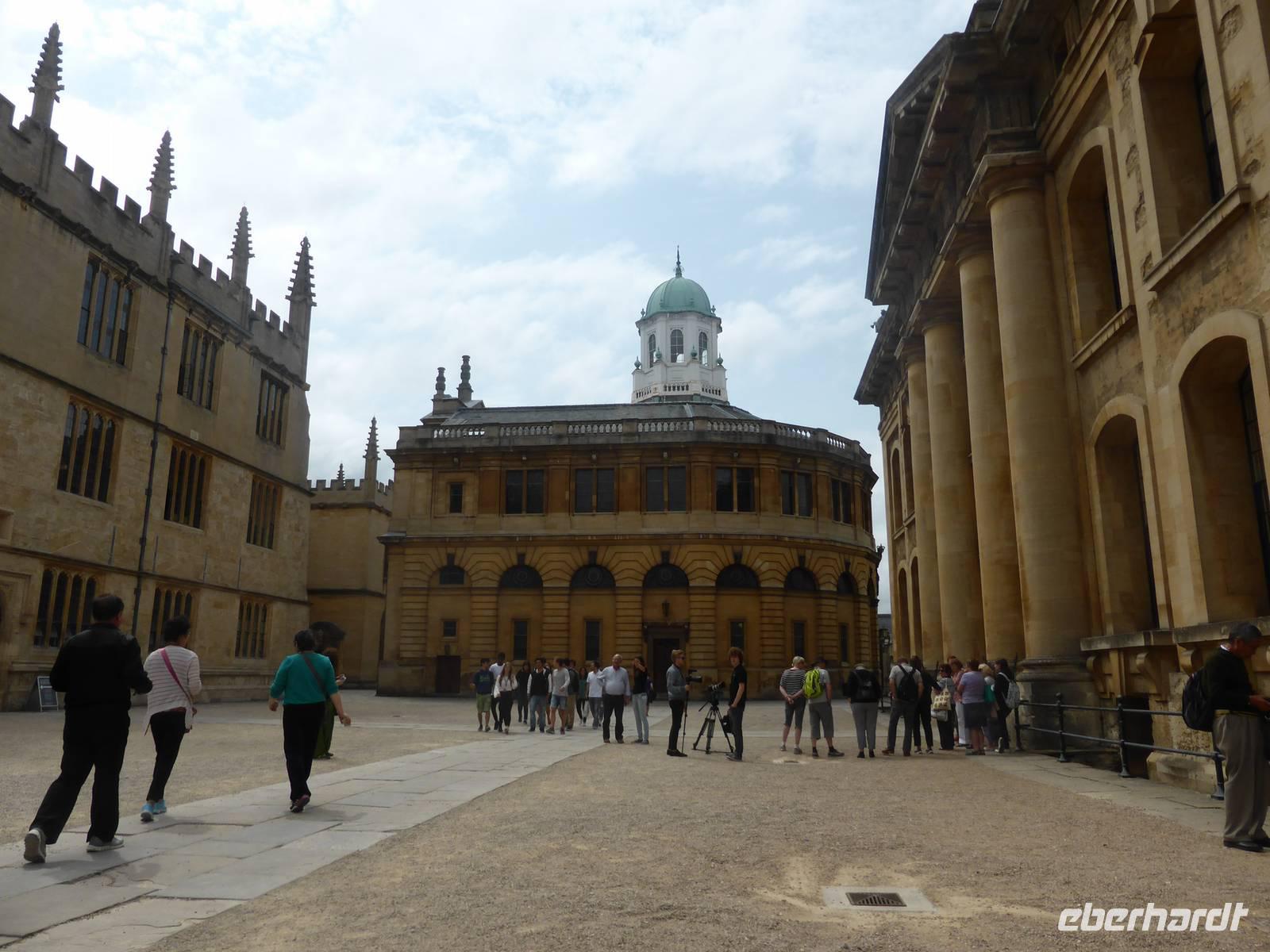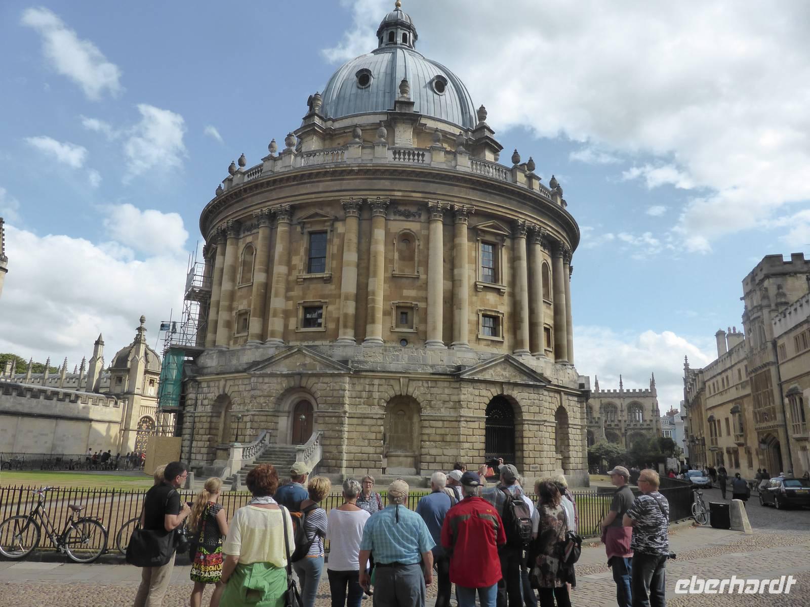 Am Nachmittag führte uns unsere Weiterreise in eine der ältesten und berühmtesten Universitätsstädte Oxford. Wir wurden von Jane unserer charmanten Stadtführerinnen Jane begrüßt und lauschten ihren spannenden Ausführungen. Zuerst sahen wir das Sheldonian Theatre, welches als Festsaal bei der Verleihung von akademischen Graden dient. Natürlich besuchten wir auch eines der zahlreichen Colleges. Das festungsartig aussehende New College ist entgegen seinem Namen eines der ältesten und wurde 1379 vom Bischof von Winchester gegründet. Der Große Hof ist der Inbegriff von englischem Perpendicular Style und die Hall die älteste in Oxford. Im Garten konnten wir die schönsten Überreste der Oxforder Stadtmauer bewundern. In der Bodleian Bibliothek erhält ein Exemplar von jedem, in Großbritannien gedruckten Buch. Vorbei am Rundbau der Radcliffe Camera, einem Lesesaal der Bodleian Bibliothek erreichten wir die turbulente überdachte viktorianische Markthalle sowie die Fußgängerzone. Nach einer kurzen Zeit zur freien Verfügung setzten wir unsere Reise nach Coventry ins Ramada Suite & Resort Hotel fort. Dieses Hotel sollte für die kommenden zwei Nächte unser Domizil sein.