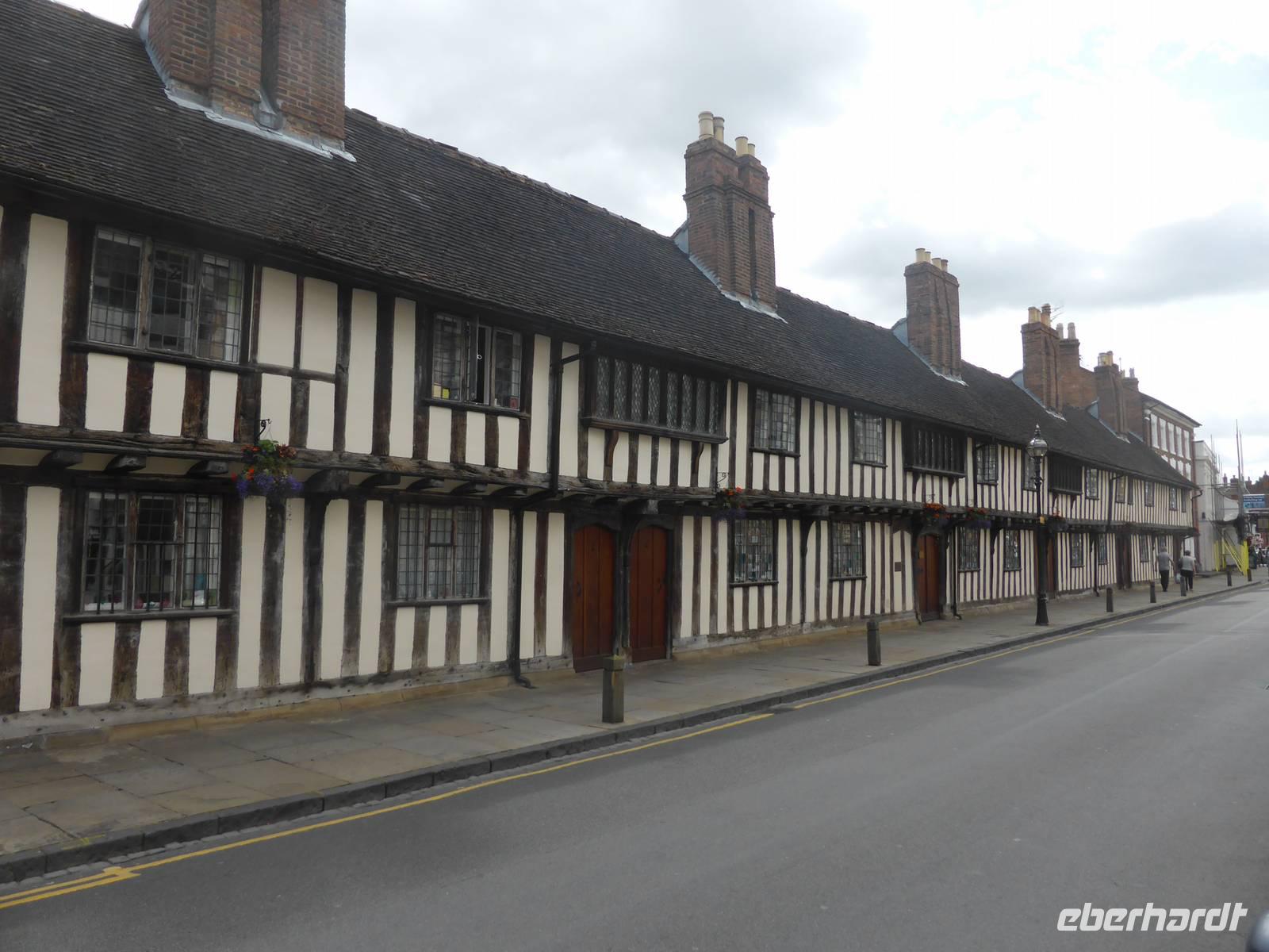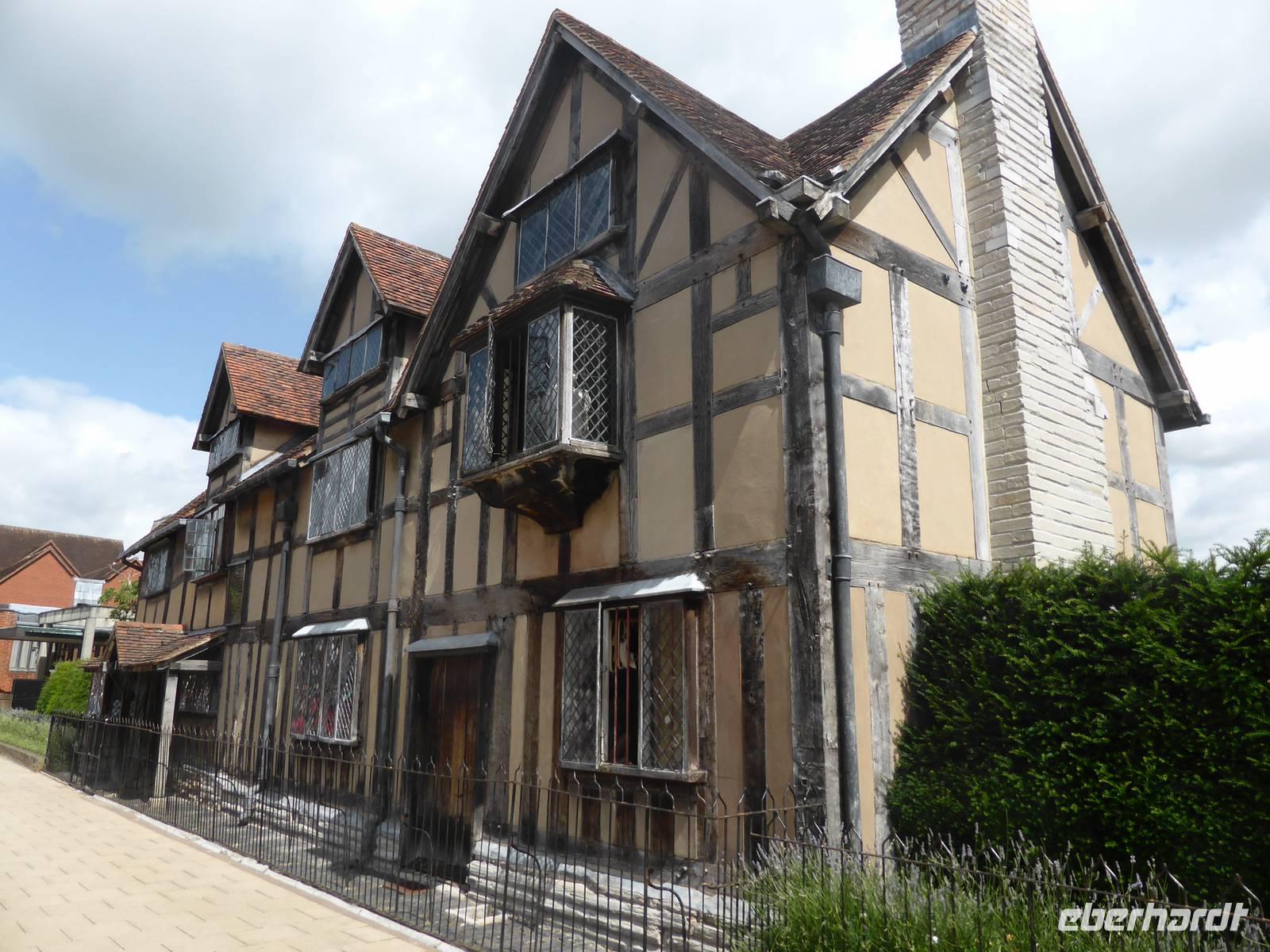Unser kleiner Altstadtrundgang begann am Royal Shakespeare Theatre und führte uns entlang des Avon zur Holy Trinity Church mit dem Grab von Shakespeare, welches wir natürlich besichtigten. Anschließend ging es vorbei an Hall House, den Almshouses, Nash House sowie dem Haus des Gründers der berühmten Havard Universität John Harvard. Vorbei an zahlreichen Fachwerkbauten und einigen Passagen erreichten wir das Geburtshaus von William Shakespeare in der Henley Street.