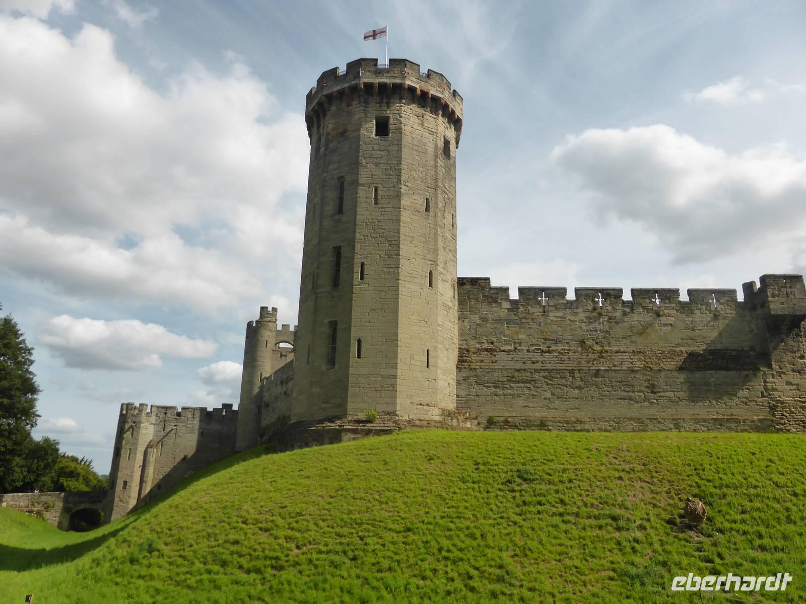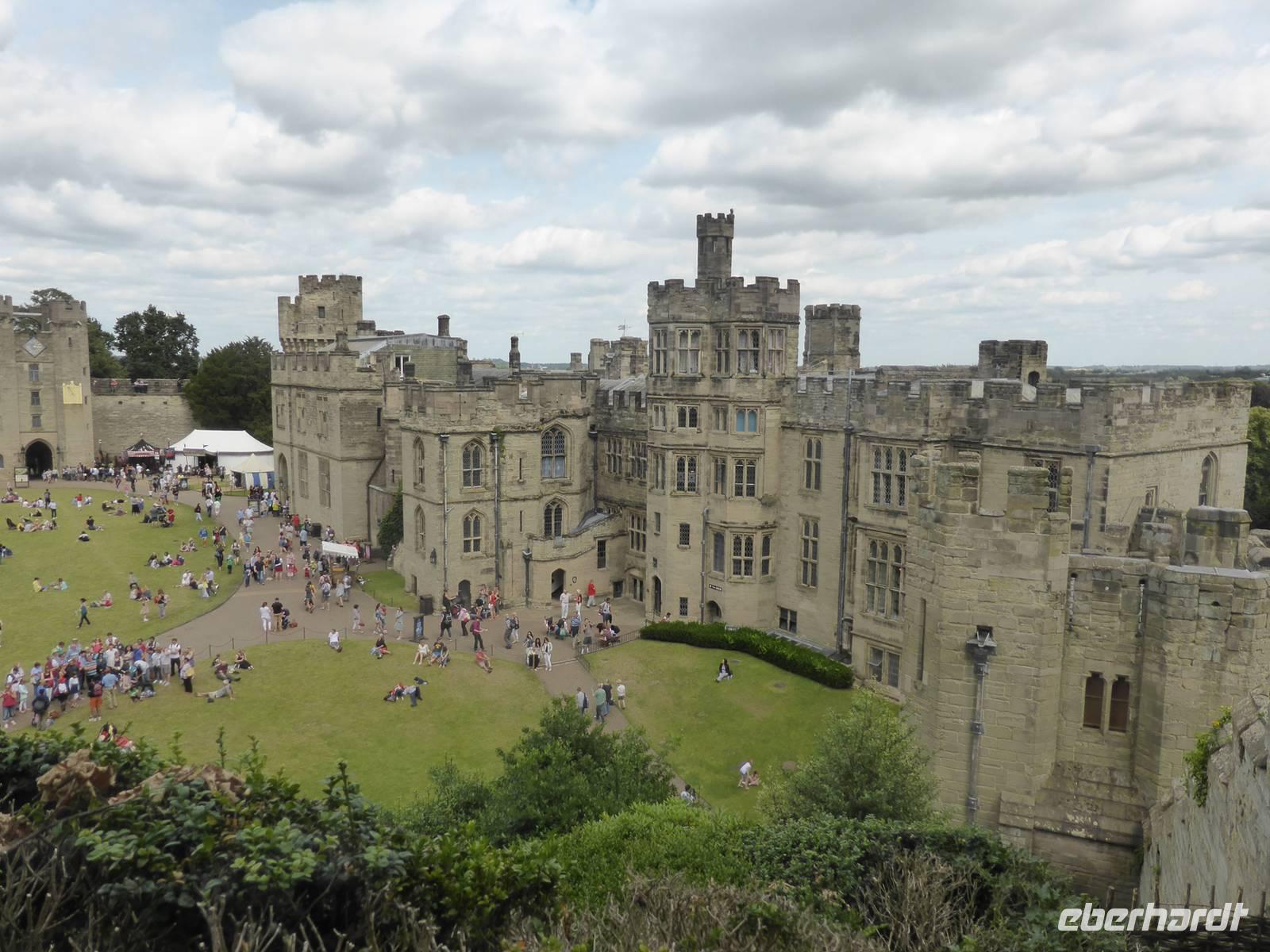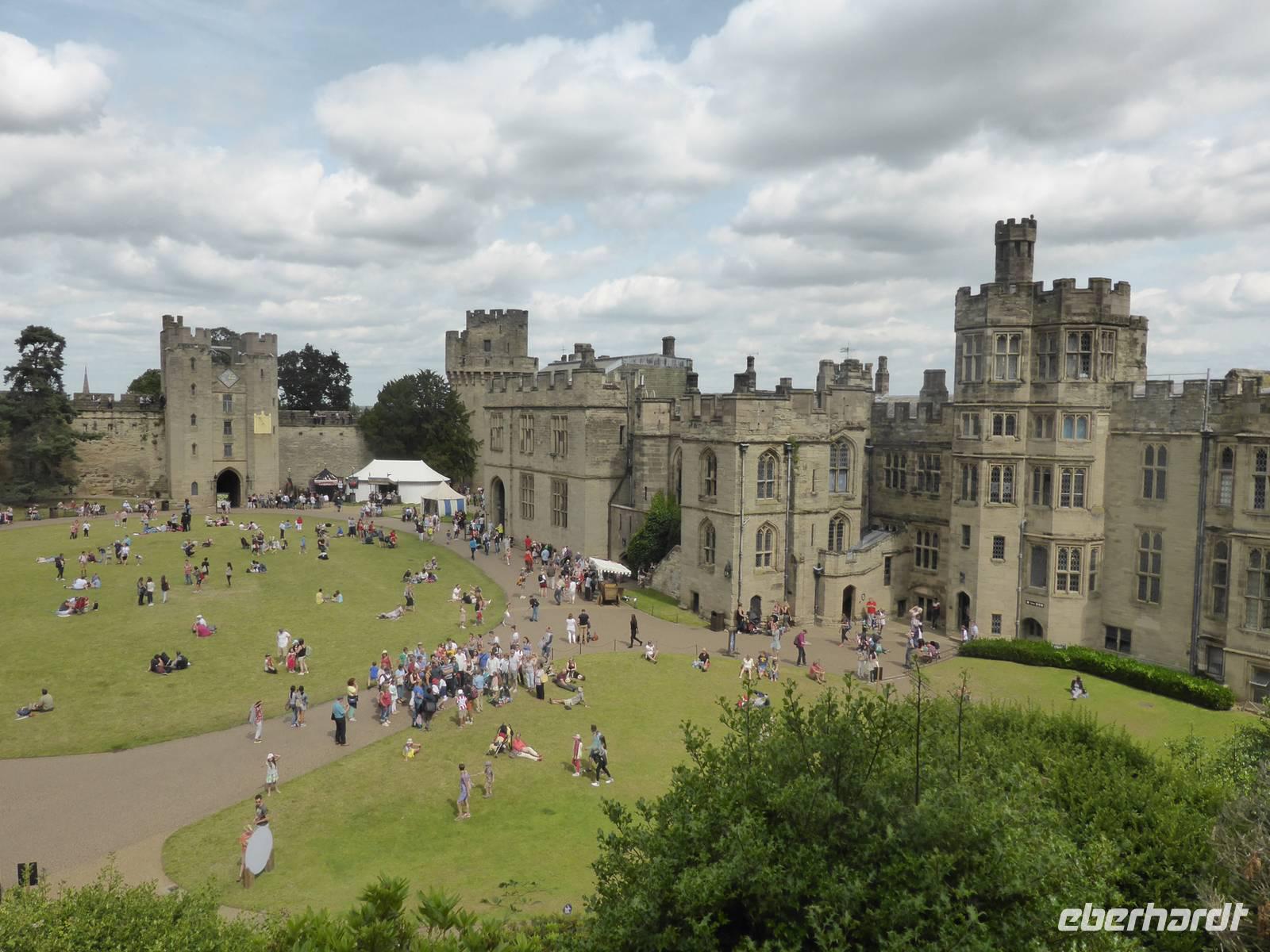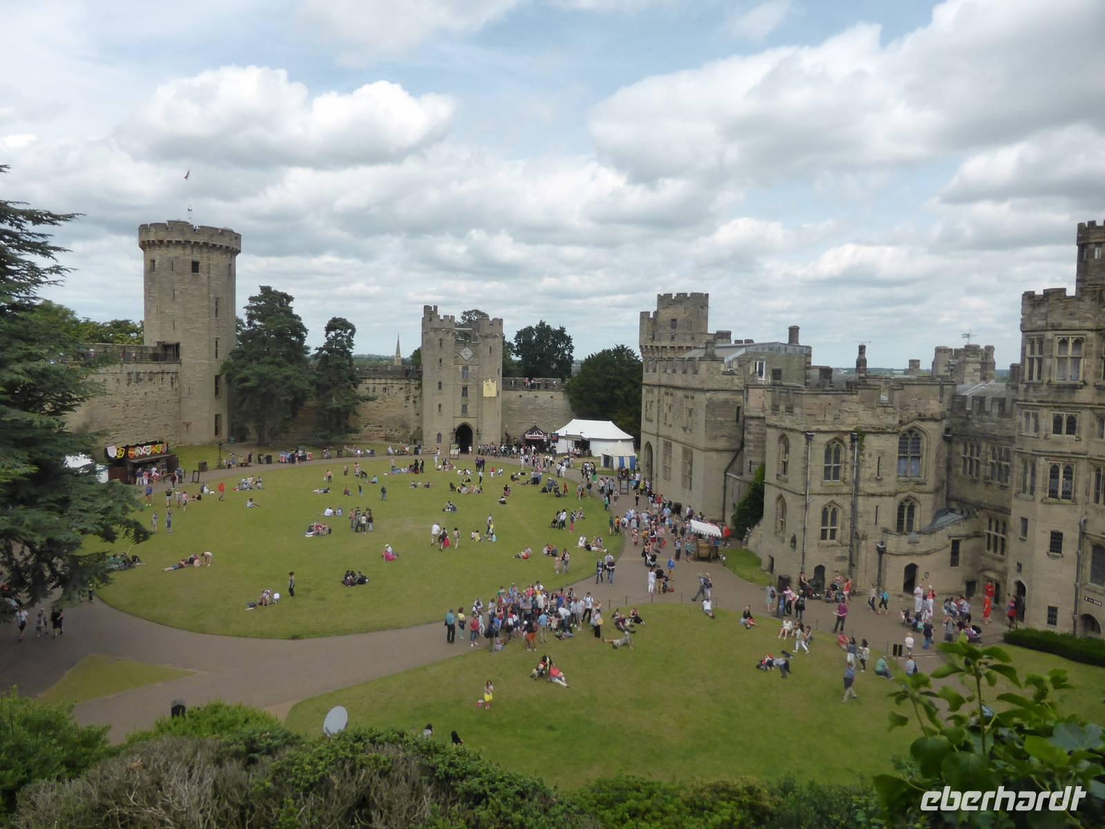 Am Nachmittag besuchten wir die gewaltige, zinnengekrönte Burg der Grafen von Warwick. Durch die großzügige Parkanlage mit dem Pfauengehege sowie dem Rosengarten erreichten wir den Innenhof der Burganlage. Entzückt waren wir von der Wachsfigurenausstellung „A Royal Weekend Party 1898" von Madame Tussaud. Bei dieser gelungenen Inszenierung der Lebensweise des Hochadels fühlte man sich in die damalige Zeit zurück versetzt. Aber auch die prachtvolle Sammlung von Möbeln, Porzellan. Gemälden und Waffen war sehr beeindruckend. Bei sonnigem Wetter tummelten sich zahlreiche Familien im Gelände und genossen die mittelalterliche Atmosphäre.