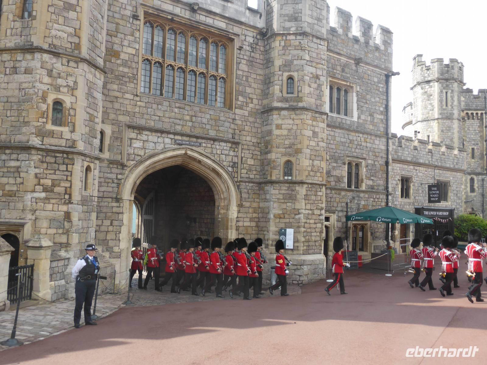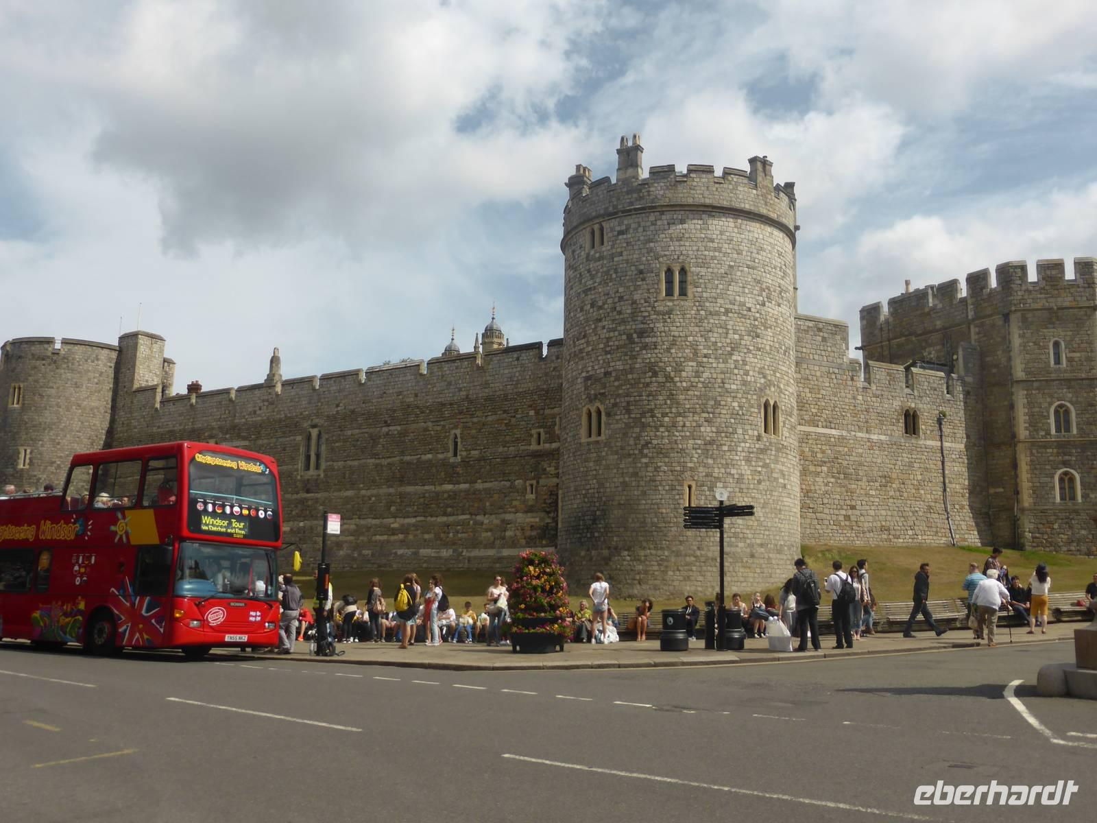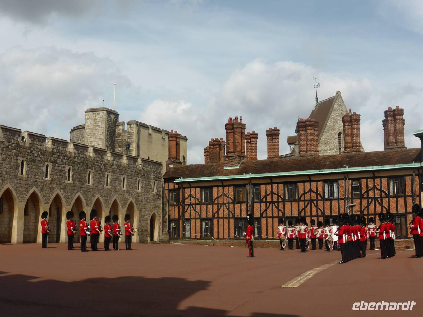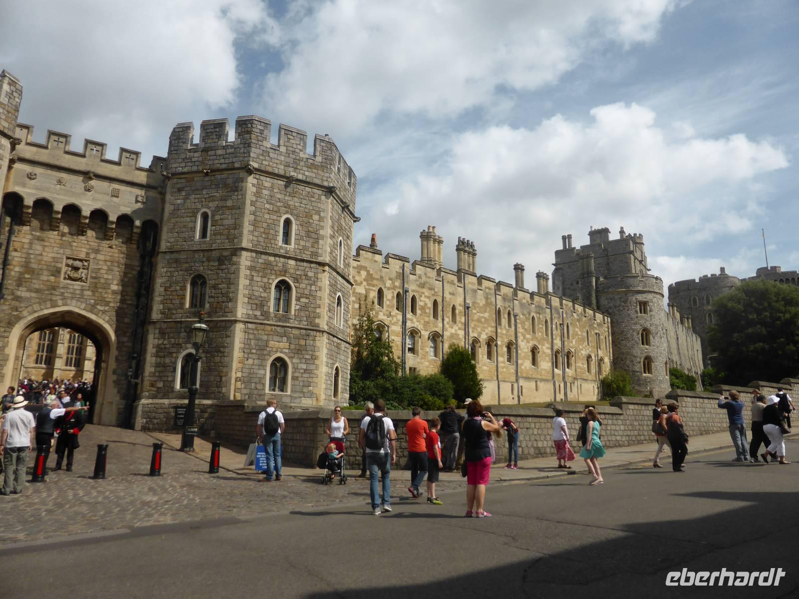 Nach dem reichhaltigen Frühstücksbuffet starteten wir zu unserem ersten Ziel Windsor. Das Städtchen am Südufer der Themse wird beherrscht von dem Schloss, seit über 900 Jahren Sommerresidenz der Königlichen Familie. Windsor Castle gilt als eine der schönsten Residenzen der Welt und als größte noch bewohnte Burg. Während unserer Besichtigung bewunderten wir das Puppenhaus der Königin, ein Meisterwerk der Handwerkskunst sowie die mächtigen Mauern der Burganlage. Die Staatsgemächer blieben am heutigen Tag leider geschlossen. Die Queen war zwar im Schloss ließ sich aber nicht blicken. Die Zeremonie der Wachablösung ließen wir uns natürlich auch nicht entgehen. Der Ort Windsor zeigt mit seinen Fachwerkhäuser sowie verwinkelten Gassen noch immer ein malerisches mittelalterliches Bild.