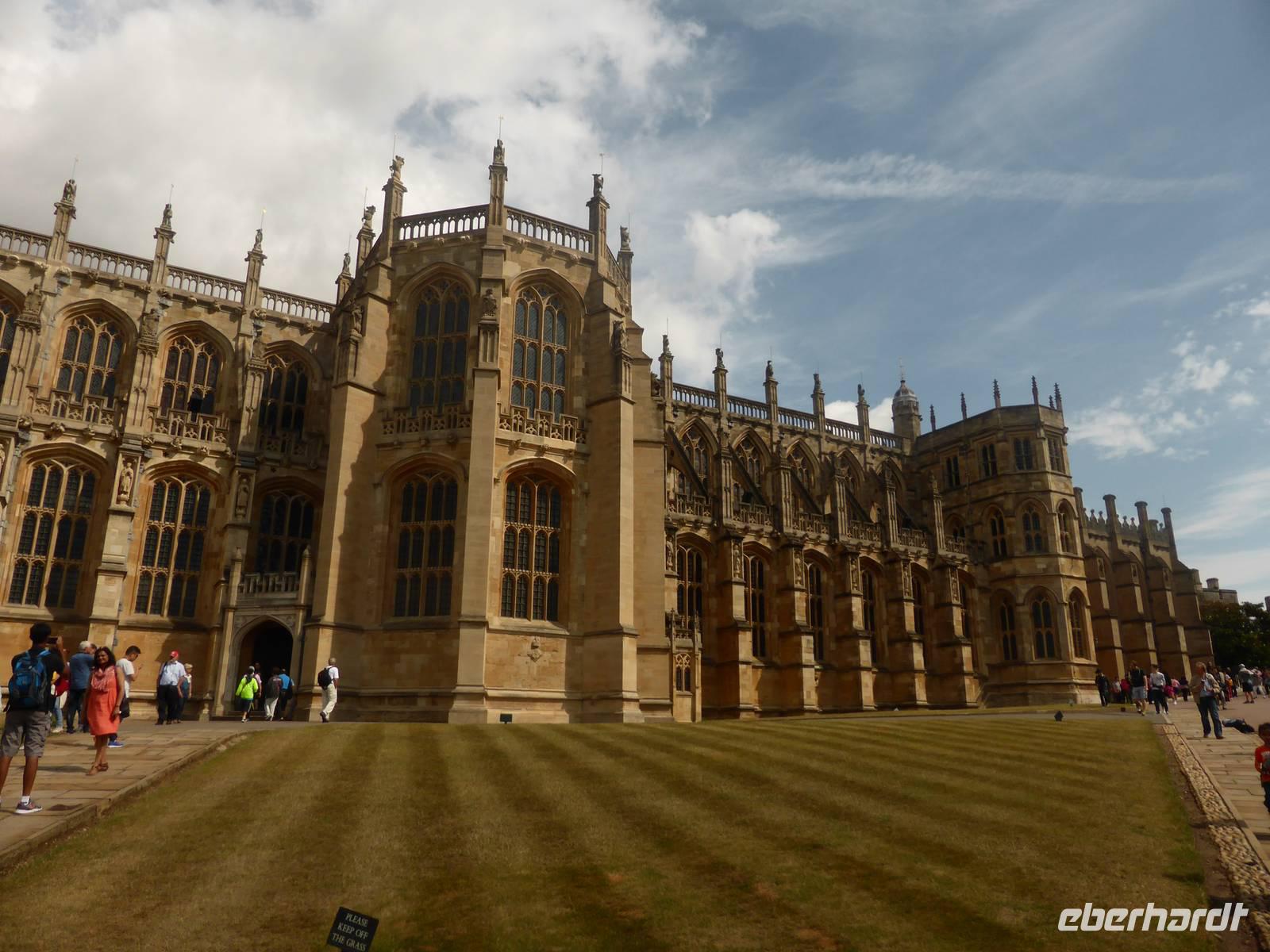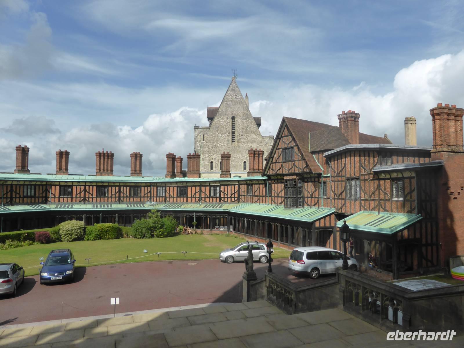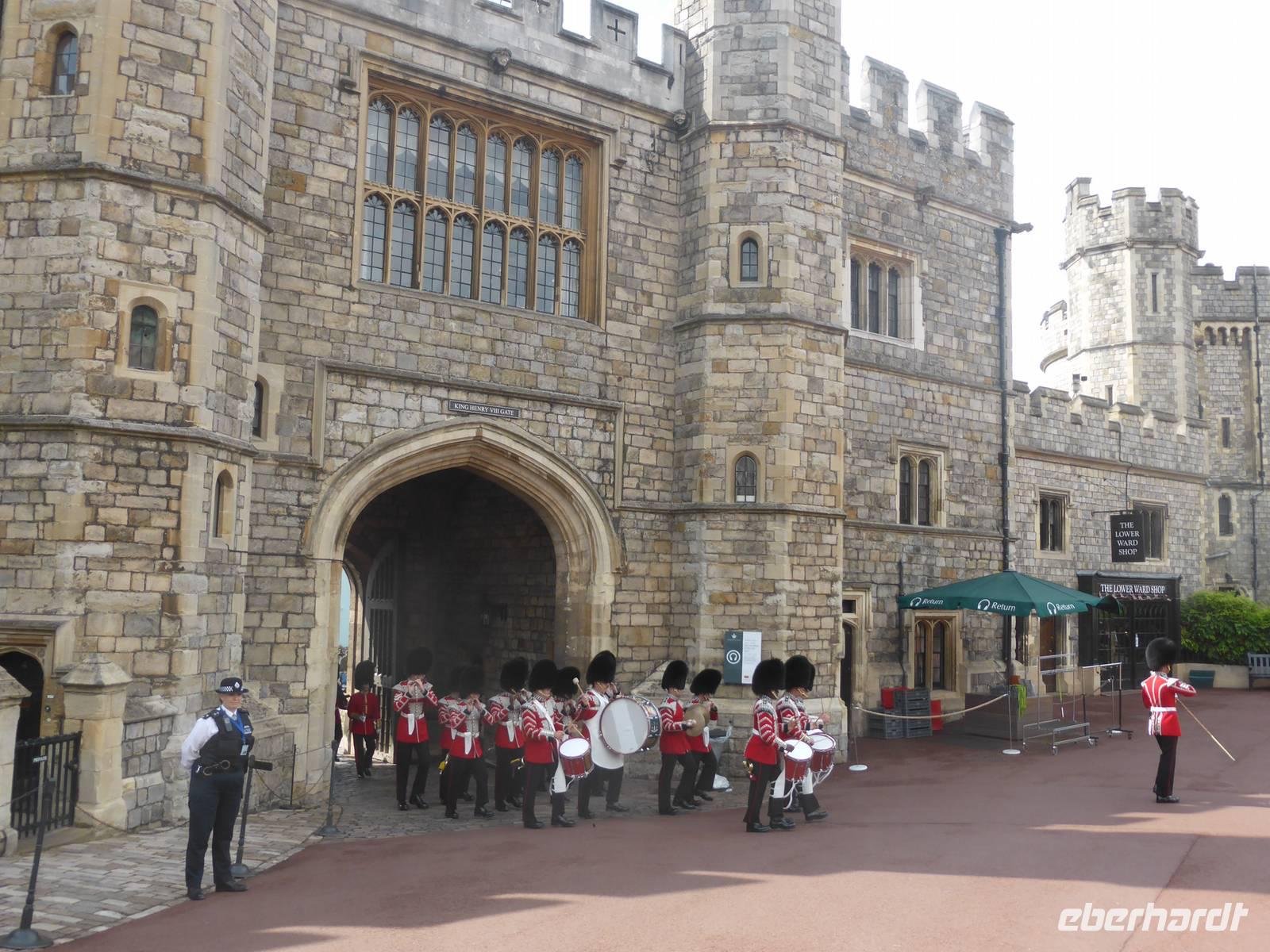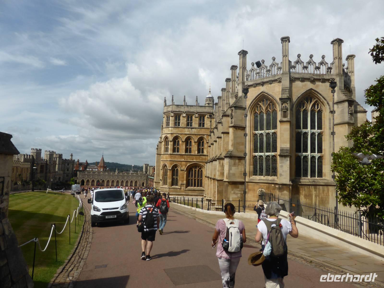 Nach dem reichhaltigen Frühstücksbuffet starteten wir zu unserem ersten Ziel Windsor. Das Städtchen am Südufer der Themse wird beherrscht von dem Schloss, seit über 900 Jahren Sommerresidenz der Königlichen Familie. Windsor Castle gilt als eine der schönsten Residenzen der Welt und als größte noch bewohnte Burg. Während unserer Besichtigung bewunderten wir das Puppenhaus der Königin, ein Meisterwerk der Handwerkskunst sowie die mächtigen Mauern der Burganlage. Die Staatsgemächer blieben am heutigen Tag leider geschlossen. Die Queen war zwar im Schloss ließ sich aber nicht blicken. Die Zeremonie der Wachablösung ließen wir uns natürlich auch nicht entgehen. Der Ort Windsor zeigt mit seinen Fachwerkhäuser sowie verwinkelten Gassen noch immer ein malerisches mittelalterliches Bild.