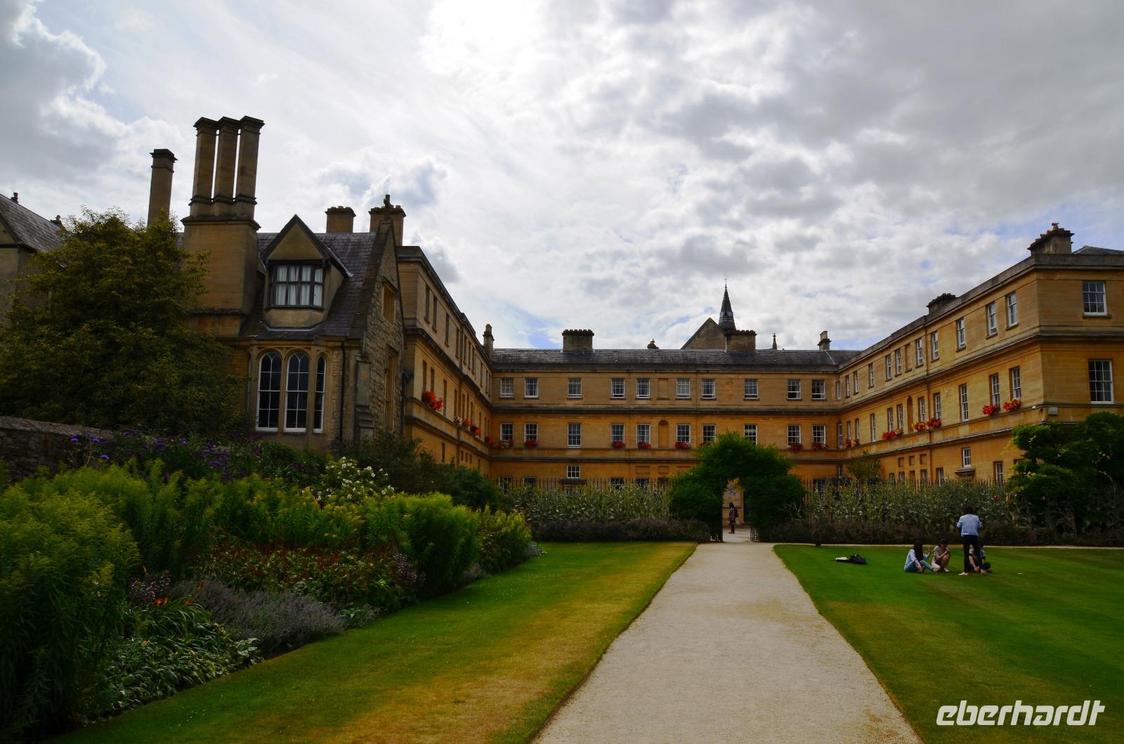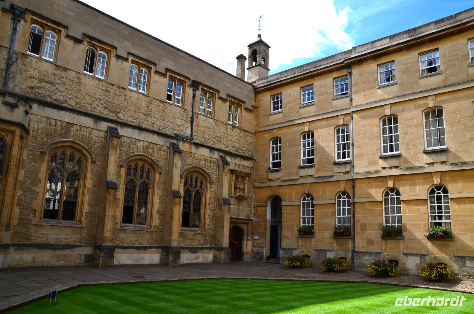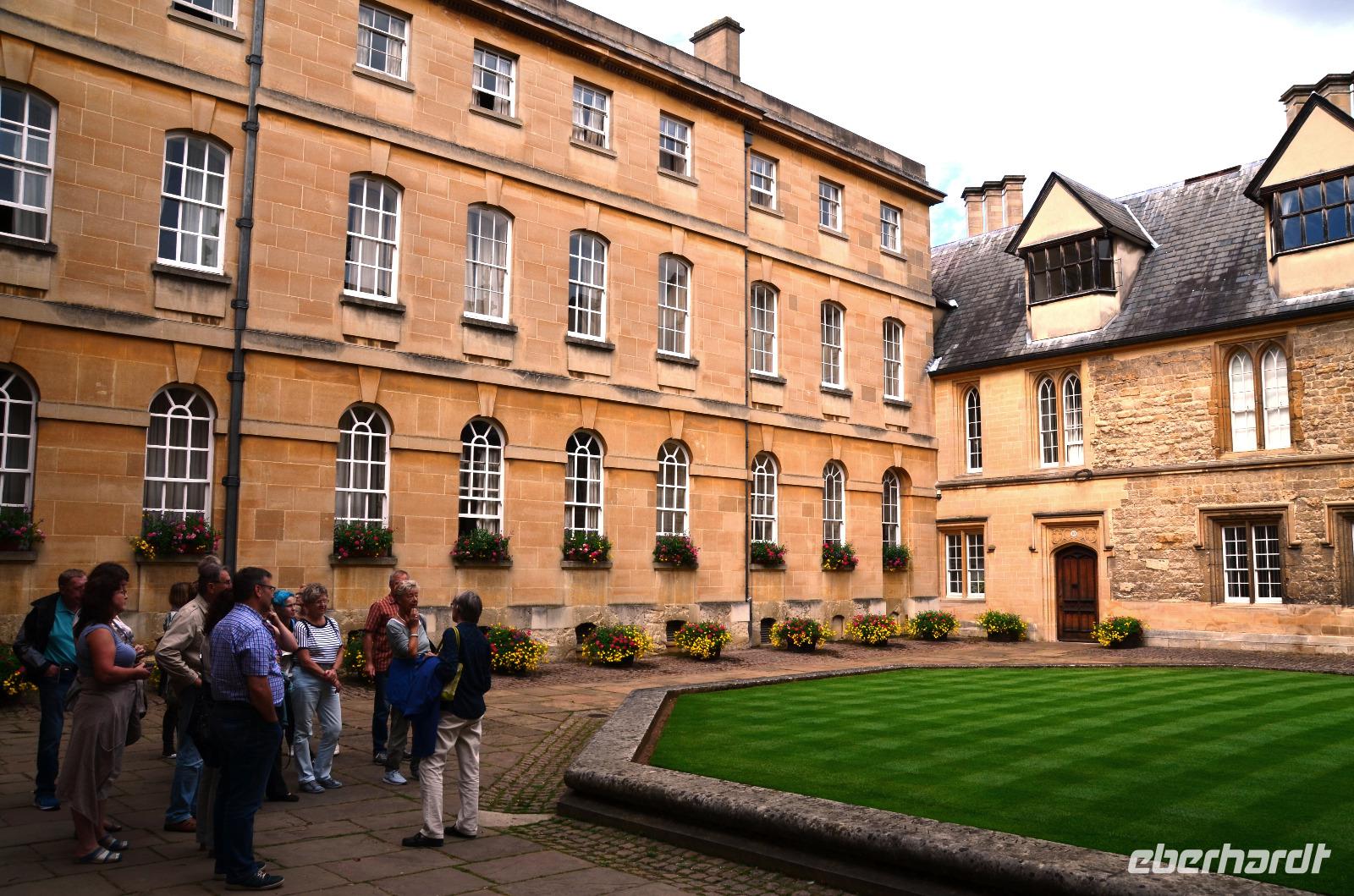 Nach dem Mittag dann die Weiterfahrt in die Universitätsstadt Oxford. Am Ashmolon-Museum warteten bereits unsere Gästeführerinnen Jane und Karin. Mit Ihnen spazierten wir durch die sehenswerte Stadt mit ihren Colleges und der Universität. Vorbei am Martyrs Memorial ging es zuerst zur Broad Street und zum Trinity College. Der Eintritt war es uns wert und so konnten wir diese Anlage des Colleges genau kennenlernen.