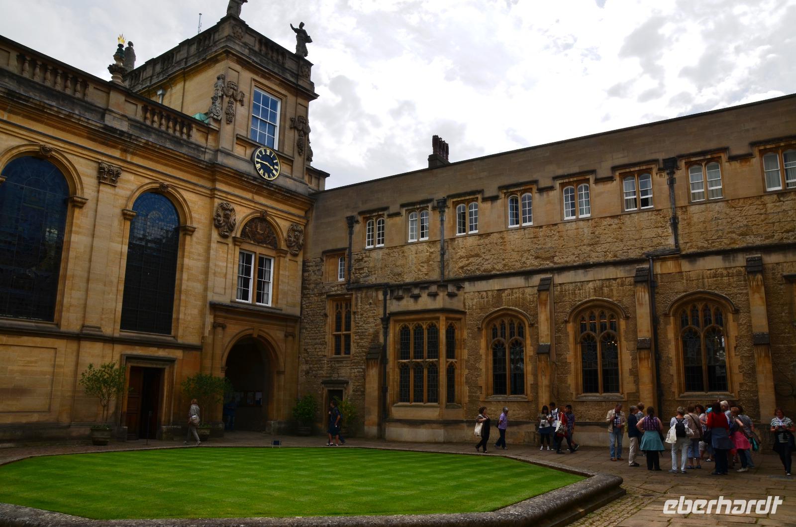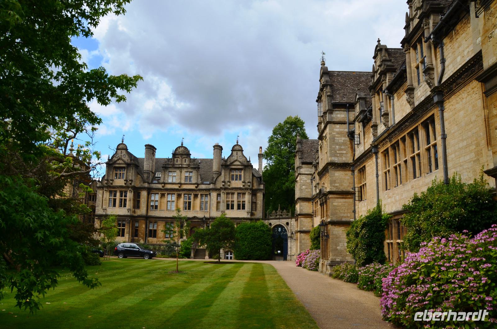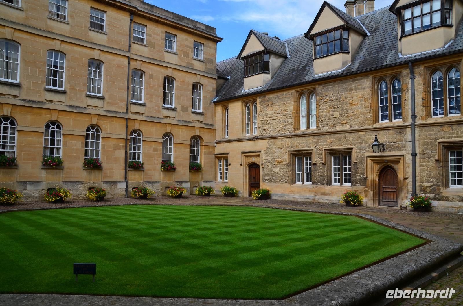 Nach dem Mittag dann die Weiterfahrt in die Universitätsstadt Oxford. Am Ashmolon-Museum warteten bereits unsere Gästeführerinnen Jane und Karin. Mit Ihnen spazierten wir durch die sehenswerte Stadt mit ihren Colleges und der Universität. Vorbei am Martyrs Memorial ging es zuerst zur Broad Street und zum Trinity College. Der Eintritt war es uns wert und so konnten wir diese Anlage des Colleges genau kennenlernen.