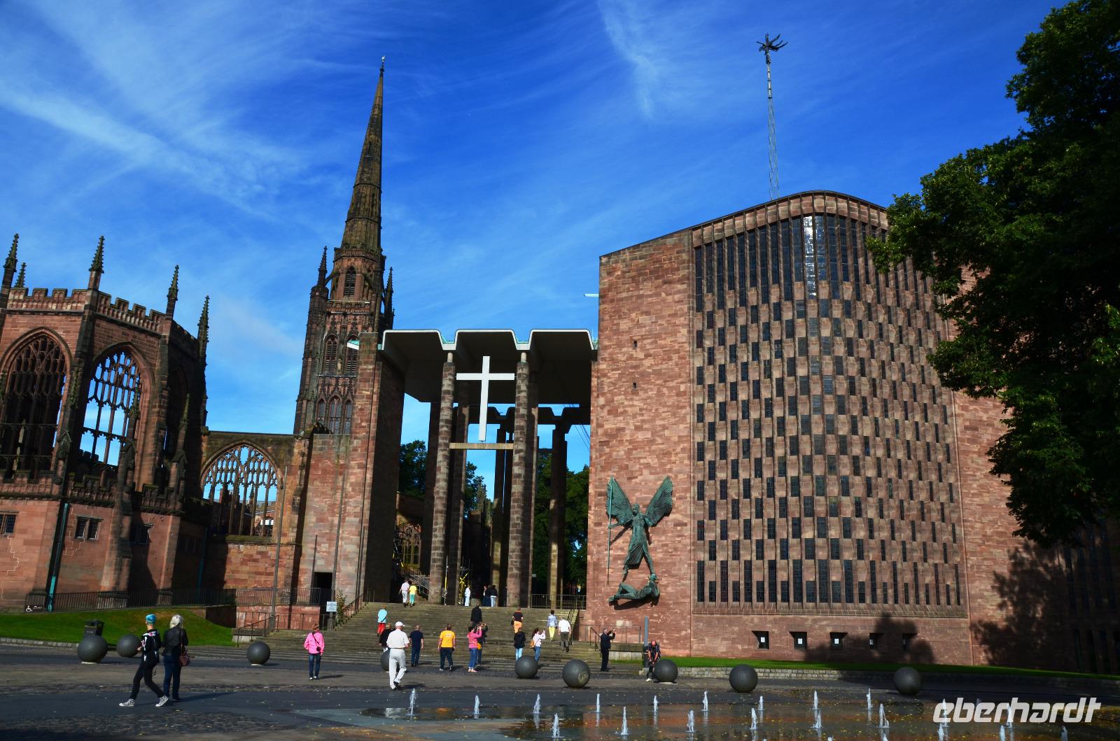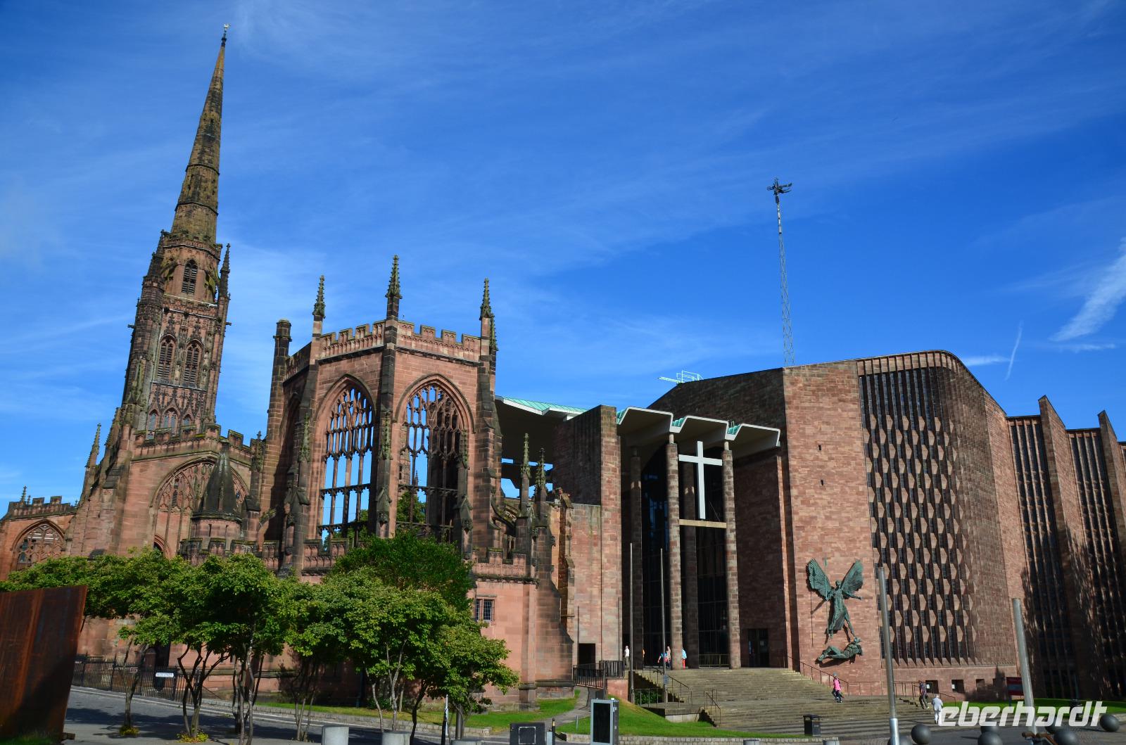 Wir fahren ins Stadtzentrum von Coventry, um die neue Cathedral mit der als Mahnmal erhaltenen Ruine der alten Kathedrale zu besichtigen. Nicht nur für die Dresdner Gäste ein besonderer Augenblick auf der Reise.