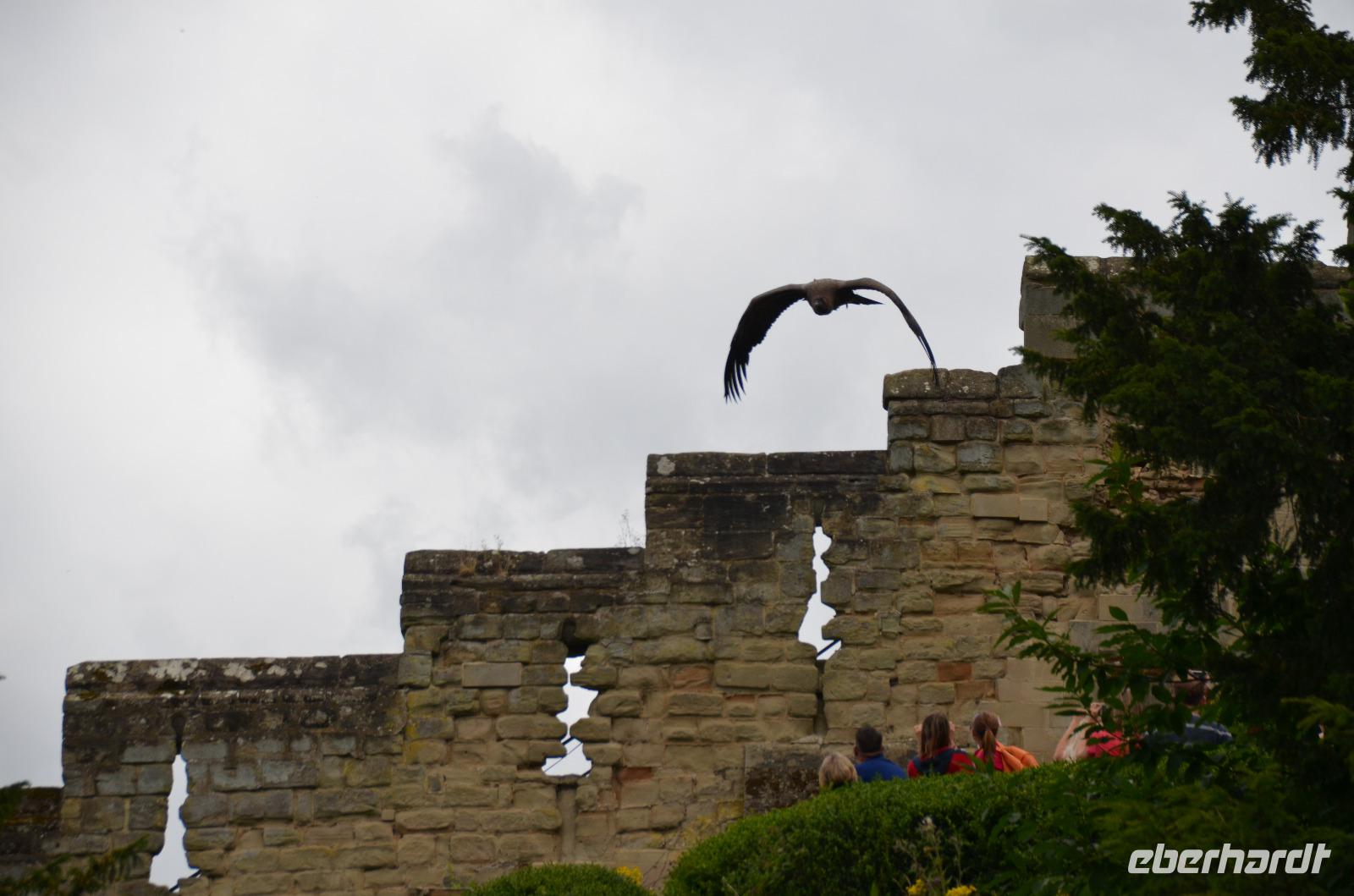 Schlossbesuch warteten hier zahlreiche Shows auf uns, 14:00 der Bogenschütze, 14:30 Uhr die Raubvogel-Show, 16:00 Uhr eine Rittershow am Fluss, 16:45 Uhr schließlich die Trebuchet-Show