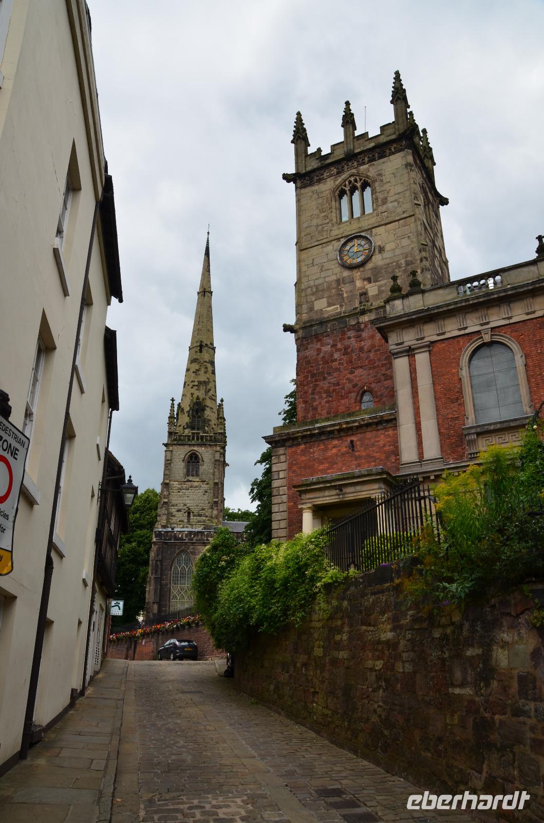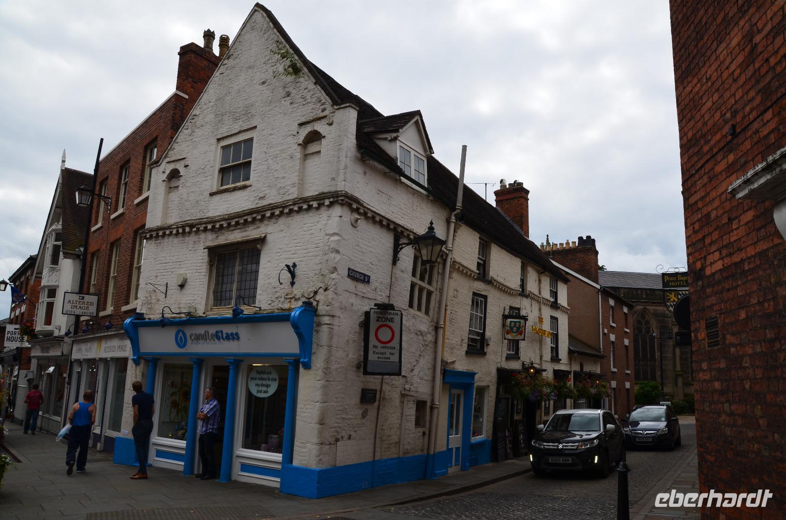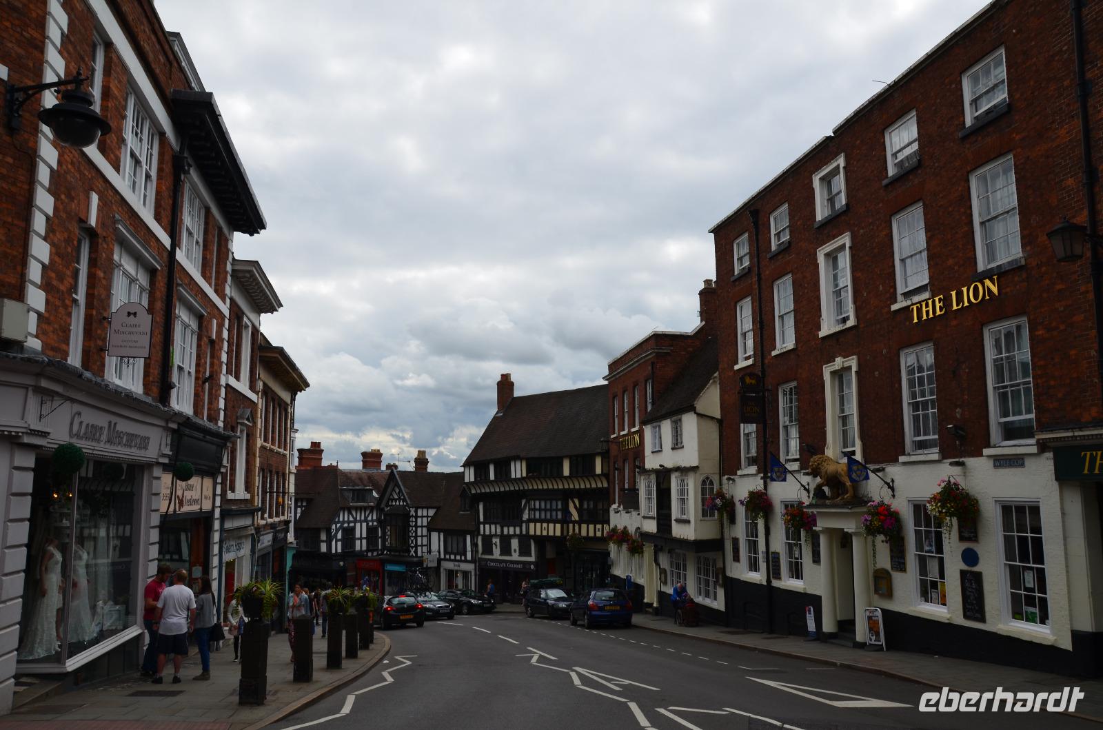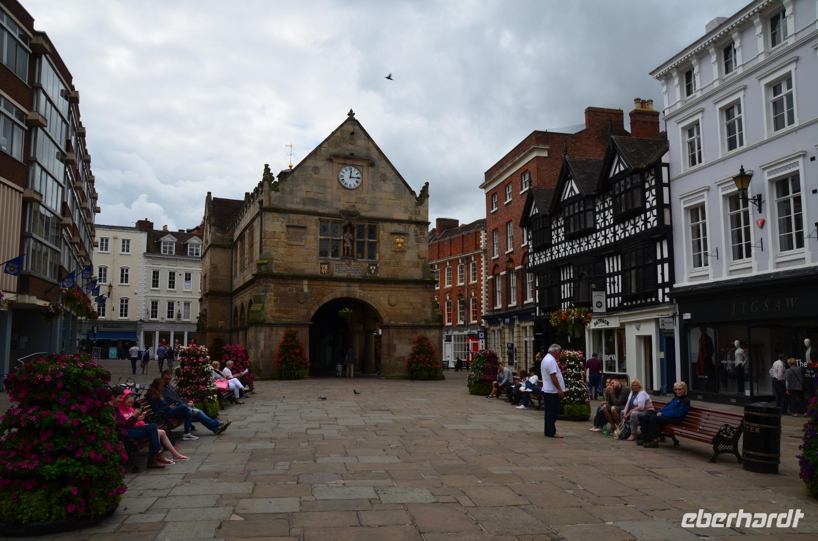 Die Weiterfahrt führt über die Landstraße entlang dem River Severn nach Shrewsbury, der einst bedeutenden Stadt an der waliser Grenze. Wir laufen zum „Alten Haus, über den Markt und durch die hübschen Gassen mit den alten Fachwerkhäusern zum Castle. Die Geburtsstadt Darwins ist auch mehrfach ausgezeichnete Blumenstadt Englands.