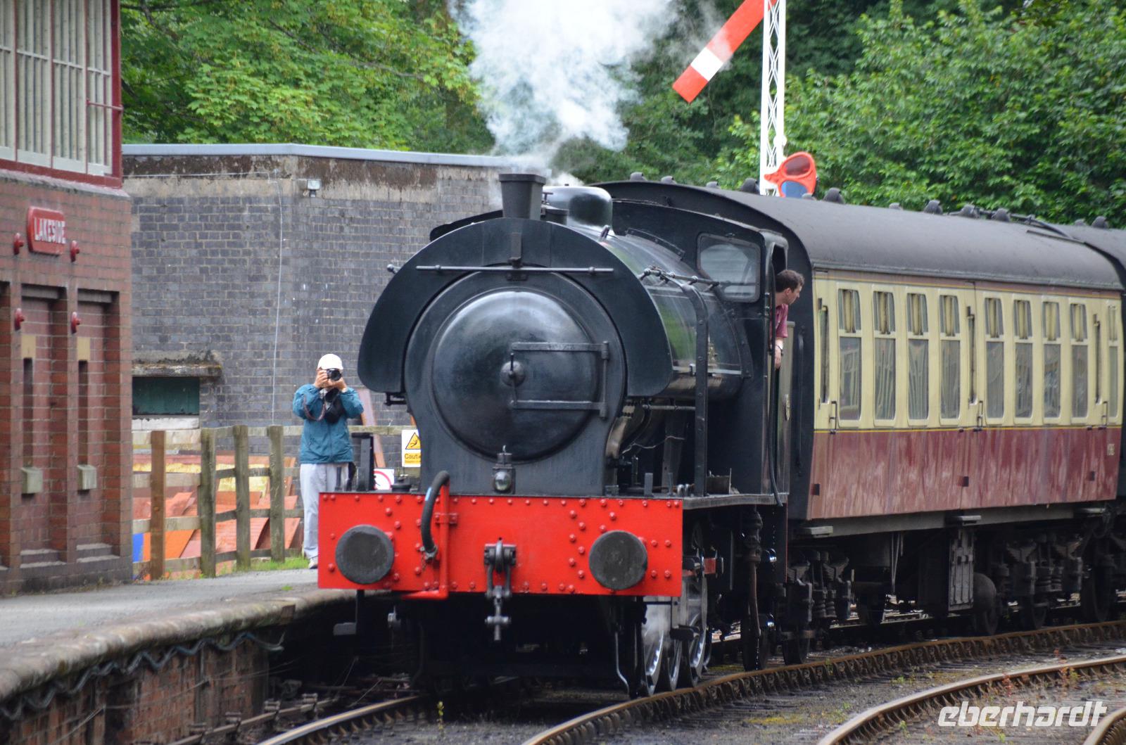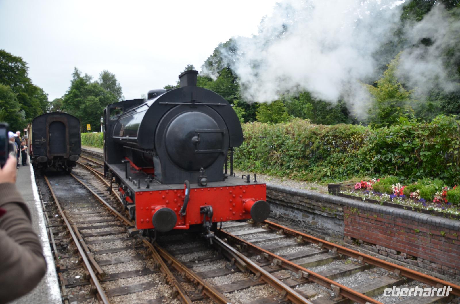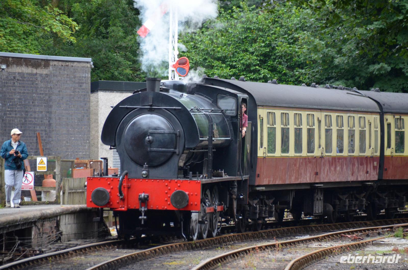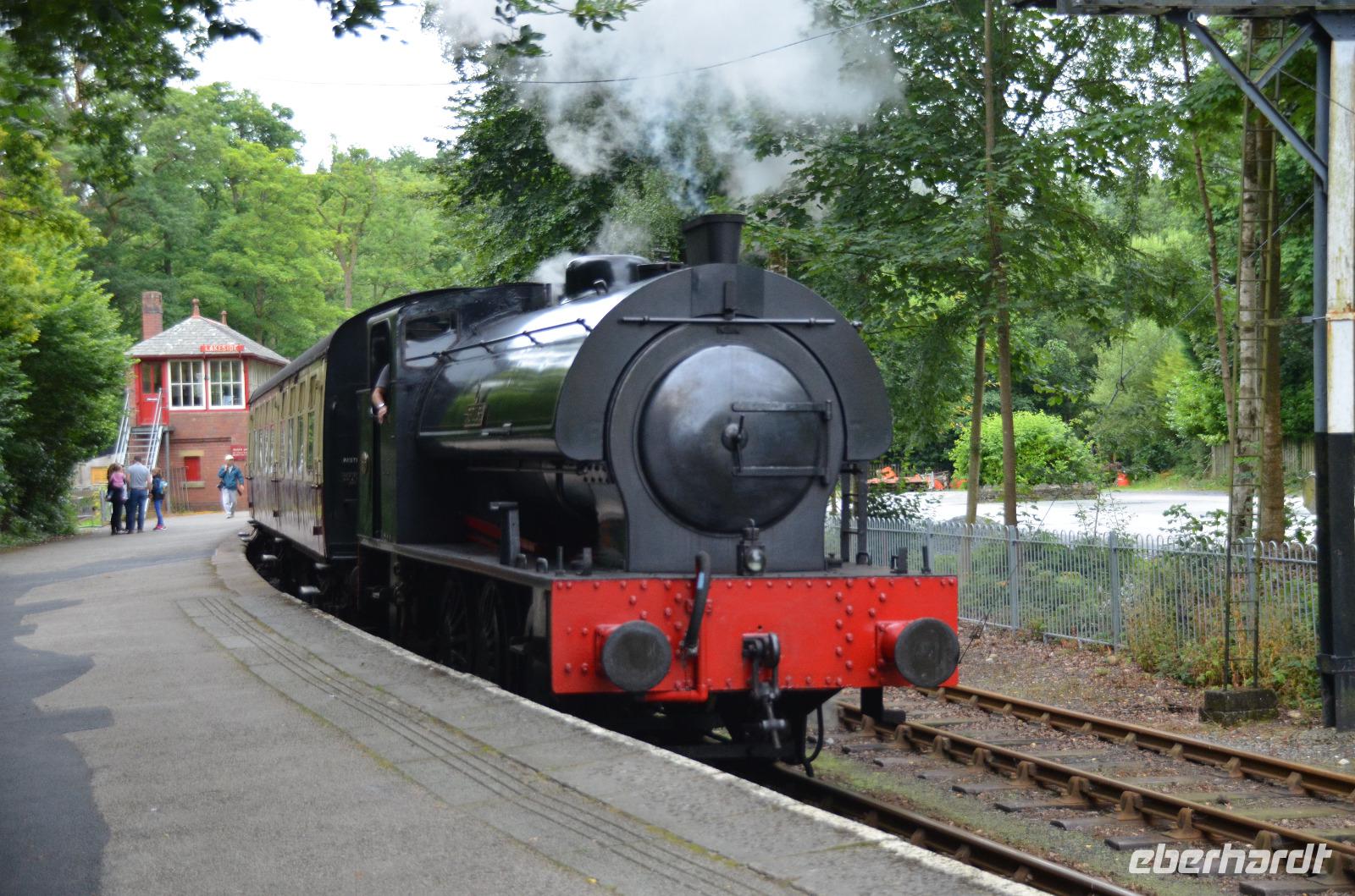 Vorbei an den Bergen des Snowdon Mountain Nationalparks fahren wir mittags weiter nach Porthmadog. Wir wollen mit der Ffestinog Railway hinauf in die Schieferberge von Wales fahren. Die Wagen Nr. 106/108 sind für uns reserviert und schaufend und ruckelnd geht es hinauf nach Blaneau.
