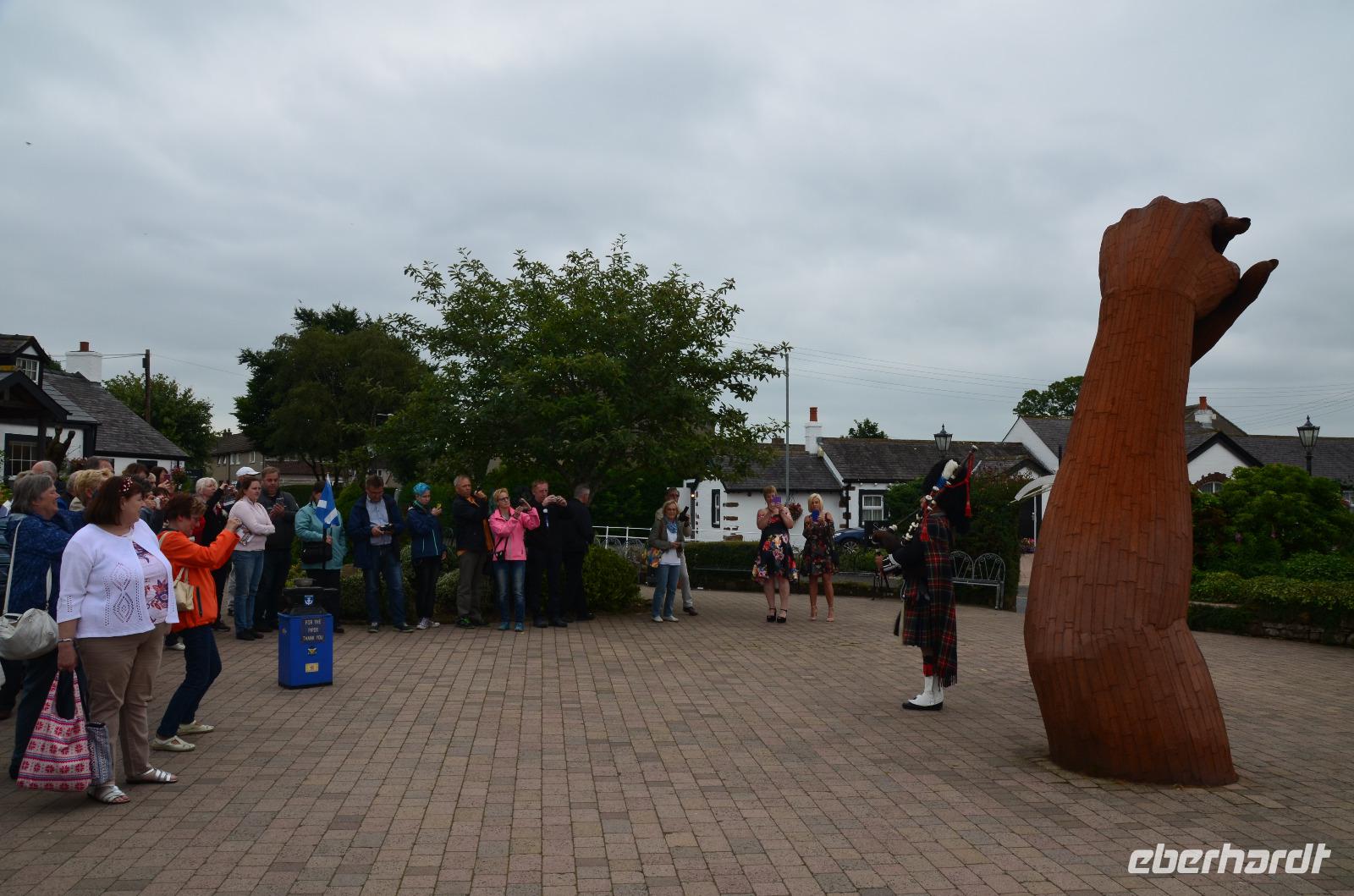 Nächster Fotostopp ist in Fort Augustus, an den Schleusentreppen des Caledonian Canals. Danach steht noch Urquhart Castle auf unserem Besuchsplan. Eine Whisky-Runde für die Gäste als eberhardt-WOW hellt di regnerische Stimmung auf und am Nessie-Center in Drumnadrochit treffen wir noch Nessy.