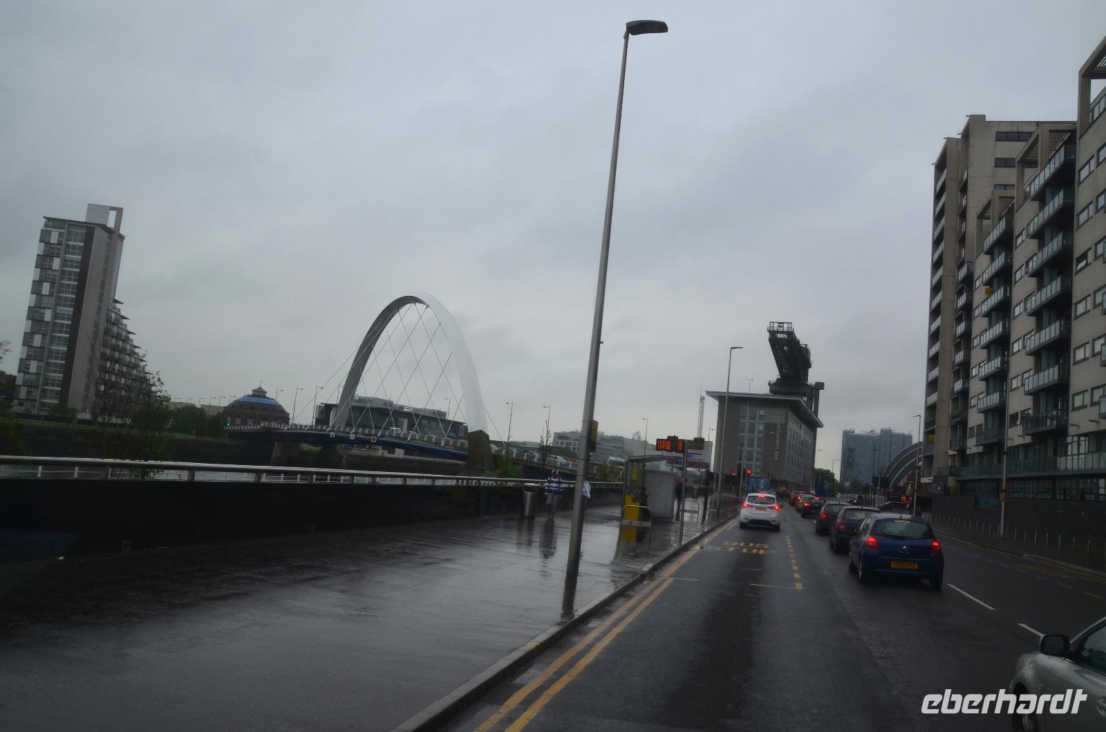 Durch die Hügellandschaft der Flüsse Tweed und Clyde fahren wir nach Glasgow. An Sir Norman Fosters Gürteltier machen wir einen Fotostopp in der neuen Hafencity, bevor es ins Lorne Hotel zur Übernachtung geht.