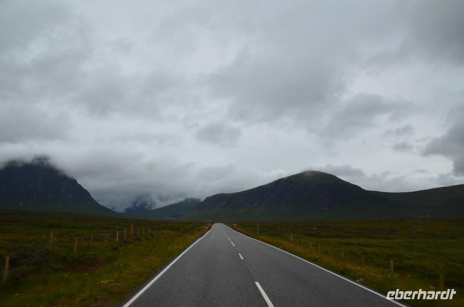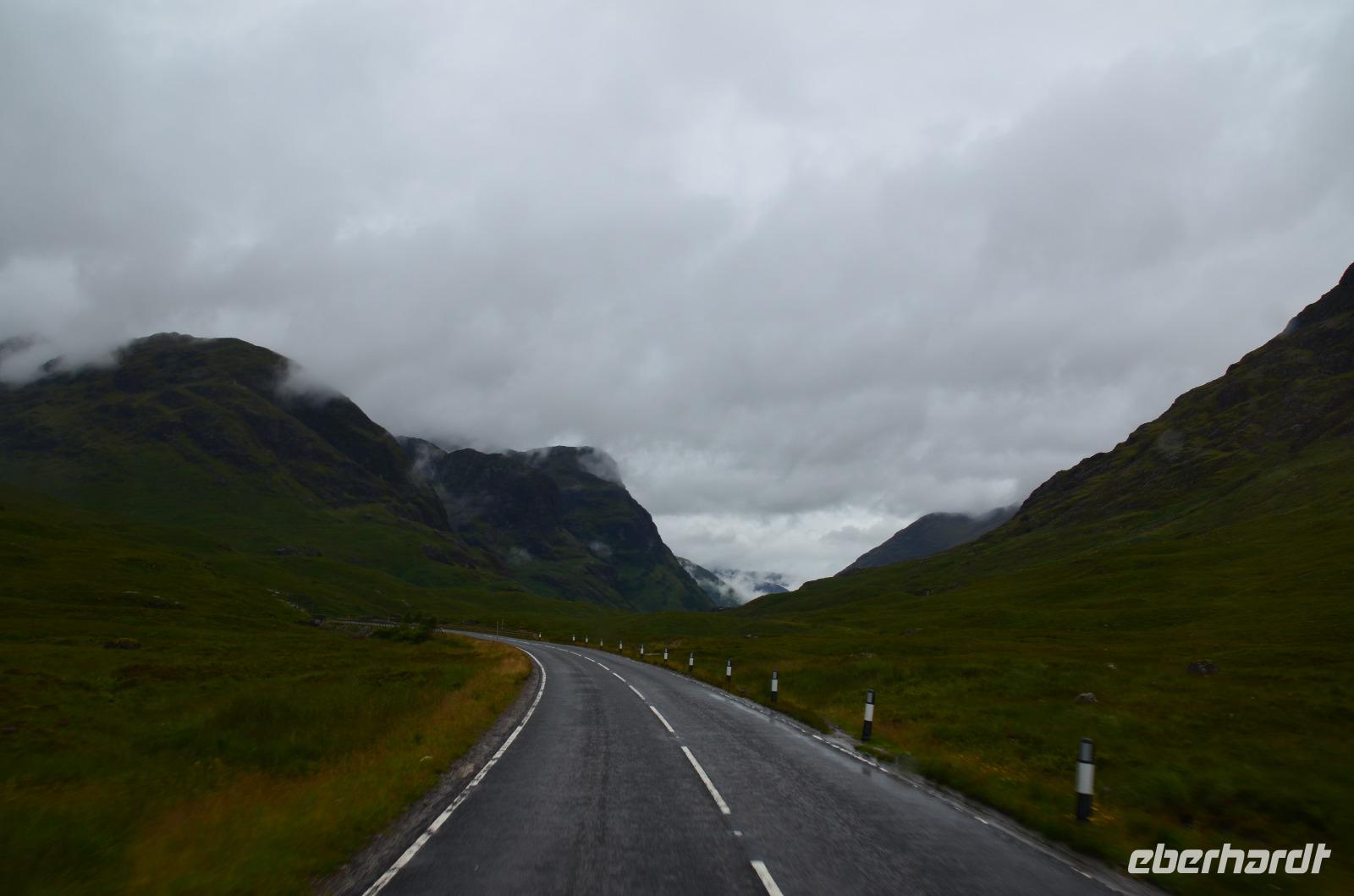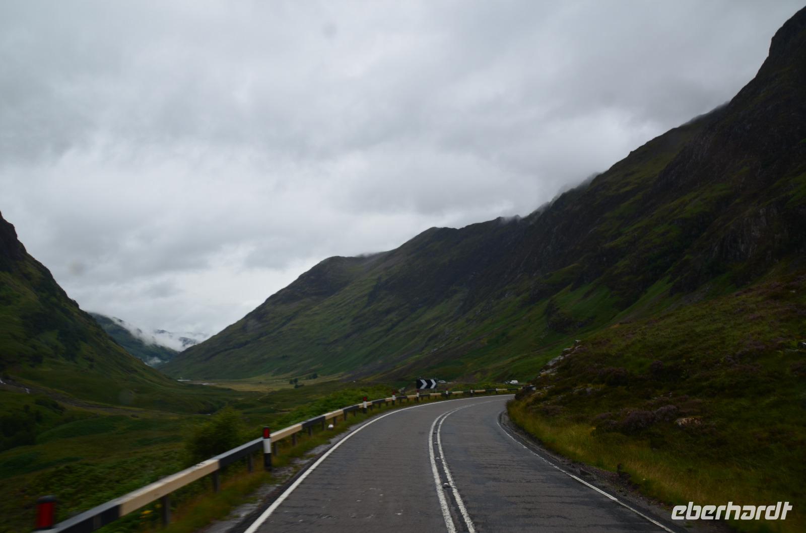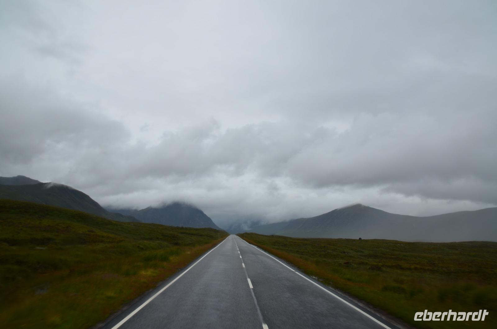 Am größten Binnensee Schottlands entlang fahren wir weiter nach Norden. Zum Loch Tulla, weiter über das Rannoch Moor und durch die wildromantische Landschaft des Glen Coe.