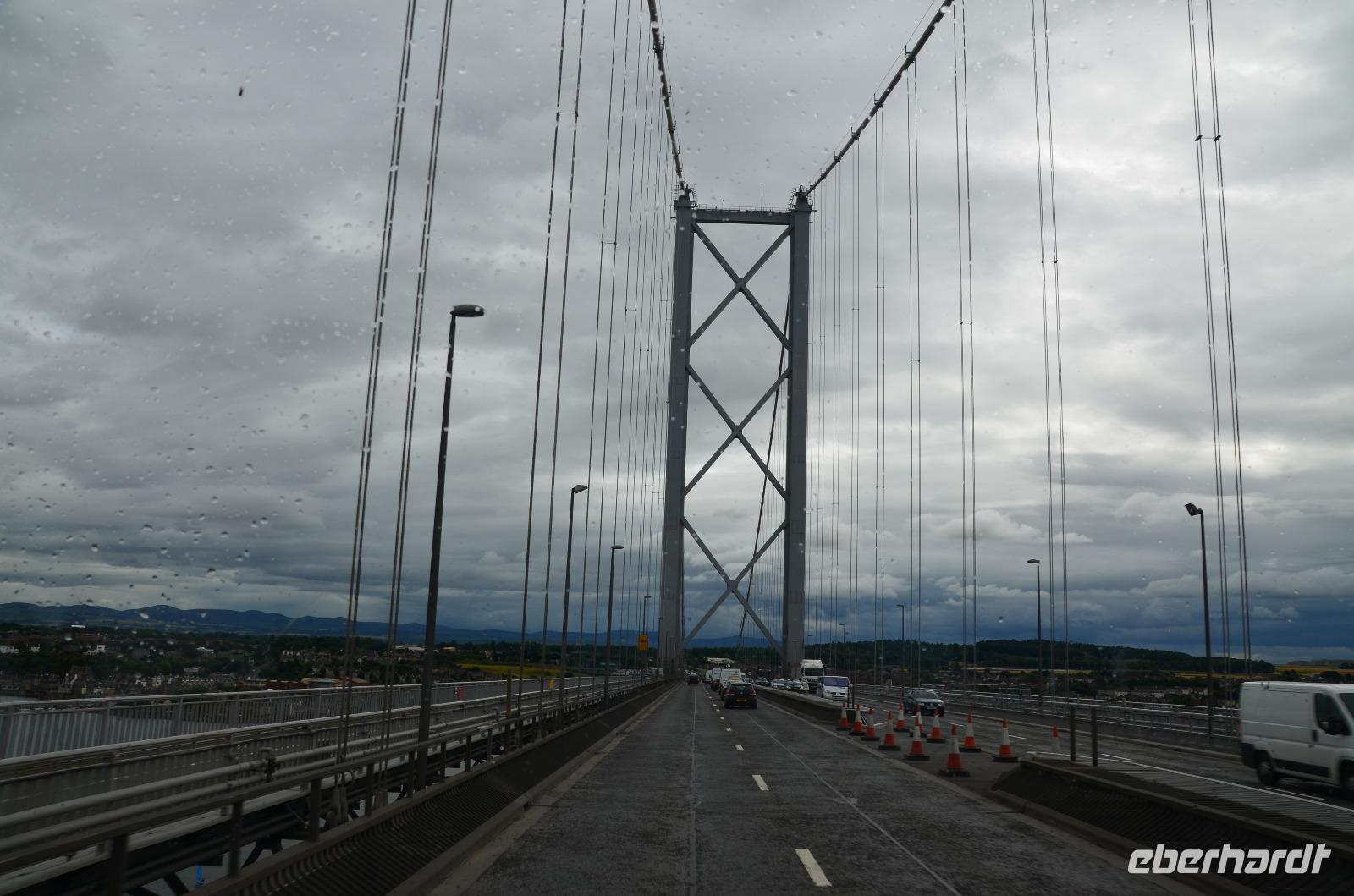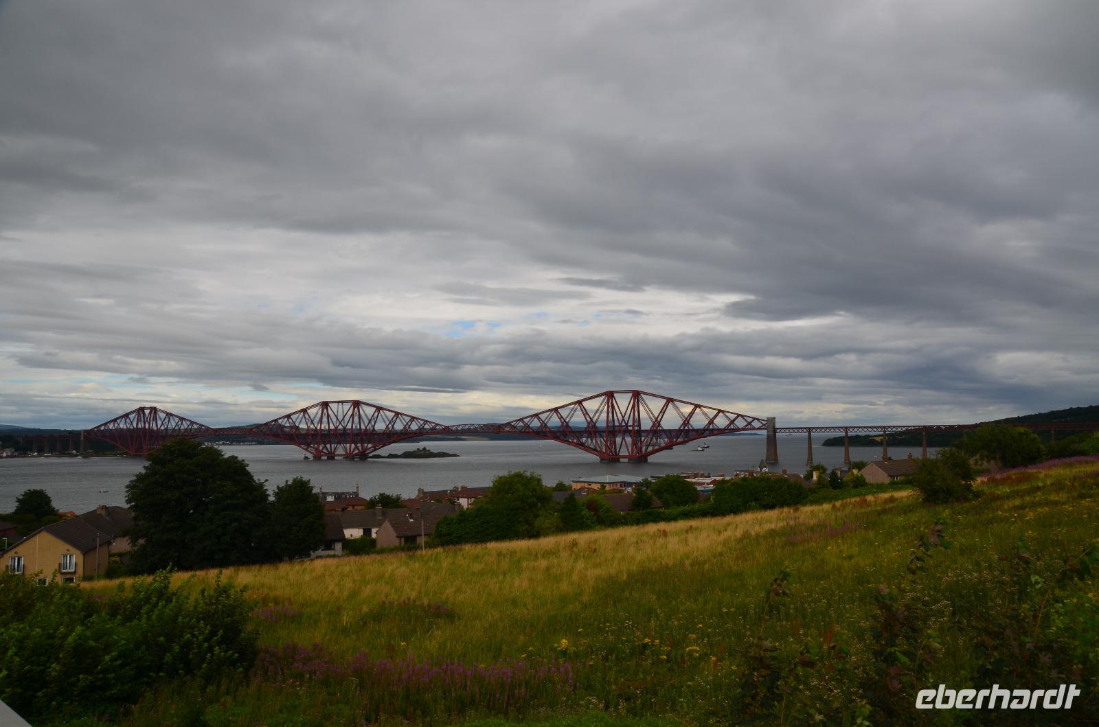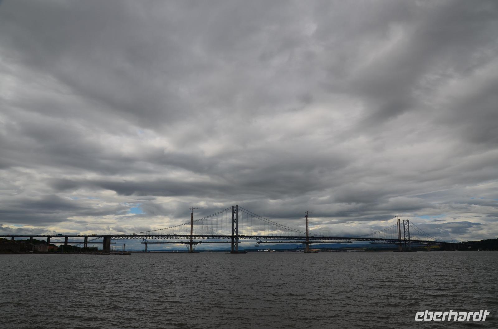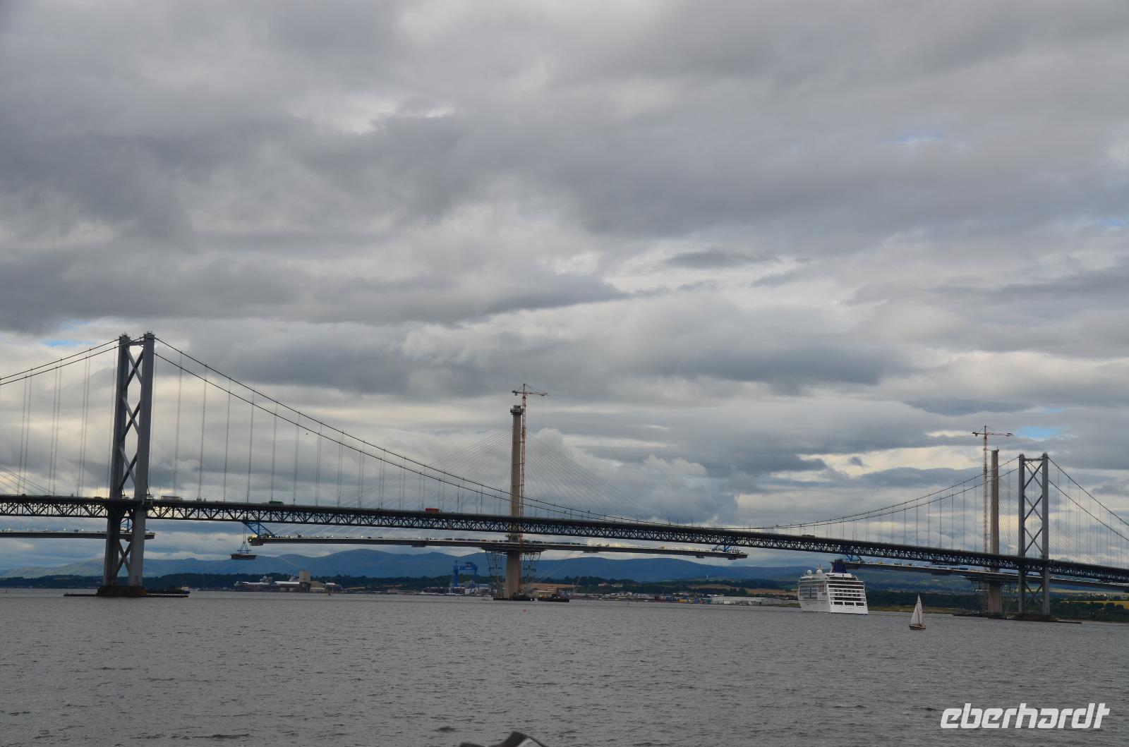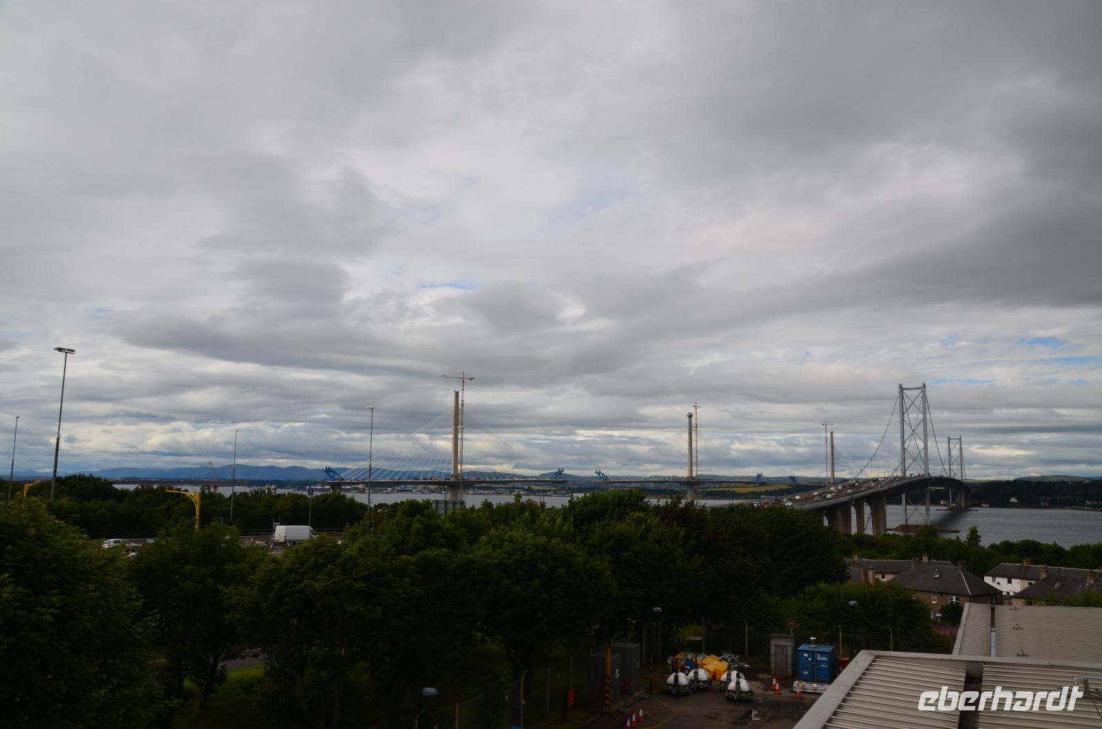 Schließlich erreichen wir nachmittags die Firth of Forth Bridges, machen eine Überfahrt der Road Bridge, mit Blick auf die Railway Bridge sowie die neue Straßenbrücke und fahren dann zur neu ausgebauten Aussicht auf der Südseite - Threebridges. Später von hier hinunter nach South Queensferry, hier nochmals ein Fotostopp und dann hinein nach Edinburgh, die schottische Hauptstadt.