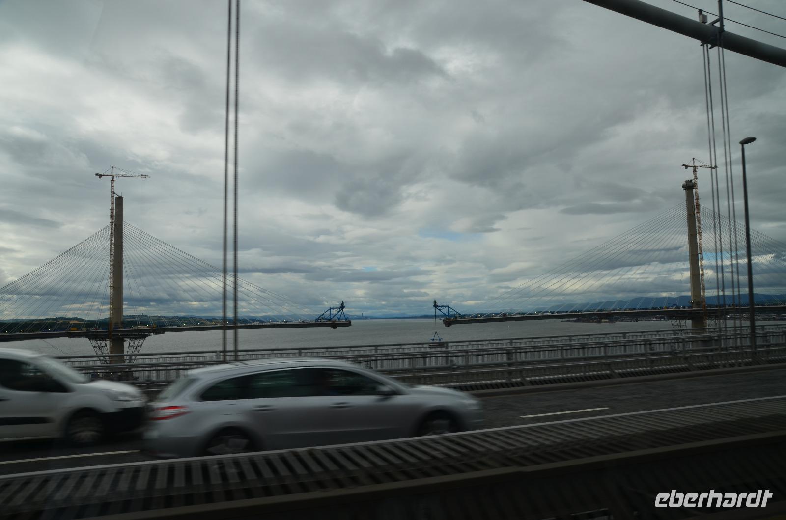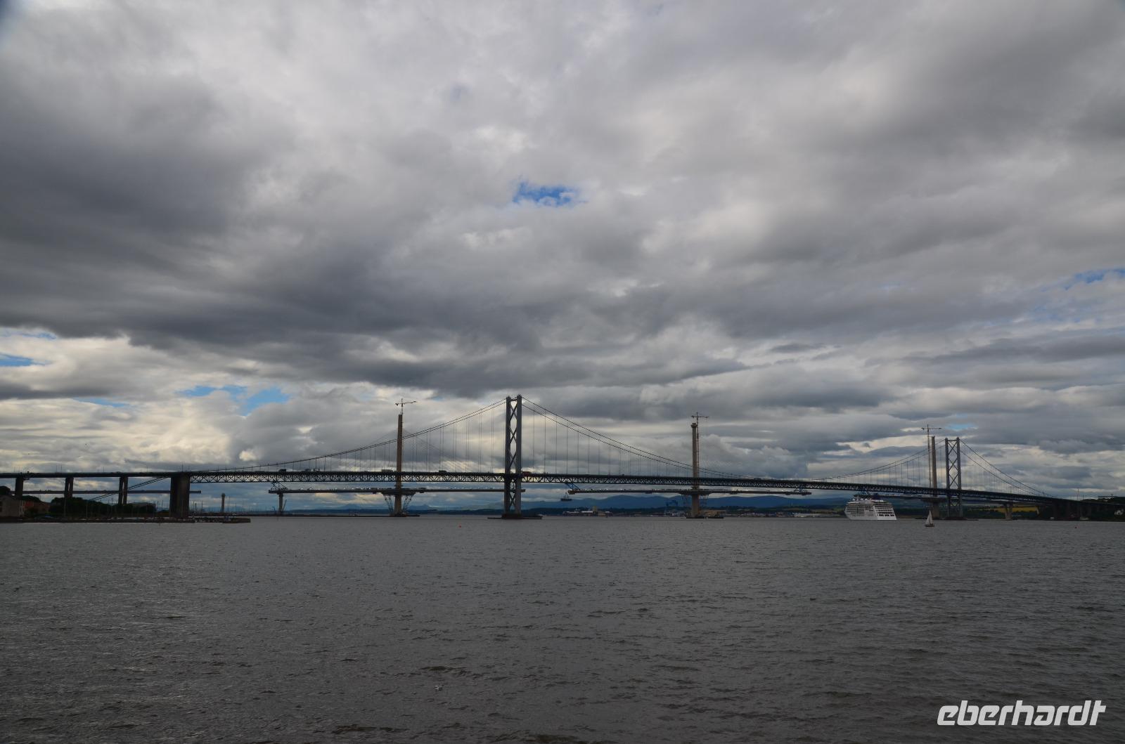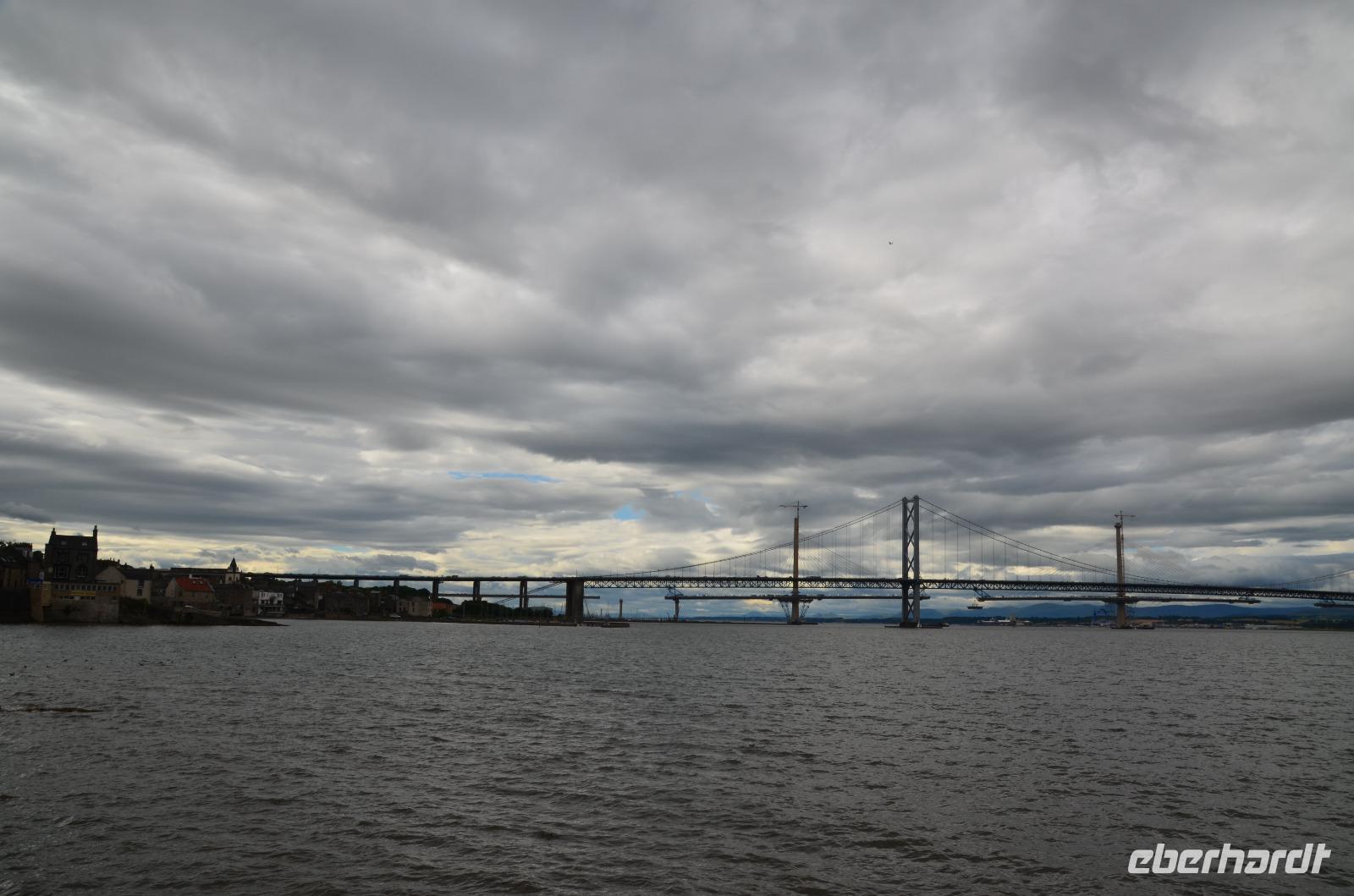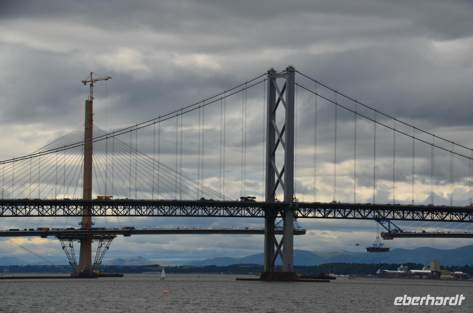 Schließlich erreichen wir nachmittags die Firth of Forth Bridges, machen eine Überfahrt der Road Bridge, mit Blick auf die Railway Bridge sowie die neue Straßenbrücke und fahren dann zur neu ausgebauten Aussicht auf der Südseite - Threebridges. Später von hier hinunter nach South Queensferry, hier nochmals ein Fotostopp und dann hinein nach Edinburgh, die schottische Hauptstadt.