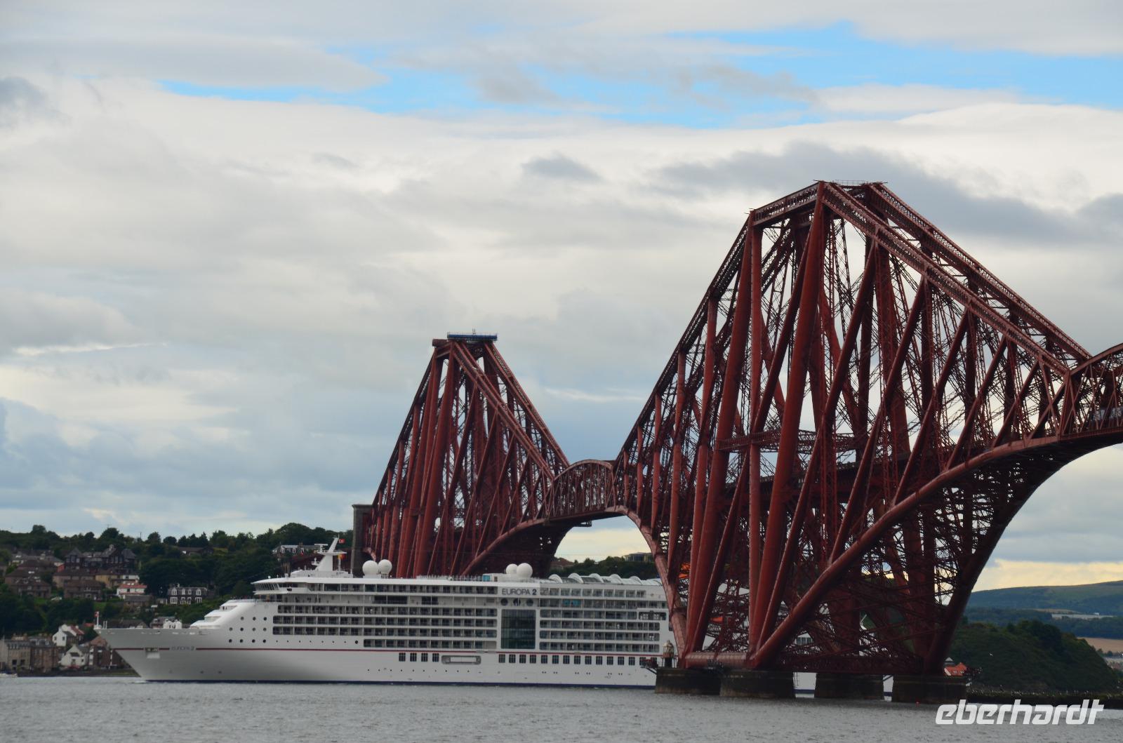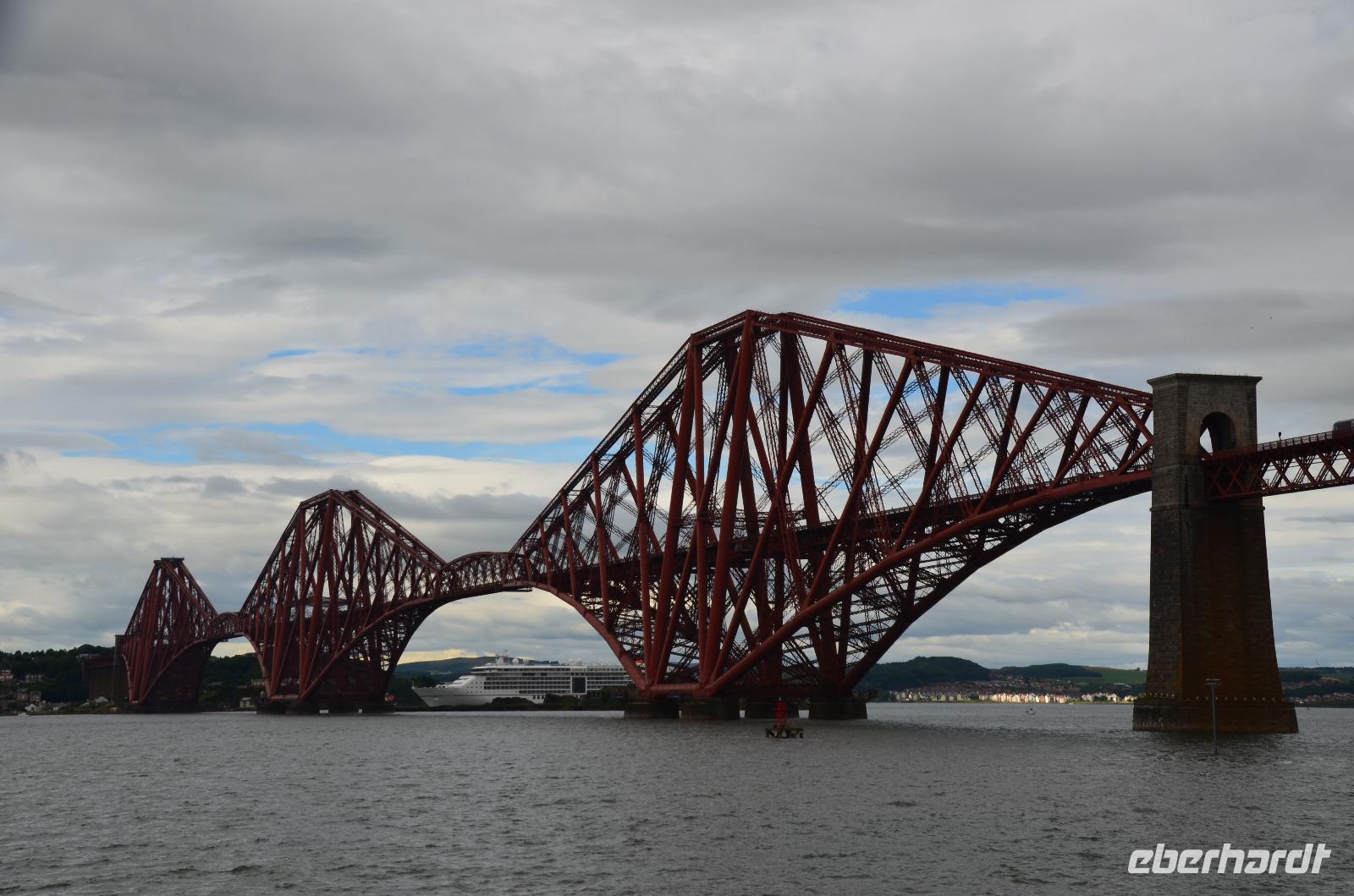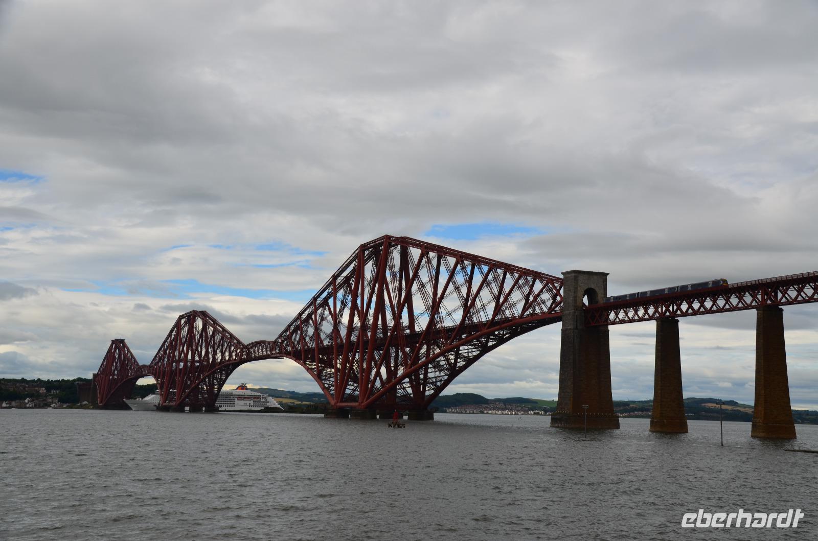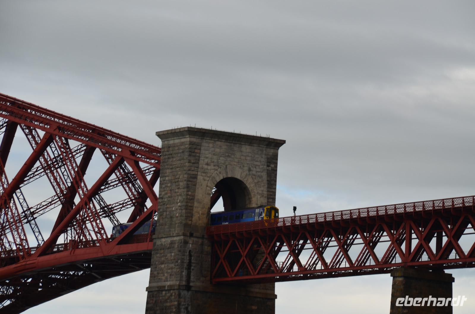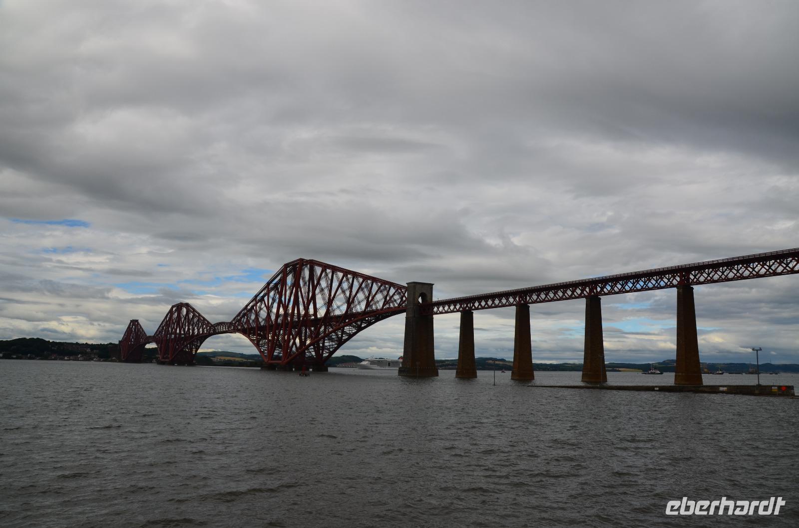 Schließlich erreichen wir nachmittags die Firth of Forth Bridges, machen eine Überfahrt der Road Bridge, mit Blick auf die Railway Bridge sowie die neue Straßenbrücke und fahren dann zur neu ausgebauten Aussicht auf der Südseite - Threebridges. Später von hier hinunter nach South Queensferry, hier nochmals ein Fotostopp und dann hinein nach Edinburgh, die schottische Hauptstadt.