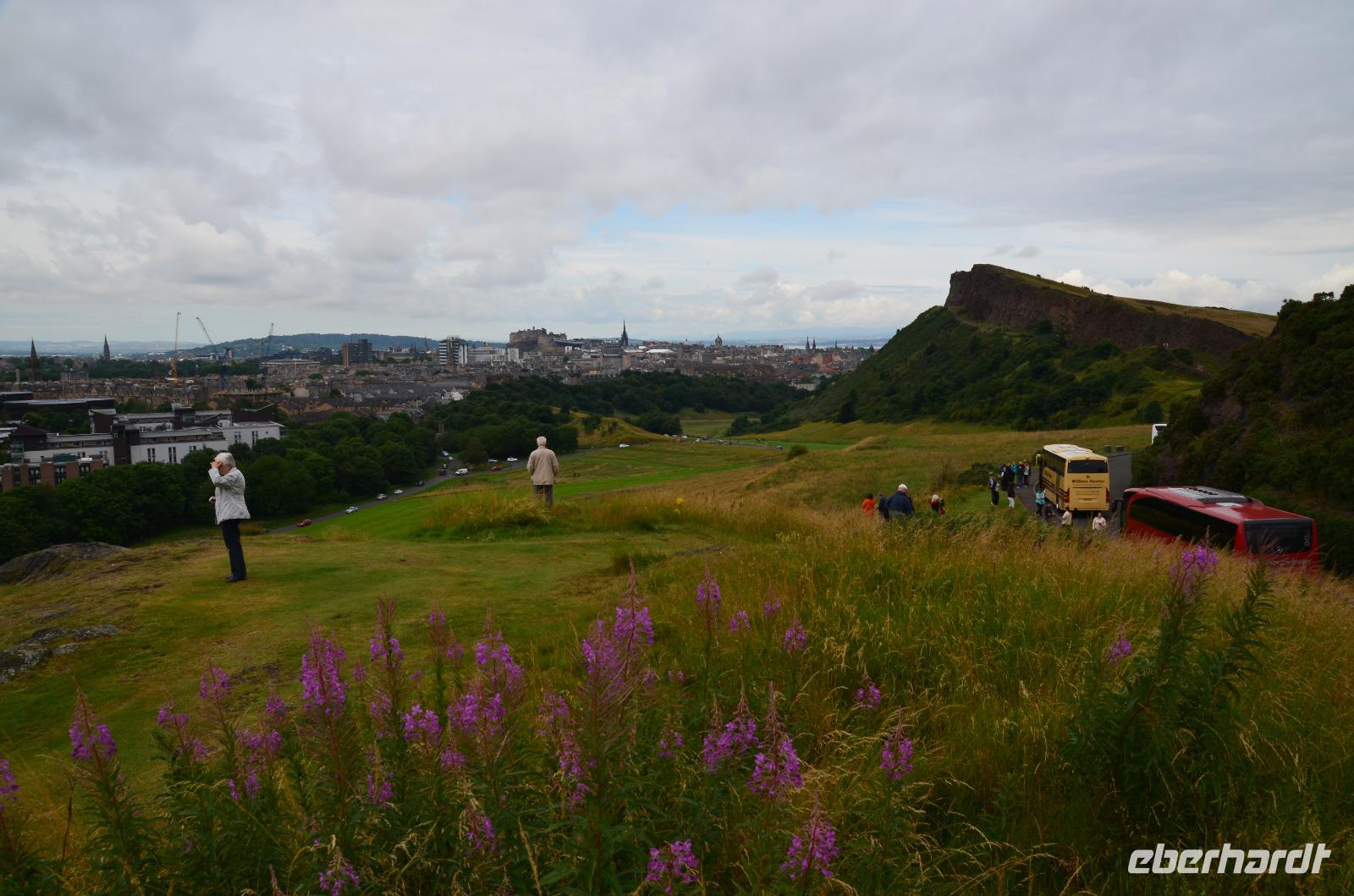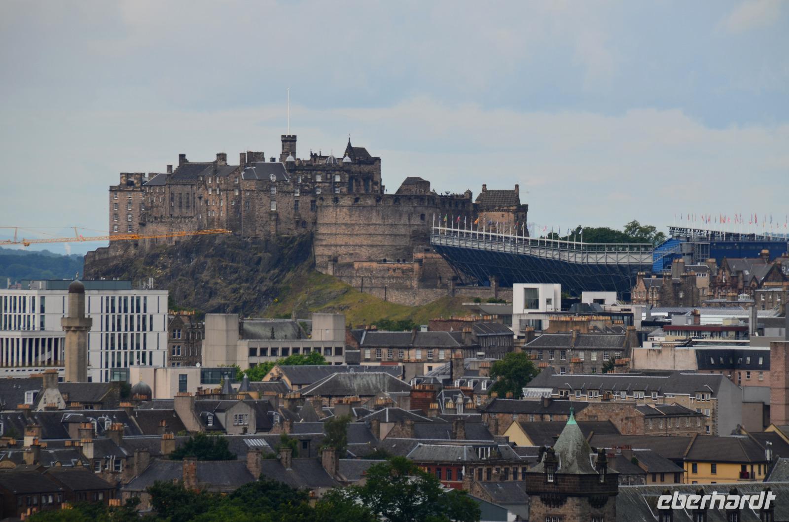 Stadtrundfahrt. Es geht durch den unteren Teil der Altstadt zum Schloss, dann über die Regent Road in die Neustadt mit der Georianischen Architektur, dann weiter nach Leith und von hier zurück zum Schloss und um Arthurs Seat herum. Dann die Weiterfahrt durch die Altstadt mit Uni und Museen und Eintritt in das Castle. Suzi zeigt und erklärt die mächtige Burganlage, die Gebäude und Ausstellungen. Kurz nach der herzlichen Verabschiedung im Schlosshof ertönt die Ein-Uhr-Kanone. Die Möglichkeiten der Freizeit in der Stadt sind riesig, aber alle finden ihre Ziele, trotz der viele Menschen, die durch das Komödiantenfestival und das Tattoo zusätzlich die Stadt bevölkern.