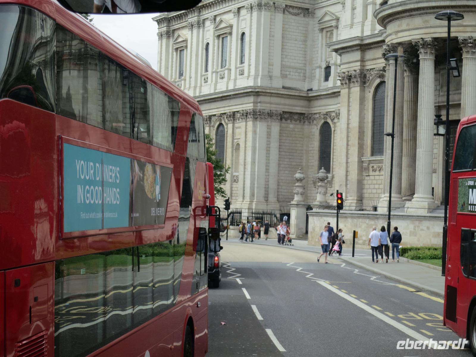 Gestärkt nach einem kräftigen kontinentalen Frühstück fuhren wir am Morgen in Richtung Fährhafen ab. Alles verlief reibungslos, nach kurzer Zeit schon konnten wir von der Fähre aus die Kreidefelsen von Dover erkennen.?Mit unserem Bus eroberten wir jetzt die Britischen Inseln. Sofort fuhren wir in die Hauptstadt London. Gleich beim Tower parkte unser Bus. Dort spazierten einige über die berühmte Tower-Bridge ans Südufer der Themse und erkundeten „Sliced Onion", das ist die Stadtverwaltung Londons, entworfen von Sir Norman Foster, und diese trägt den passenden Spitznamen „geschnittene Zwiebel". Einige probierten schon Fish & Chips, andere spazierten zur Towerbridge oder machten Fotos der ältesten Festung in London, dem Tower, in dem auch die Kronjuwelen verwahrt werden. Dann trafen wir unsere Stadtführerin, die uns auf eine interessante Entdeckungsreise durch die Hauptstadt Londons mitnahm. Wir sahen so beeindruckende Sehenswürdigkeiten wie die berühmte St. Paul's Cathedral, The Houses of Parliaments, Westminster Abbey, London Eye und Trafalger Square.?Am Abend fuhren wir hinaus aus der Hauptstadt zu unserem Hotel in Heathrow, wo wir die erste Nacht auf englischem Boden verbrachten.