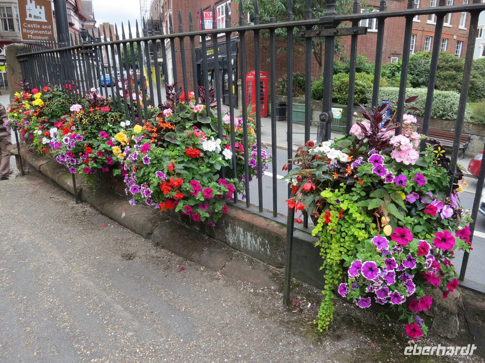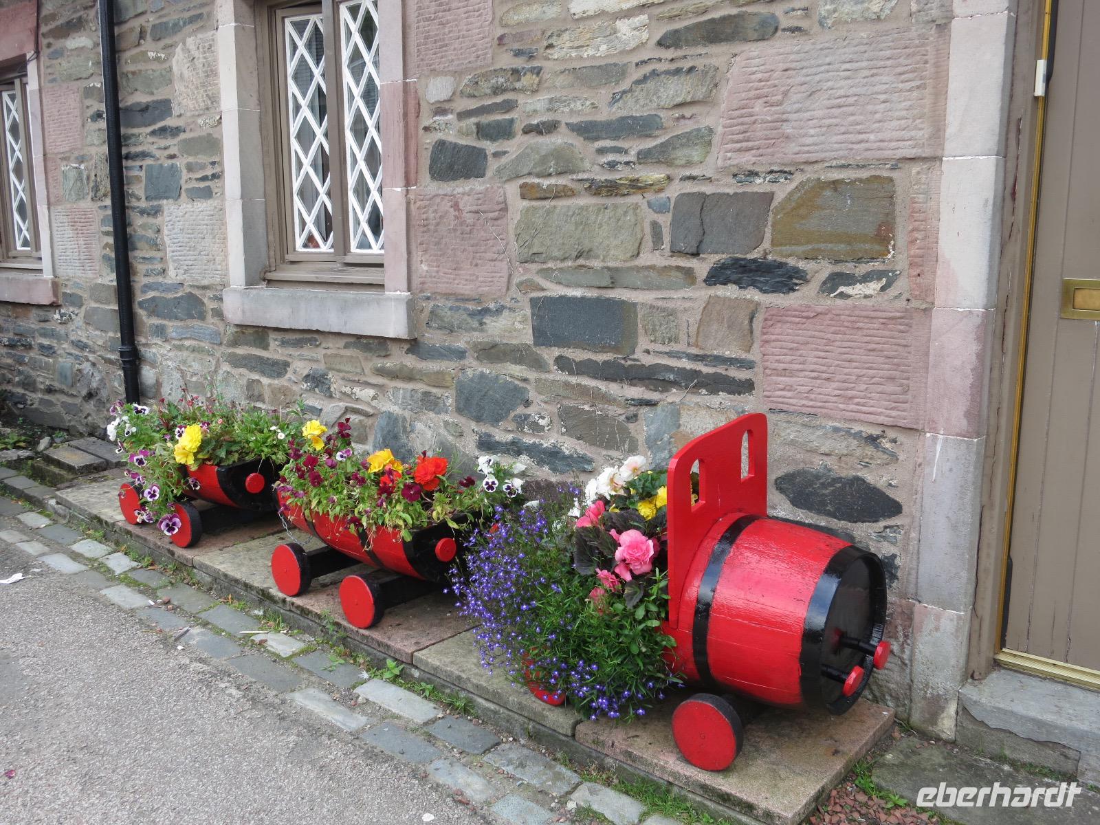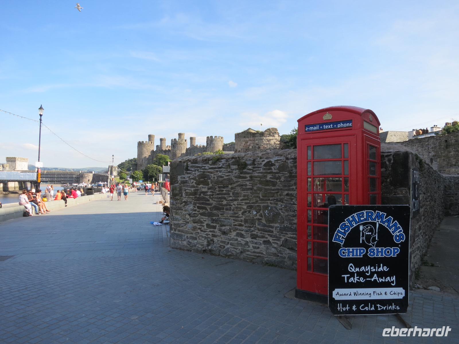 An diesem Tag erkundeten wir Wales, den kleinsten Landesteil der Britischen Insel. Zunächst überquerten wir die Menai Street, um auf die Insel Anglesey zu gelangen. Schon vom Bus aus erhaschten wir einen Blick auf die berühmte „Suspension Bridge" von Thomas Telford aus dem Jahre 1826, die wir bei einem kurzen Stop auch fotografieren konnten. Gleich darauf besuchten wir ein kleines Dorf, das wohl den längsten Namen in Großbritannien trägt. Der Ortsname besteht aus 58 Zeichen und beginnt so: „Llanfairpwellgwyn..." Besuchermagnet ist der Bahnhof, an dem das Ortsschild in voller Länge prangt und einfach fotografiert werden muss. Danach erkundeten wir Caernarfon Castle, das einige Räume zu besichtigen hat, z.B. eine Ausstellung über Prince Charles, der hier im Jahre 1969 zum Prinzen von Wales gekrönt worden ist.?Wir verließen Caernarfon nach etwas Freizeit im Ort, fuhren in Richtung Süden, durch das Örtchen Beddgelert, in dem „der Hund begraben" ist und erreichten die Hafenstadt Porthmadog. Dort bestiegen wir einen historischen Zug, der von einer Dampflock gezogen wurde: Ffestiniog Railway. Unsere Gruppe saß gemeinsam in einem Wagen und so zuckelten wir gemütlich durch die walisische Landschaft, mit Bergen, Wasserfällen, Seen, viel Grün und noch mehr Schafen. Einige Gäste probierten das Bier, das hier Ale heißt. Der Zug entließ uns in Blaenau Ffestiniog, früher ein Zentrum des Schieferabbaus. Unser Bus erwartete uns am Bahnhof. Wir fuhren Richtung Norden und besuchten noch den Ferienort Betws-y-Coed, wo eine sehr kleine Eisenbahn mit Dampflock betrieben wird. Weiter ging es nach Conwy, einem herrlichen Städtchen mit allem, was sich der Tourist so wünscht: ein altes Castle, das Meer, Fischerboote, gemütliche Cafés und als Besonderheit, das kleinste Haus in Großbritannien, das direkt am Kai auf Besucher wartet. Am Abend ließen wir uns wieder ein leckeres englisches Abendessen schmecken.