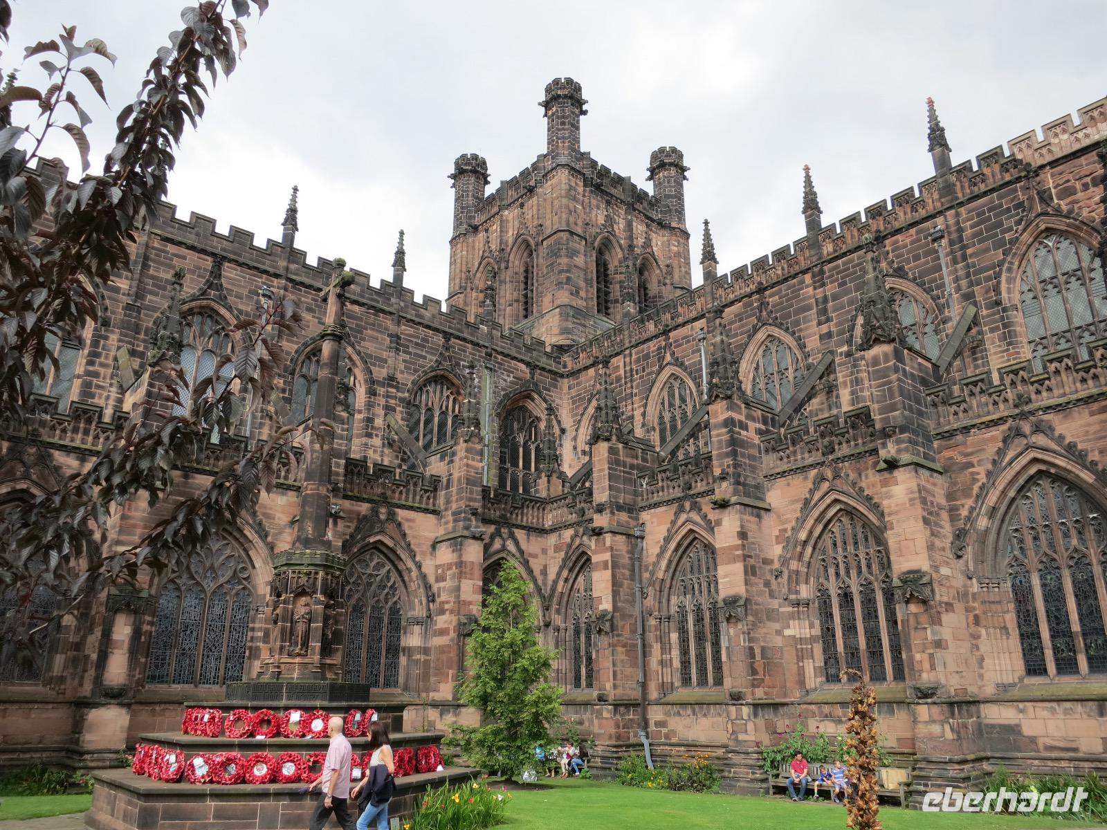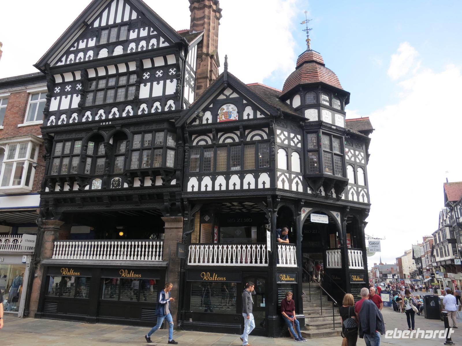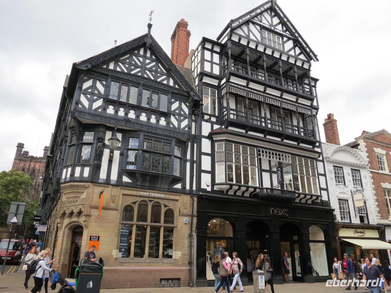 Die erste Sehenswürdigkeit des Tages führte uns nach Ironbridge, einem kleinen Ort, der nach seiner Hauptattraktion, einer eisernen Brücke, benannt worden ist. Die gleichnamige Brücke erinnert an die industrielle Revolution und die Anfänge der Architektur mit Eisen, denn sie ist die erste Eisenbrücke der Welt. Das Bauwerk wird ständig gewartet, um korrodierte Stellen zu pflegen. So macht die Brücke auch heute einen soliden Eindruck, so dass man gern darüber hinweg spaziert und den Fluss Severn unter sich dahinströmen sieht.?Weiter ging's nach Shrewsbury, einer Stadt mit vielen Fachwerkhäusern, einem Castle und darüber hinaus die Geburtsstadt Charles Darwins. Hier bot sich ein kleiner Spaziergang durch die Altstadt an. Wir gingen bis zum Castle und zur Bibliothek, vor der Charles Darwins Statue auf einem Sockel sitzt und in einer Zeitung blättert. Im Anschluss fuhren wir nach Chester, wo unsere Gruppe von unserem Stadtführer Peter abgeholt wurde. Bei einem Spaziergang durch Chester zeigte und erklärte er uns auf amüsante Weise diese herrliche Stadt. Wir sahen zum Beispiel die Rows, das sind überdachte Arkaden im 1. Stock, durch die man trockenen Fußes wandeln und dabei einkaufen kann. Wir hörten Anekdoten aus Chesters Vergangenheit und Gegenwart. Einer der Höhepunkte dieses Tages war ein landestypischer Besuch in einem traditionellen Tearoom, wir probierten englischen Tee mit Scones (leckeres Gebäck), clotted creme (Schlagrahm) und Erdbeermarmelade.?Nach dem Stadtrundgang und der Teestunde fuhren wir in unser Hotel vor den Toren von Chester und ließen uns ein leckeres englisches Abendessen schmecken.