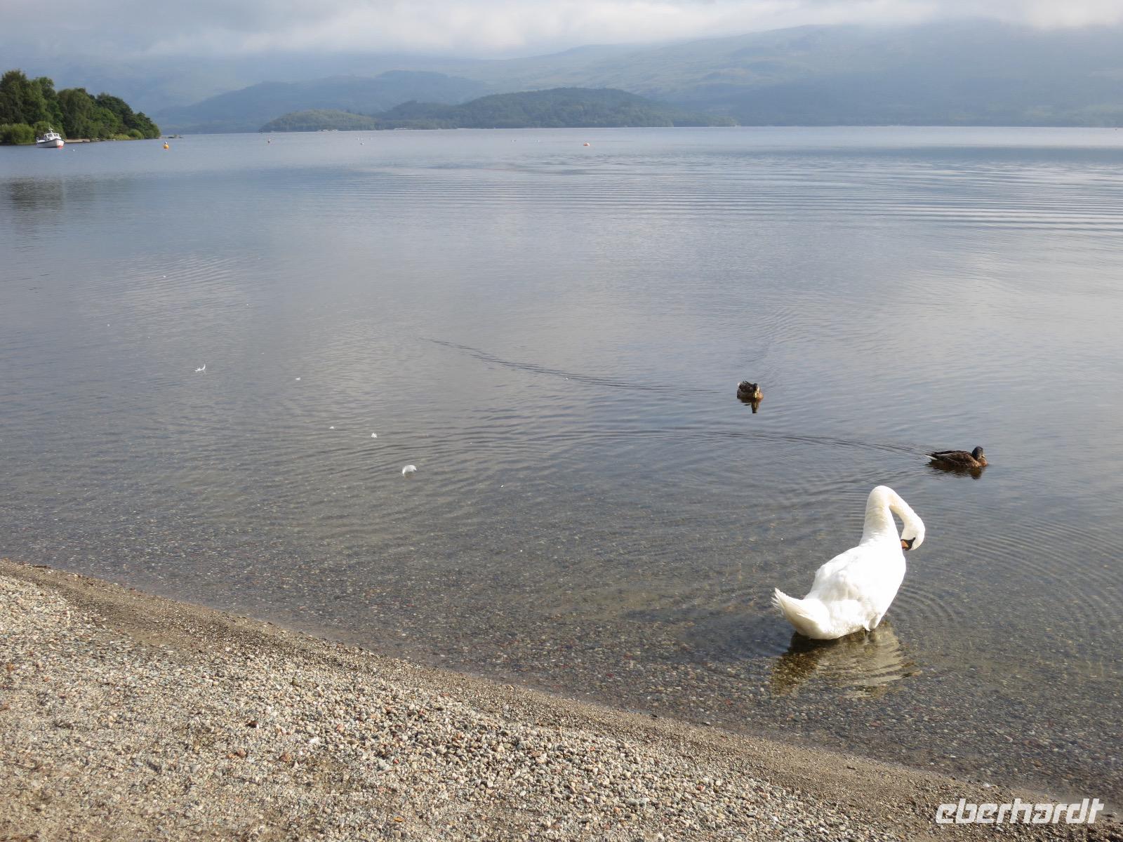 Nachdem wir Glasgow am Morgen verlassen hatten, tauchten wir ein in die Seenlandschaft der Lochs in Schottland. Loch Lomond war der erste der großen Seen, an dem wir entlang fuhren. Wir spazierten in Luss zum Ufer des Sees und genossen die morgendliche Atmosphäre, genau so wie einige Wildenten. Wir machten kurz Halt am The Drover's Inn, einer urigen Kneipe in der Nähe des Ardlui Wasserfalls. Auf unserem weiteren Weg begegneten uns nicht nur unzählige Schafe, auch herrliche Berge und grüne Täler. Durch das Tal des Coe - Glen Coe, das durch ein Massaker am McDonald-Clan zu trauriger Berühmtheit gelangt ist - erreichten wir Fort Williams, wo beeindruckende Schleusentreppen des Caledionan Canals zu sehen sind - Neptune's Staircase. Schließlich erreichten wir das berühmte Loch Ness, wo auch wir vergeblich nach Nessie Ausschau hielten. Aber wir besichtigten die Ruine des Urquhart Castle und hatten danach noch Gelegenheit, am Nessie Center in Drumnadrochit einige Nessies zu sehen und auch zu kaufen. Im romantischen und typisch schottischen Balavil Hotel in Newtonmore verbrachten wir eine ruhige Nacht, nachdem wir zuvor mit einem leckeren Abendessen verwöhnt worden waren und ein schottischer Sänger live in der Bar aufgespielt hatte. Einige machten nach dem Essen einen kleinen Spaziergang durch den Ort mit gepflegten Gärten und romantischen kleinen Häusern, wo die ein oder andere bunt bemalte steinerne Wildkatze zu entdecken war.
